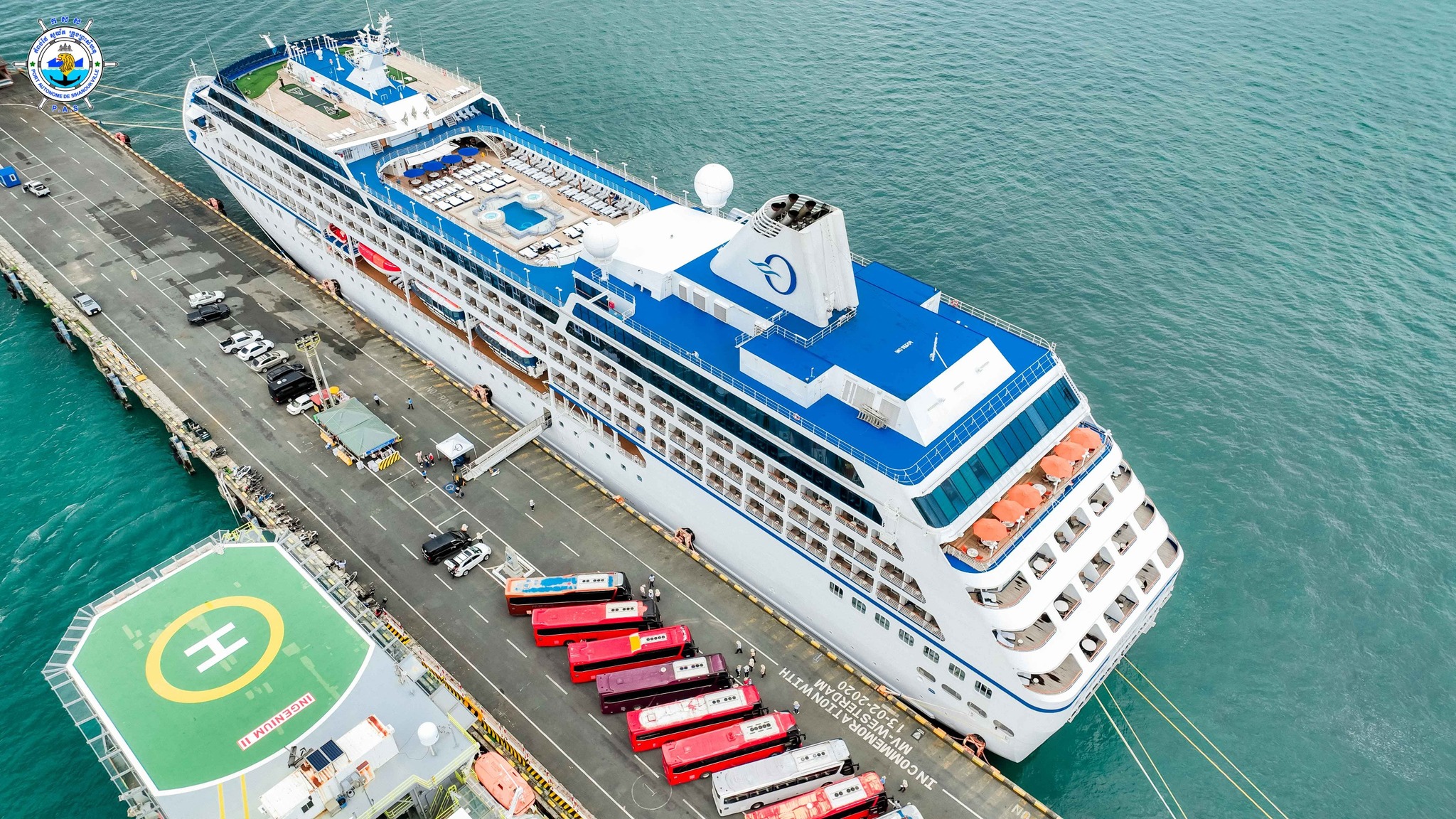 Sihanoukville Autonomous Port (PAS) At 10:35 on Monday, 14th April 2025, OCEANIA REGATTA cruise ship with nationality of MARSHALL ISLAND, length of 180.45 meters, width of 29.24 meters and depth of 6.00 meters, docked safely at PAS to visit Cambodia for One day after leaving Thailand. This cruise ship carries 400 crew members (88 females) with 35 nationalities and 614 passengers (331 females) with 25 nationalities. Most of passengers ‘nationalities are 420 USA and this cruise ship is scheduled to depart for Vietnam at 20:00 on the same date