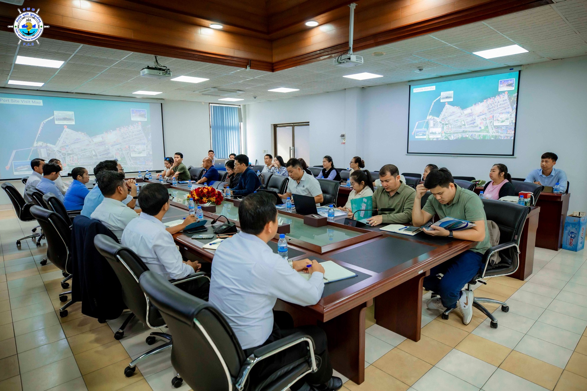 Sihanoukville Autonomous Port (PAS) : At 4 PM on Tuesday, 22nd April 2025, at the venue of PAS Meeting Room, Mr. Thong Viro, Deputy Director-General in charge of Administration-Management, Representative of His Excellency Lou Kim Chhun, Delegate of the Royal Government of Cambodia in charge as Chairman and CEO of Sihanoukville Autonomous Port and PAS Management, welcomed a visit of 20 delegates of the Ministry of Public Works and Transport of the Lao People’s Democratic Republic, led by Mr. Chanthasack BOTTAPHANITH, Deputy Director General of Planning and Finance of the Ministry of Public Works and Transport of the Lao People’s Democratic Republic, accompanied by Cambodia’s Ministry of Public Works and Transport Officials, in purpose to learn about strategic plan preparation in the public works sector and development of transport sector and strengthening connectivity in the region