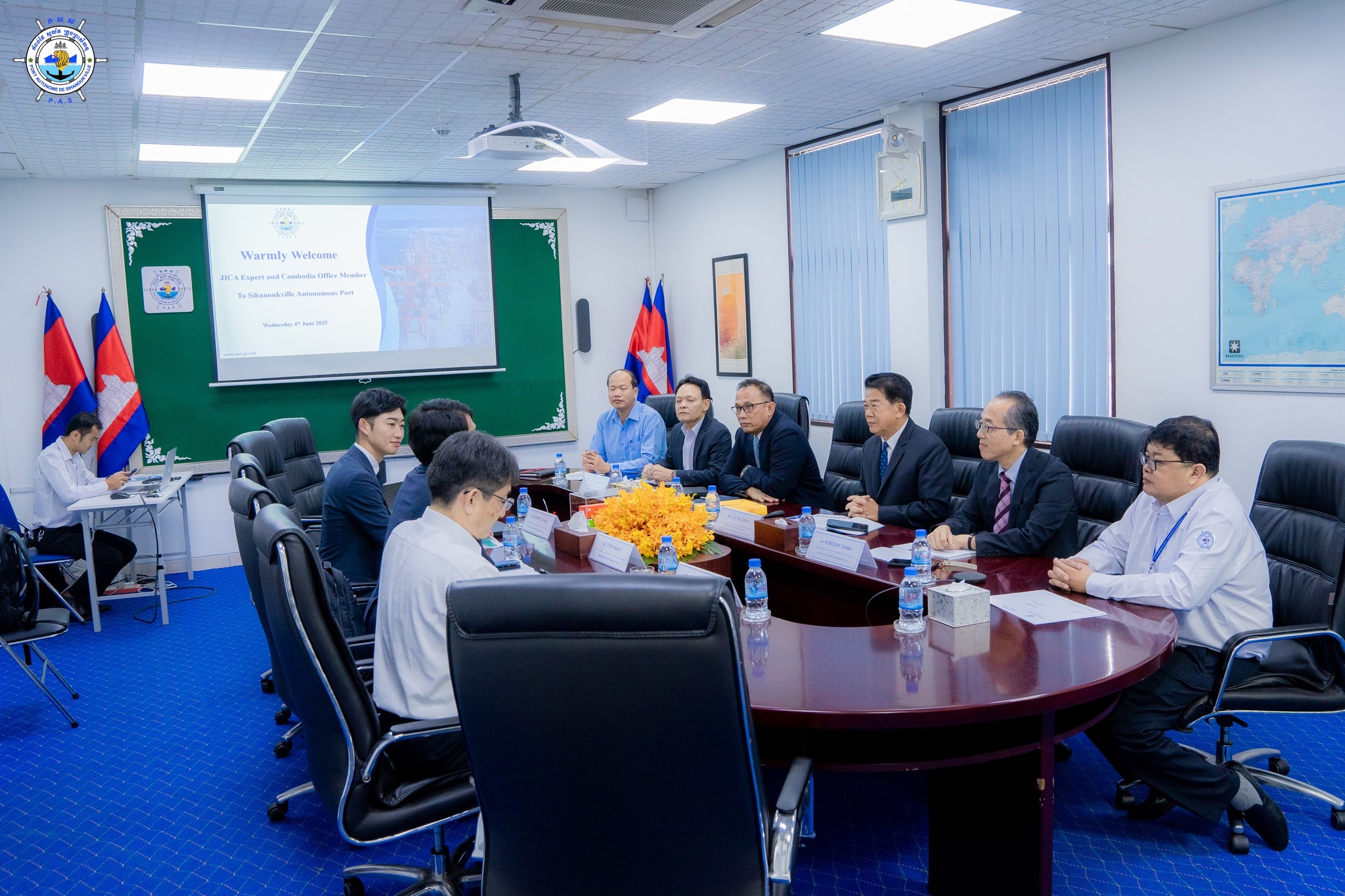 Sihanoukville Autonomous Port (PAS) : At 11 AM on Wednesday, 4th June 2025, at the venue of PAS Meeting Room, His Excellency Lou Kim Chhun, Delegate of the Royal Government of Cambodia in charge as Chairman and CEO of Sihanoukville Autonomous Port and PAS Management, received a courtesy visit of Mr. KOREZUMI Tomoaki, with the upcoming completion of his work mission as PAS Advisor and replacement by the successor Mr. HOSHIKURA Junichi, and Mr. IZUMI Takahiro, Representative of JICA Cambodia Office, with the upcoming completion of his work mission and replacement by the successor Mr. MIYAMOTO Rintaro. On this occasion, Mr. KOREZUMI Tomoaki, and Mr. IZUMI Takahiro, also acknowledged a great value in PAS’s cooperation, under a wise and brilliant leadership of His Excellency Lou Kim Chhun, Delegate of the Royal Government of Cambodia in charge as Chairman and CEO of Sihanoukville Autonomous Port, in PAS development.