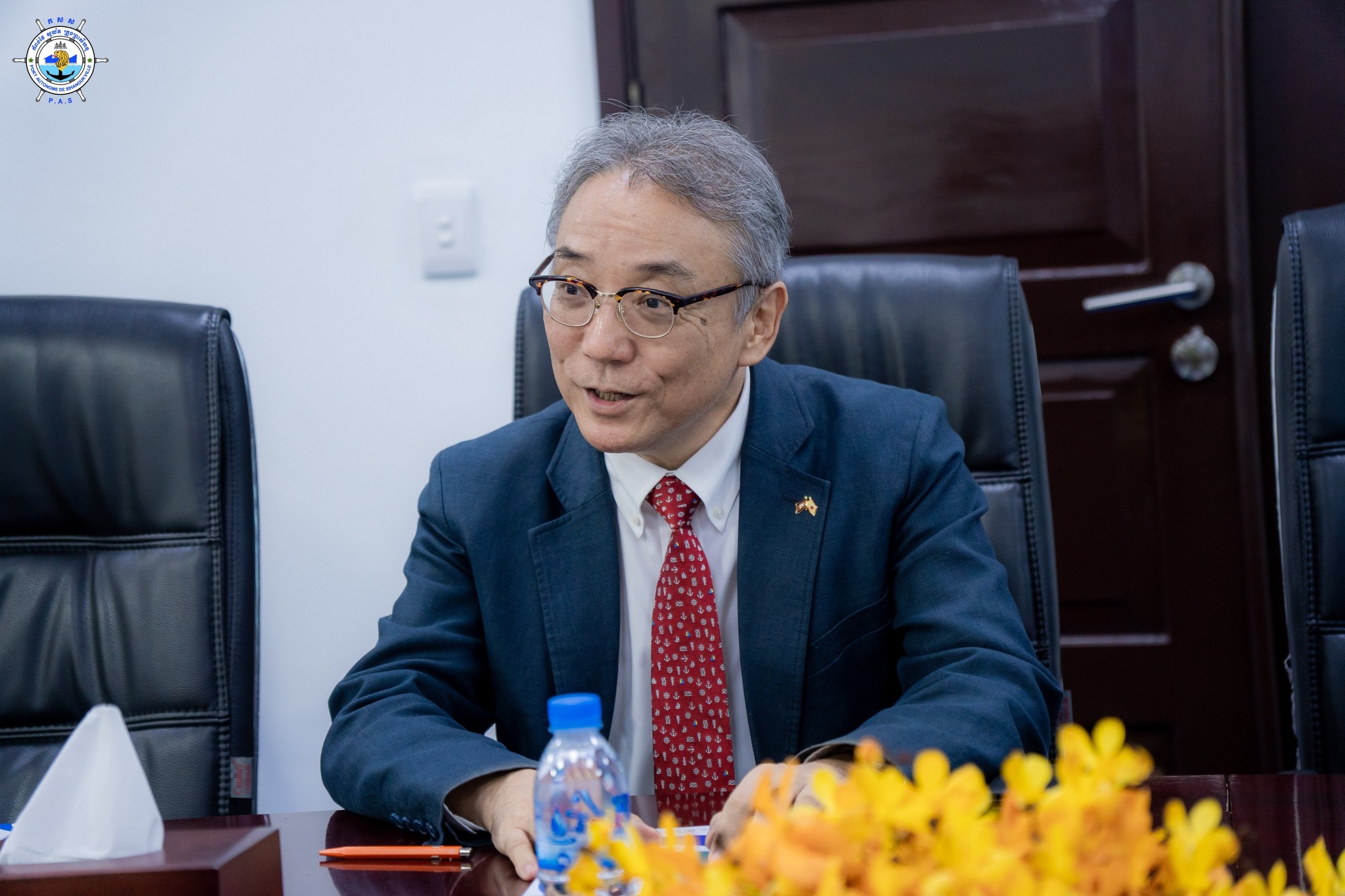 Sihanoukville Autonomous Port (PAS) : At 2 PM on Tuesday, 29th July 2025, at the venue of PAS Meeting Room, Mrs. Chey Sokunthea, Directress of Marketing Department, and Mr. Ngoun Rathana, Director of Business Department, Representatives of His Excellency Lou Kim Chhun, Delegate of the Royal Government of Cambodia in charge as Chairman and CEO of Sihanoukville Autonomous Port, and PAS Working Group, welcomed a visit of Forval (Cambodia) Company, led by Mr. Takeharu Mizukoshi, General Director of Forval (Cambodia) Company, in purpose to learn about PAS’s operation process, major business, and development of ICT sector.