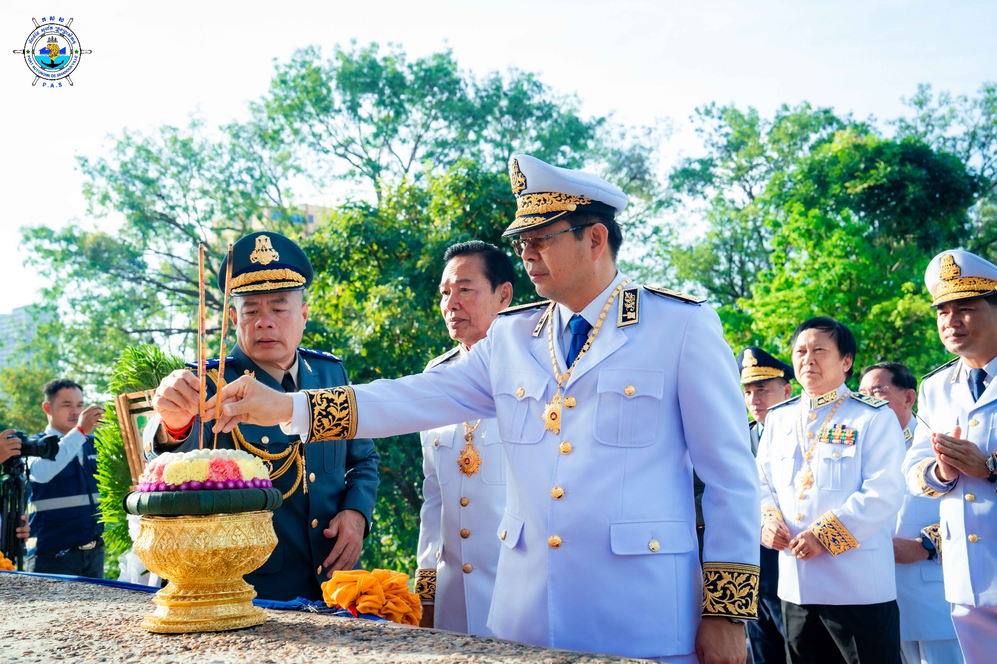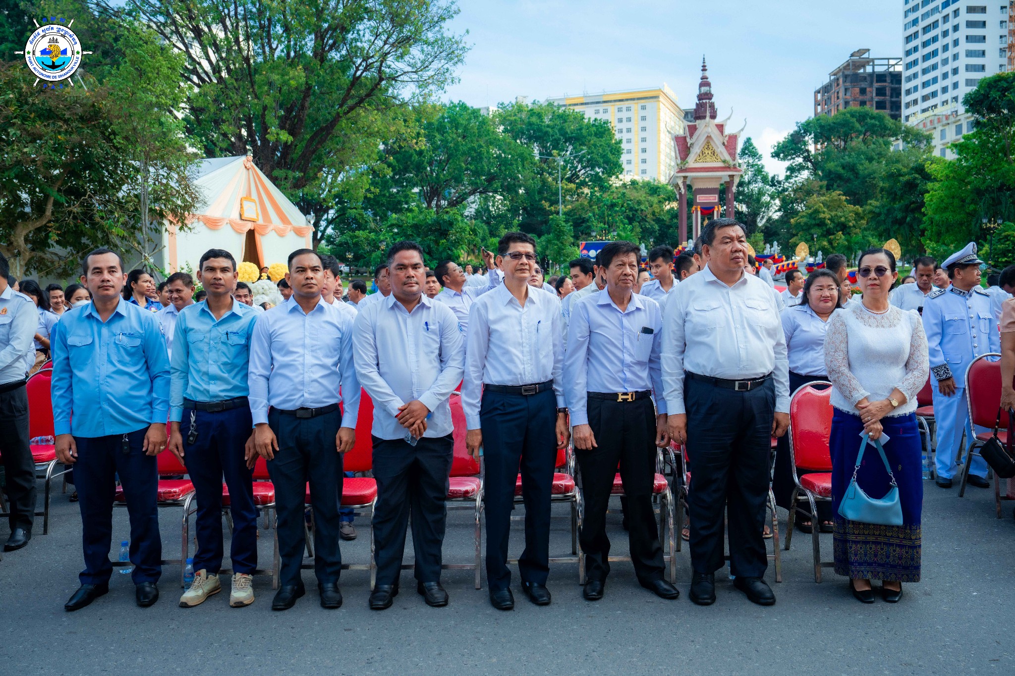 Preah Sihanouk Province : On Sunday, 9th November 2025, Mr. Thong Viro, Deputy Director-General in charge of Administration-Management, and Mr. Ty Sakun, Deputy Director-General in charge of Technical, Representatives of His Excellency Lou Kim Chhun, Delegate of Royal Government of Cambodia in charge as Chairman and CEO of Sihanoukville Autonomous Port (PAS) and PAS Working Group, attended the wreath-laying ceremony on the occasion of the 72nd Anniversary of National Independence Day 9th November and the Anniversary of Royal Cambodian Armed Forces (RCAF) Establishment of Year 2025, and this ceremony occurred at the Independence Monument in Preah Sihanouk province, presided over by His Excellency Vong Phanath, Chairman of the Preah Sihanouk Provincial Council, and His Excellency Mang Sineth, Governor of Preah Sihanouk Provincial Municipality, and attended by many departments and entities in Preah Sihanouk province as well
