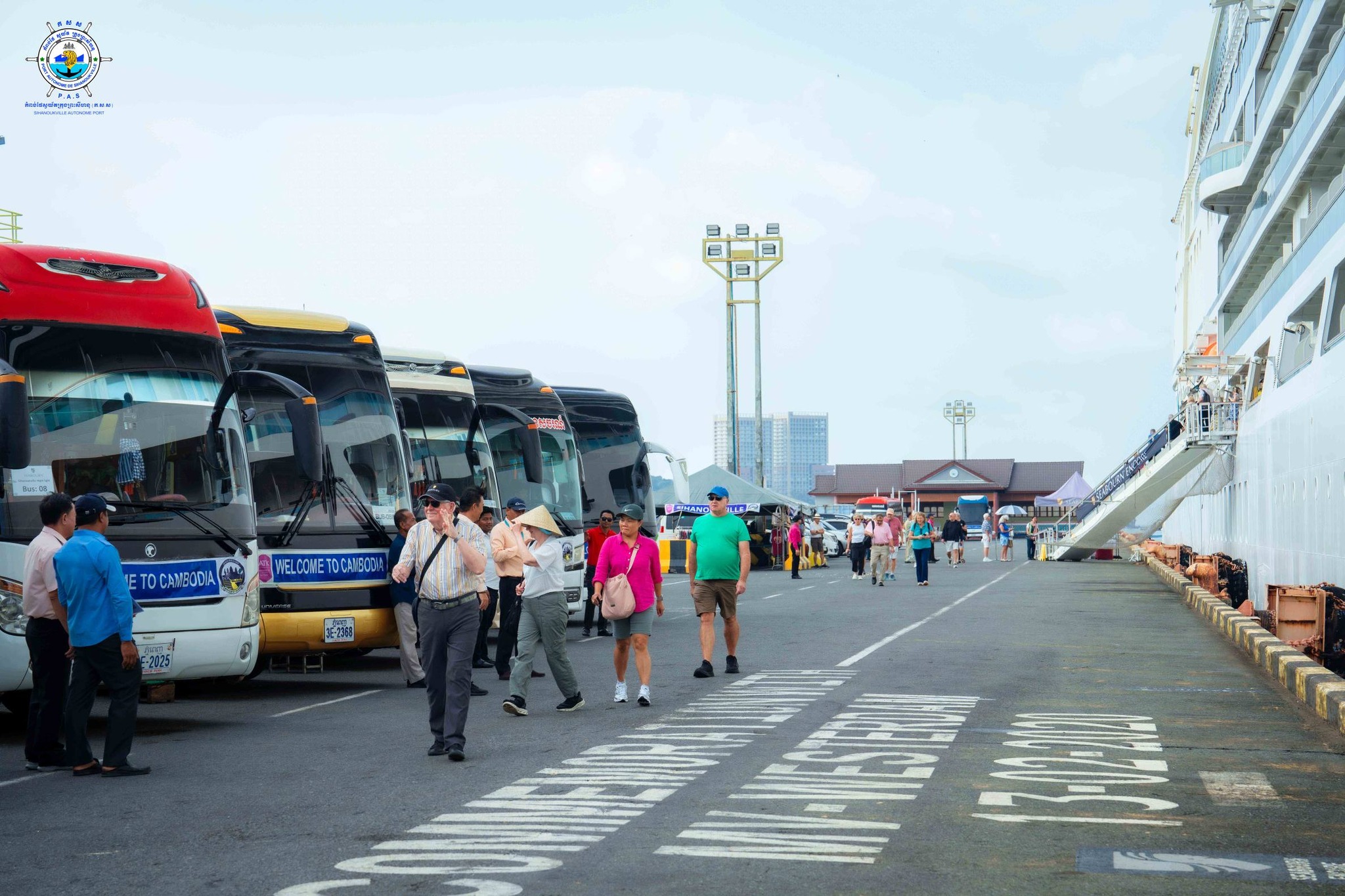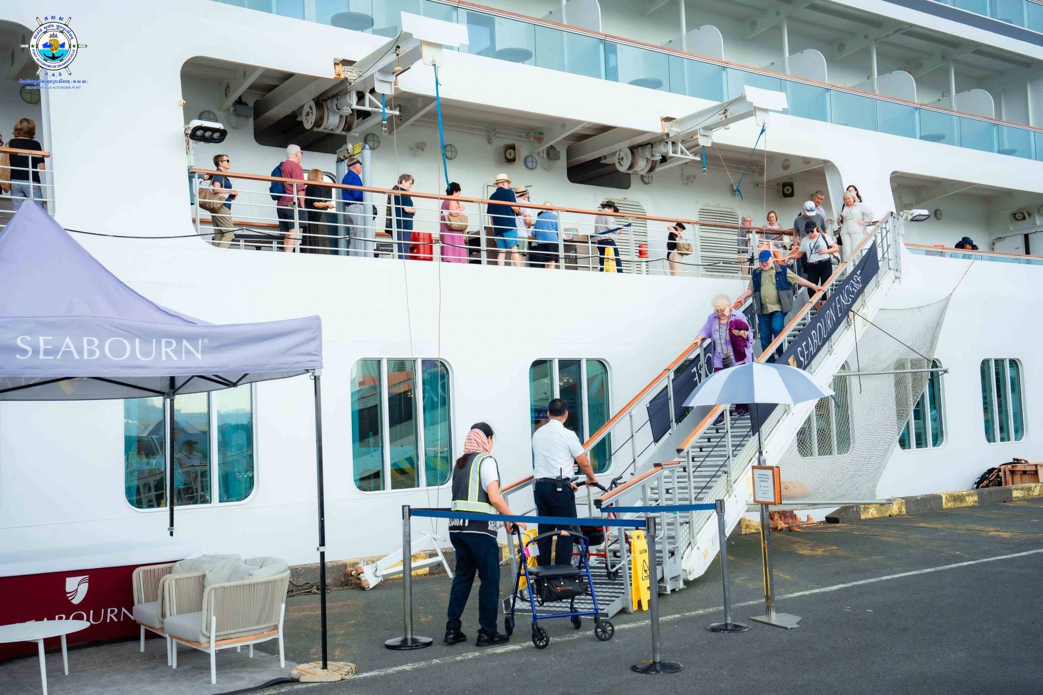 Sihanoukville Autonomous Port (PAS) At 7:00 on Tuesday, 24th February 2026, SEABOURN ENCORE cruise ship with nationality of BAHAMAS, length of 210.50 meters, width of 28.00 meters and depth of 6.00 meters, docked safely at PAS to visit Cambodia for one-day after leaving Vietnam. This cruise ship carries 415 crew members (88 females) with 43 nationalities and 529 passengers (271 females) with 23 nationalities. Most of passengers ‘nationalities are 261 USA and this cruise ship is scheduled to depart for Thailand at 20:00 on the same date