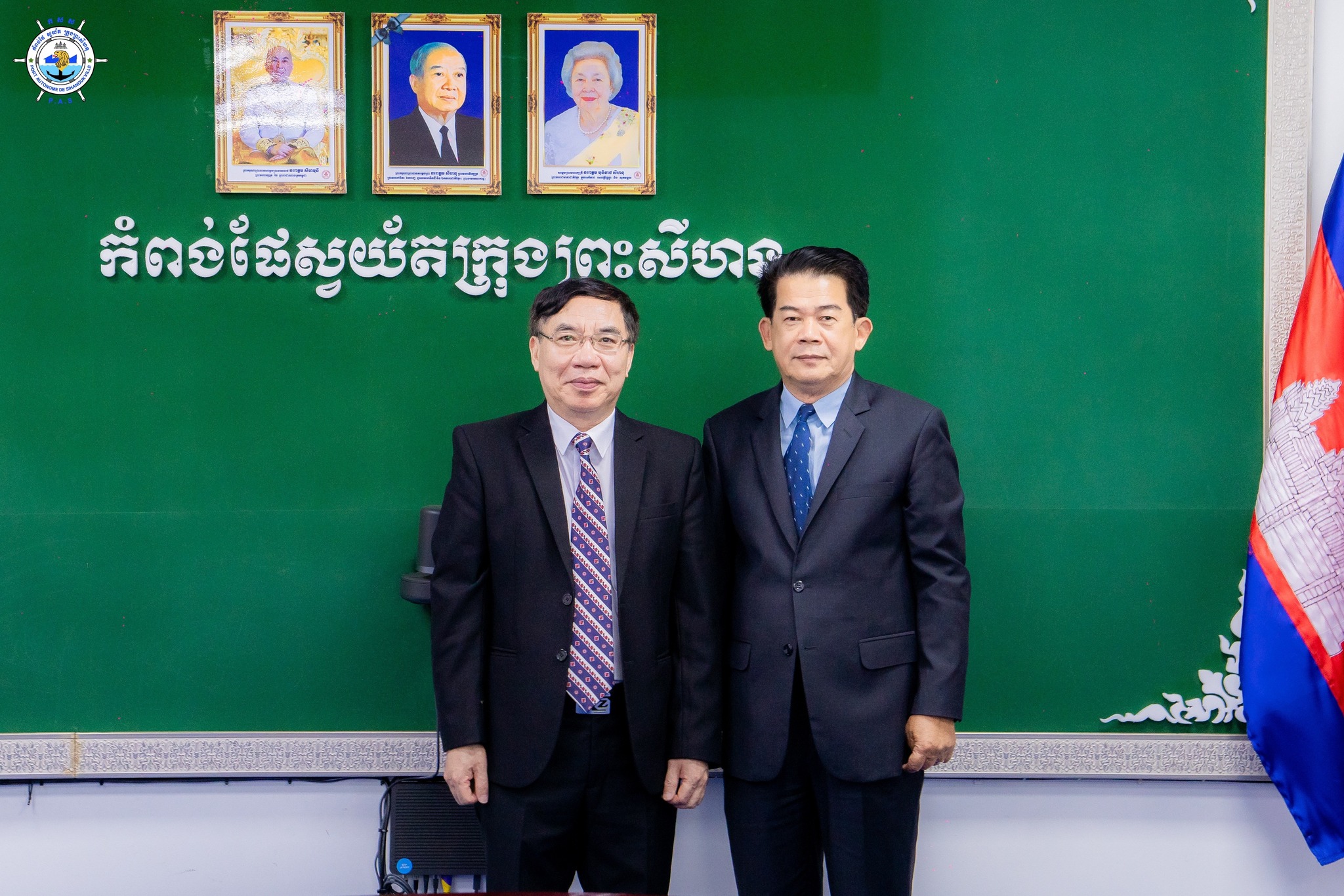 កំពង់ផែស្វយ័តក្រុងព្រះសីហនុ (កសស) ៖ នាវេលាម៉ោង ៩ ព្រឹក ថ្ងៃព្រហស្បតិ៍ ៦ កើត ខែចេត្រ ឆ្នាំរោង ឆស័ក ពុទ្ធសករាជ ២៥៦៨ ត្រូវនឹងថ្ងៃទី៣ ខែមេសា ឆ្នាំ២០២៥ នៅសាលប្រជុំតូច កសស ឯកឧត្តម លូ គឹមឈន់ ប្រតិភូរាជរដ្ឋាភិបាលកម្ពុជា ទទួលបន្ទុកជាប្រធានអគ្គនាយក កំពង់ផែស្វយ័តក្រុងព្រះសីហនុ និងថ្នាក់ដឹកនាំ កសស បានទទួលស្វាគមន៍ការចូលជួបសម្តែងការគួរសម និងការជូនពរឆ្នាំថ្មី របស់ ឯកឧត្តម Lai Xuan Chien ឯកអគ្គកុងស៊ុលវៀតណាមប្រចាំខេត្តព្រះសីហនុ និងមន្ត្រីកុងស៊ុលអមដំណើរ ដល់ថ្នាក់ដឹកនាំ កសស និងបងប្អូននិយោជិតកម្មករ នាឱកាសបុណ្យចូលឆ្នាំថ្មីប្រពៃណីជាតិខ្មែរ ឆ្នាំម្សាញ់ សប្តស័ក ព.ស ២៥៦៩ គ.ស ២០២៥ នាពេលខាមុខ