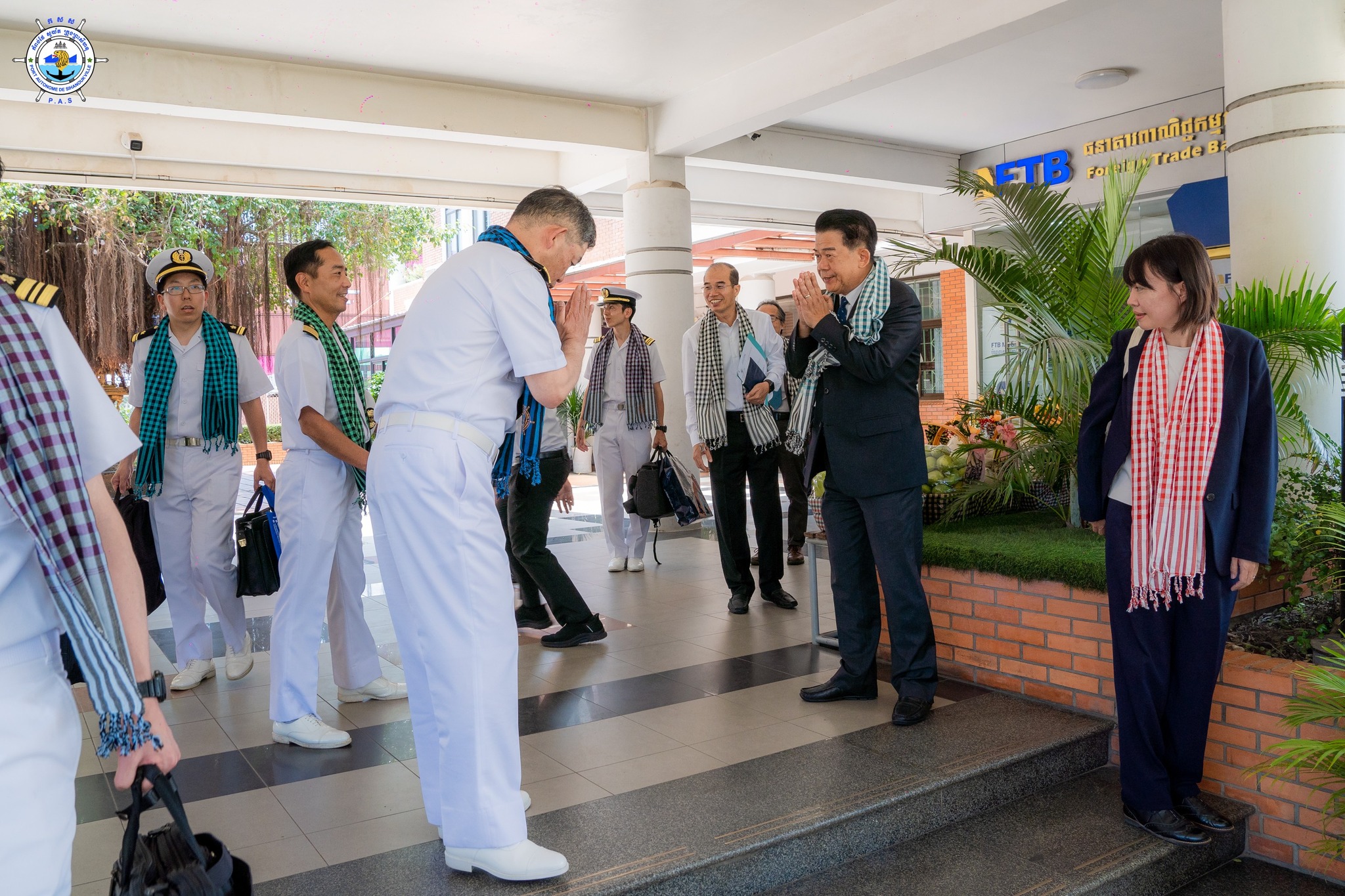 កំពង់ផែស្វយ័តក្រុងព្រះសីហនុ (កសស) ៖ នាវេលាម៉ោង ១១:៣០ នាទី ព្រឹក ថ្ងៃចន្ទ ៩រោច  ខែចេត្រ ឆ្នាំម្សាញ់ សប្តស័ក ពុទ្ធសករាជ ២៥៦៨ ត្រូវនឹងថ្ងៃទី២១ ខែមេសា ឆ្នាំ២០២៥ នៅសាលប្រជុំតូច កសស ឯកឧត្តម លូ គឹមឈន់ ប្រតិភូរាជរដ្ឋាភិបាលកម្ពុជា ទទួលបន្ទុកជាប្រធានអគ្គនាយក កំពង់ផែស្វយ័តក្រុងព្រះសីហនុ និងថ្នាក់ដឹកនាំ កសស បានទទួលស្វាគមន៍ ដំណើរទស្សនកិច្ច គណៈប្រតិភូ នាវាកងស្វ័យការពារជើងទឹកជប៉ុន ដឹកនាំដោយ ឧត្តមនាវីទោ IKEUCHI IZURU មេបញ្ជាការកងកម្លាំងប្រយុទ្ធប្រឆាំងមីន ទាំងលើគោក និងផ្ទៃទឹក ក្នុងគោលបំណង ស្វែងយល់ពី ប្រតិបត្តិការ និងការអភិវឌ្ឍរបស់ កស ជាពិសេស ដើម្បីពង្រឹងចំណងមិត្តភាពរវាង កម្ពុជា និងជប៉ុន