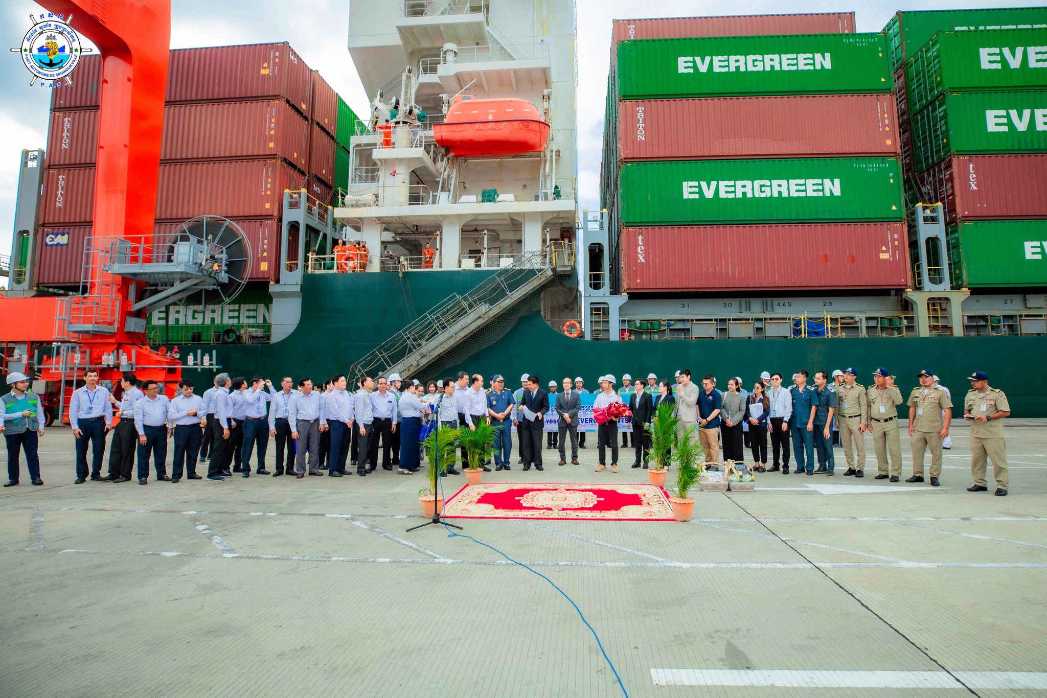 ពិធីស្វាគមន៍ដំណើរមកដល់ នៃនាវាទី២ ប្រចាំសប្តាហ៍ របស់ក្រុមហ៊ុននាវា EVERGREEN VTS SERVICE មកកាន់ កំពង់ផែស្វយ័តក្រុងព្រះសីហនុ