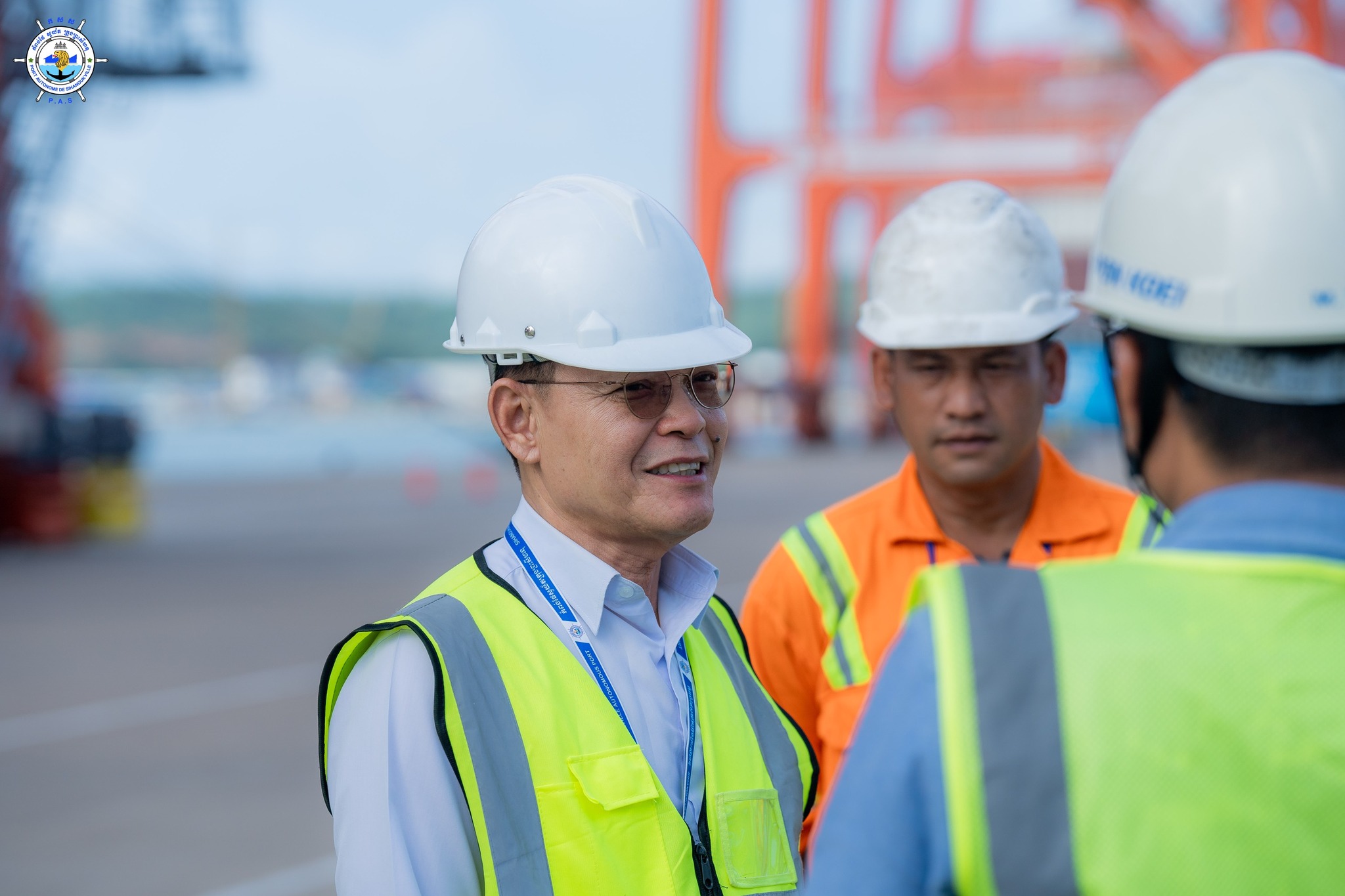 Sihanoukville Autonomous Port (PAS) : At 9 AM on Tuesday, 15th July 2025, Mr. Ty Sakun, Deputy Director-General in charge of Technical, Representative of His Excellency Lou Kim Chhun, Delegate of the Royal Government of Cambodia in charge as Chairman and CEO of Sihanoukville Autonomous Port, and PAS Technical Team, with Project Consultant: Nippon Koei-Oriental Consultants Global JV and Contractor: TOA Corporation, had conducted an joint inspection on Defects Liability Period (DLP) at Area IV of the 253-Meter Container Terminal