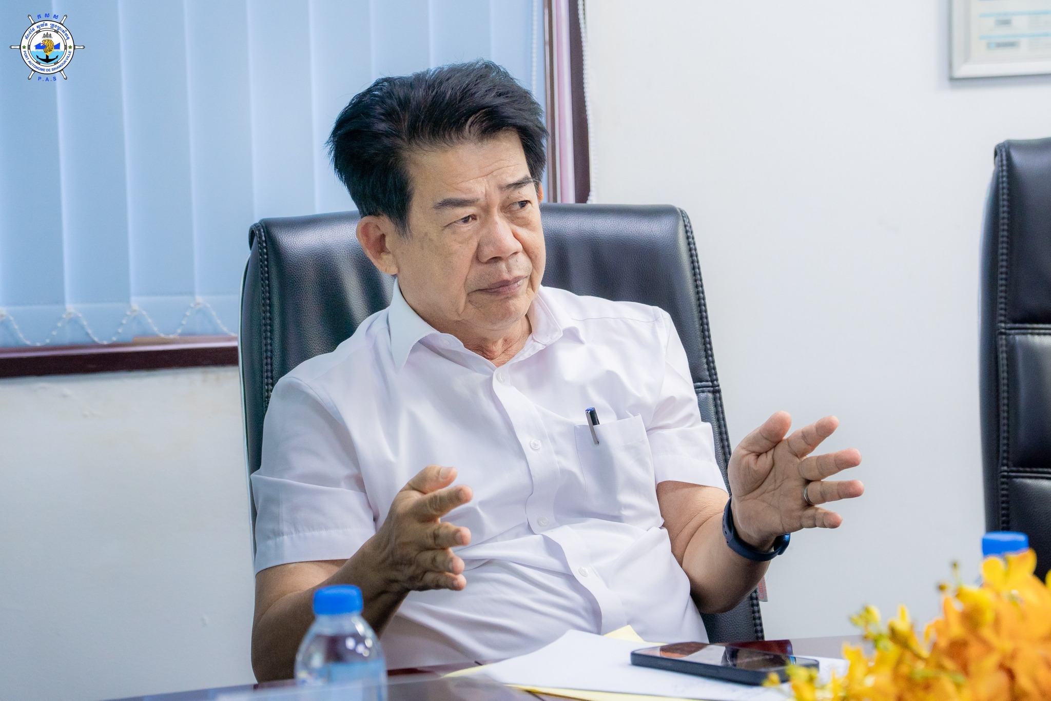 Sihanoukville Autonomous Port (PAS) : At 4 PM on Wednesday, 23rd July 2025, at the venue of PAS Meeting Room, His Excellency Lou Kim Chhun, Delegate of the Royal Government of Cambodia in charge as Chairman and CEO of Sihanoukville Autonomous Port and PAS Management, held a discussion meeting with TNTVN Forestry Co., Ltd., led by Mr. Loun Son Hai, Director of TNTVN Forestry Co., Ltd., accompanied by Sun Paper Company and Minh Hoang Company, in purpose to learn about installation of conveyor bridge and conveyor belt system at port for operation performance of wood chip export in the upcoming August.