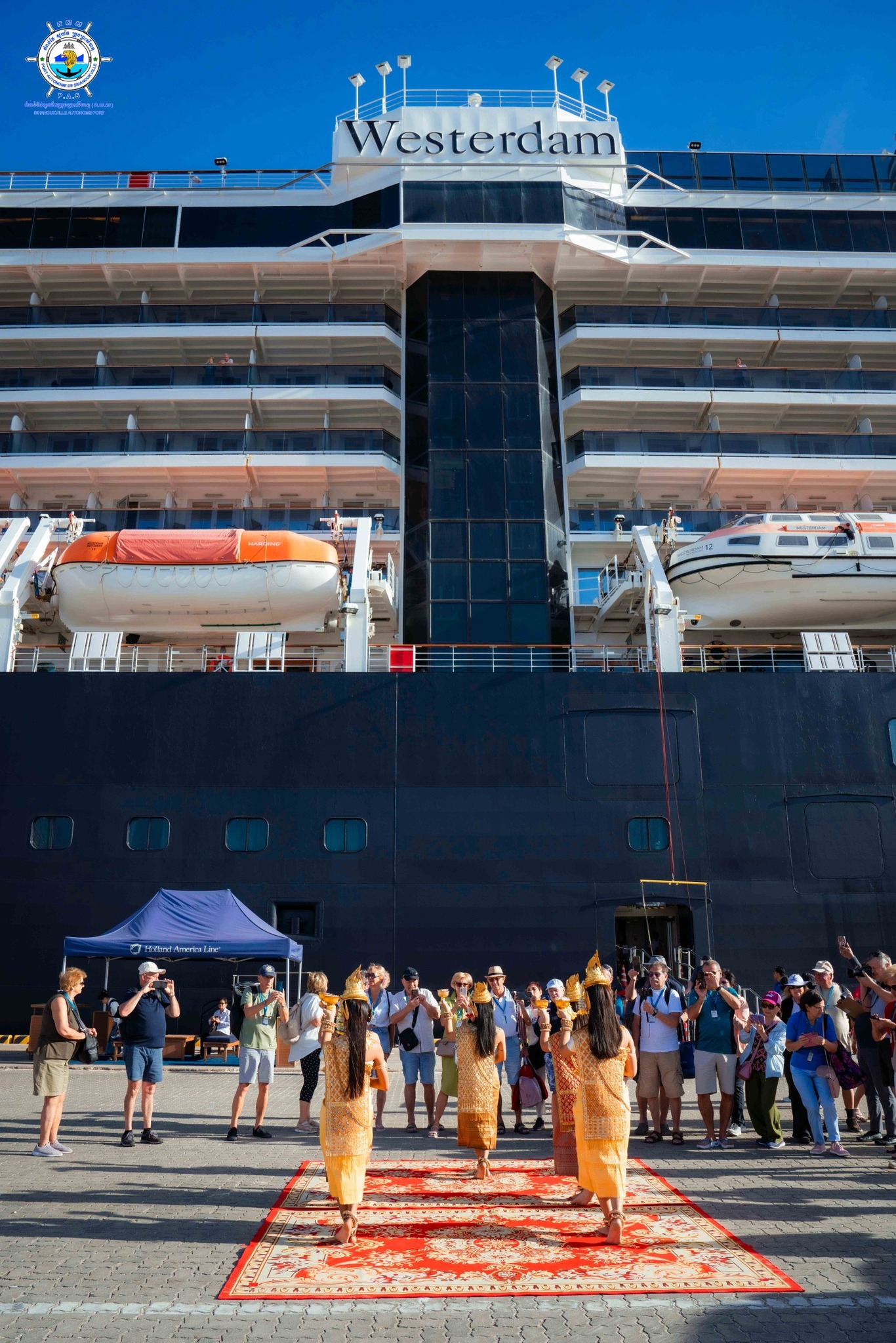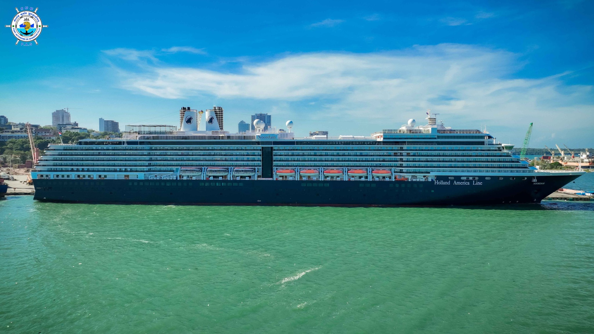 Sihanoukville Autonomous Port (PAS) At 6:50 on Monday, 15th December 2025, WESTERDAM cruise ship with nationality of HOLLAND, length of 285.22 meters, width of 32.20 meters and depth of 8.1 meters, docked safely at PAS to visit Cambodia for one-day after leaving Vietnam. This cruise ship carries 800 crew members (157 females) with 40 nationalities and 1,877 passengers (999 females) with 43 nationalities. Most of passengers ‘nationalities are 824 USA and 299 Australia and this cruise ship is scheduled to depart for Thailand at 20:00 on the same date