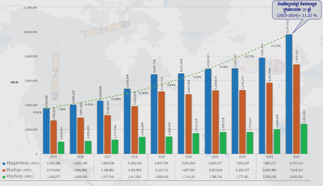 បរិមាណទំនិញឆ្លងកាត់ កសស-តោន (២០១៥-២០២៤)