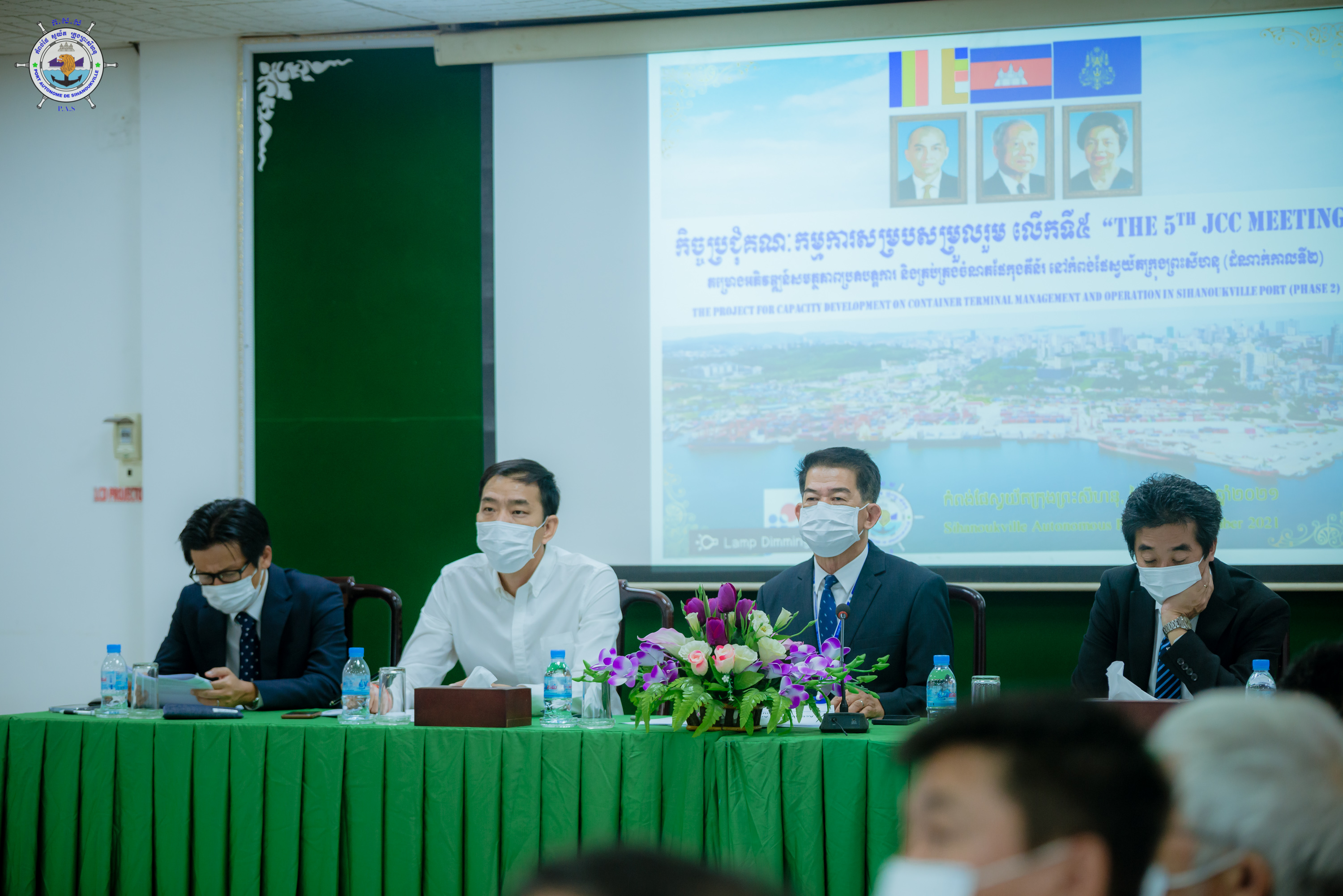 At 3 PM on Monday, 20th December 2021, His Excellency Lou Kim Chhun, Delegate of the Royal Government of Cambodia in charge as Chairman and CEO of Sihanoukville Autonomous Port (PAS) led the 5th Joint Coordinating Commission meeting (final meeting) of capacity development project in management and container terminal operations at PAS (Phase 2) at PAS`s meeting hall.