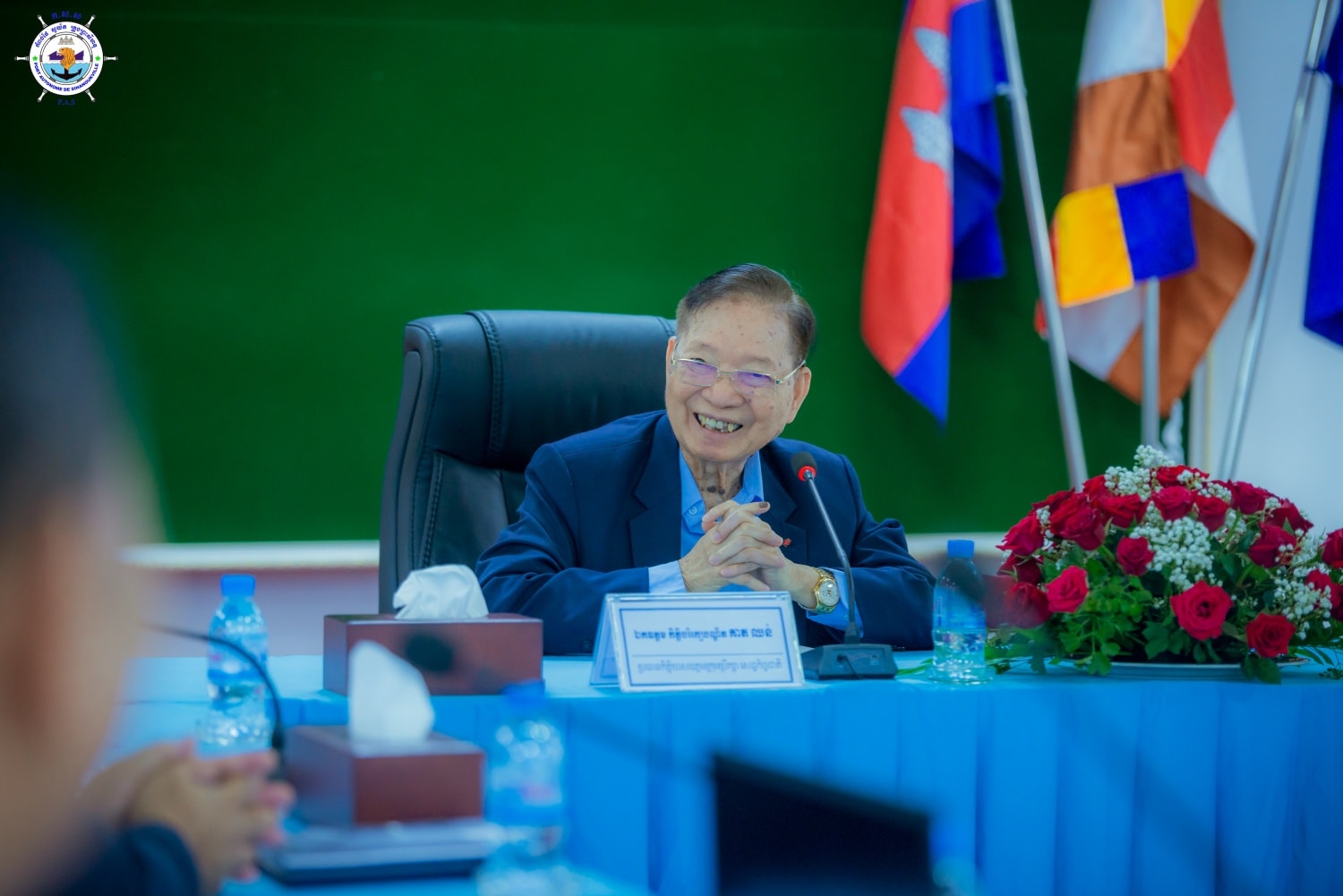 Welcomed and presented to the delegation led by His Excellency Dr. Kitti Barekrak. Keat Chhon, Honorary Chairman of the Supreme National Economic Council (SNEC)