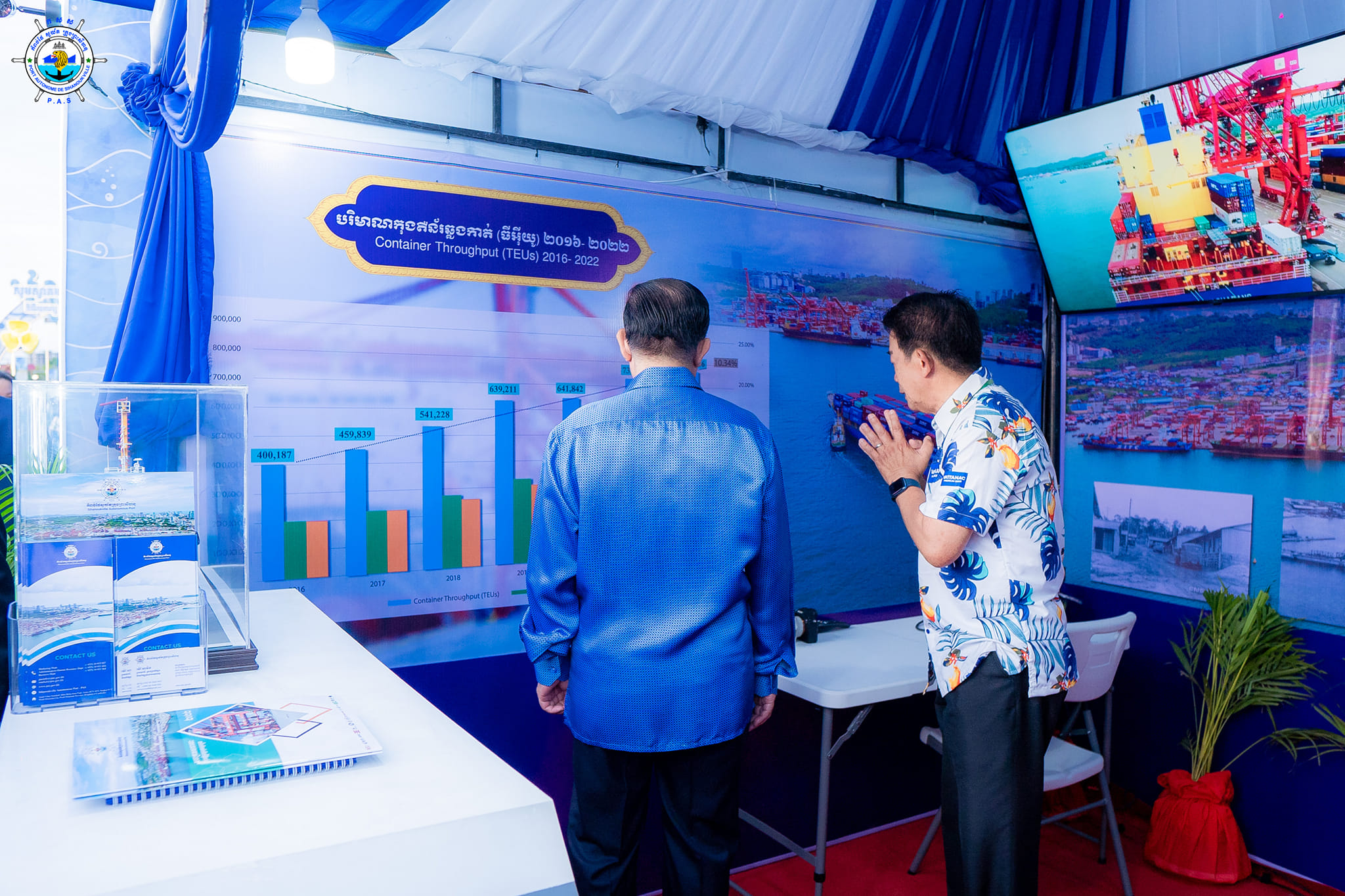 ដើម្បីចូលរួមអបអរសាទរពិធីបុណ្យសមុទ្រលើកទី៩ ជុំទី៣ ឆ្នាំ២០២២ ដែលប្រារព្វធ្វើឡើងនៅទីលានតេជោ ខេត្តព្រះសីហនុ ចាប់ពីថ្ងៃទី៩ ដល់ ១១ ខែធ្នូ ឆ្នាំ២០២២ កំពង់ផែស្វយ័តក្រុងព្រះសីហនុ បានរៀបចំស្តង់ពិព័រណ៏ស្តីពី វឌ្ឍនភាព និងផែនការអភិវឌ្ឍន៍នៅពេលអនាគតរបស់ កសស ។ កសស ពិតជាមានមោទនភាព និងមហាកិត្តិយសយ៉ាងក្រៃលែងដែលស្តង់ពិព័រណ៏ របស់យើងបានទទួលការចាប់អារម្មណ៍ចូលទស្សនាពី សម្តេចតេជោ ហ៊ុន សែន នាយករដ្ឋមន្ត្រី នៃព្រះរាជាណាចក្រកម្ពុជា អមជូនដោយការអត្ថាធិប្បាយយ៉ាងក្បោះក្បាយរបស់ ឯកឧត្តម លូ គឹមឈន់ ប្រតិភូរាជរដ្ឋាភិបាលកម្ពុជាទទួលបន្ទុកជា ប្រធានអគ្គនាយក កំពង់ផែស្វយ័តក្រុងព្រះសីហនុ ស្តីពីសក្តានុពល វឌ្ឍនភាព និងផែនការអភិវឌ្ឍន៍នៅពេលអនាគតរបស់ កសស ដែលចូលរួមចំណែកដល់ការអភិវឌ្ឍសេដ្ឋកិច្ចកម្ពុជា ។