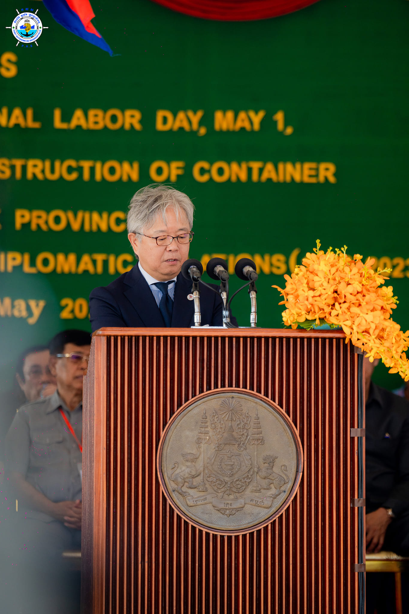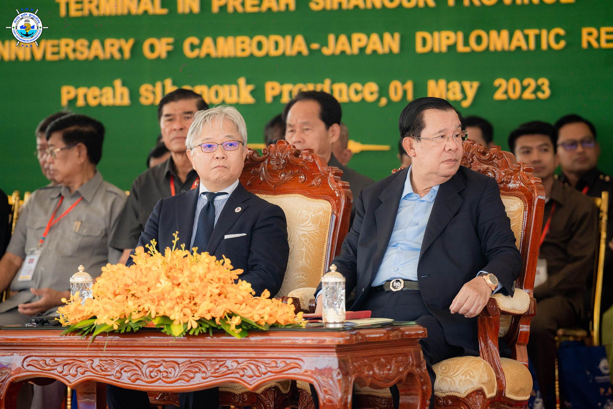Sihanoukville Autonomous Port (PAS) At 8 AM on Monday, 01st May 2023, At the venue of Multipurpose Terminal of PAS, Samdech Akka Moha Sena Padei Techo HUN SEN, Prime Minister of the Kingdom of Cambodia, highly presided the Congratulations on the 137th Anniversary of International Labor Day, May 01, the Ground Breaking Ceremony for the Construction of Container Terminal in Preah Sihanouk Province, and the 70th Anniversary of Cambodia-Japan Diplomatic Relations (1953-2023), with the presence of His Excellency Deputy Prime Minister, Senior Ministers, His Excellency Sun Chanthol, Senior, Minister of Public Works and Transport, Excellencies Ministers, Excellencies Secretaries of State and Under Secretaries of State, His Excellency Mr. Kuoch Chamroeun, Governor of Preah Sihanouk Province, His Excellency Lou Kim Chhun, Delegate of the Royal Government of Cambodia in charge as Chairman and CEO of Sihanoukville Autonomous Port, His Excellency Mr. UENO Atsushi, Ambassador Extraordinary and Plenipotentiary of Japan to the Kingdom of Cambodia, the Relevant Ministerial Management, Relevant Authorities, Preah Sihanouk Provincial Authority, PAS Board of Directors, JICA Chief Representatives, Excellencies, Oknha, Managements, Government Officials, Employees, Workers