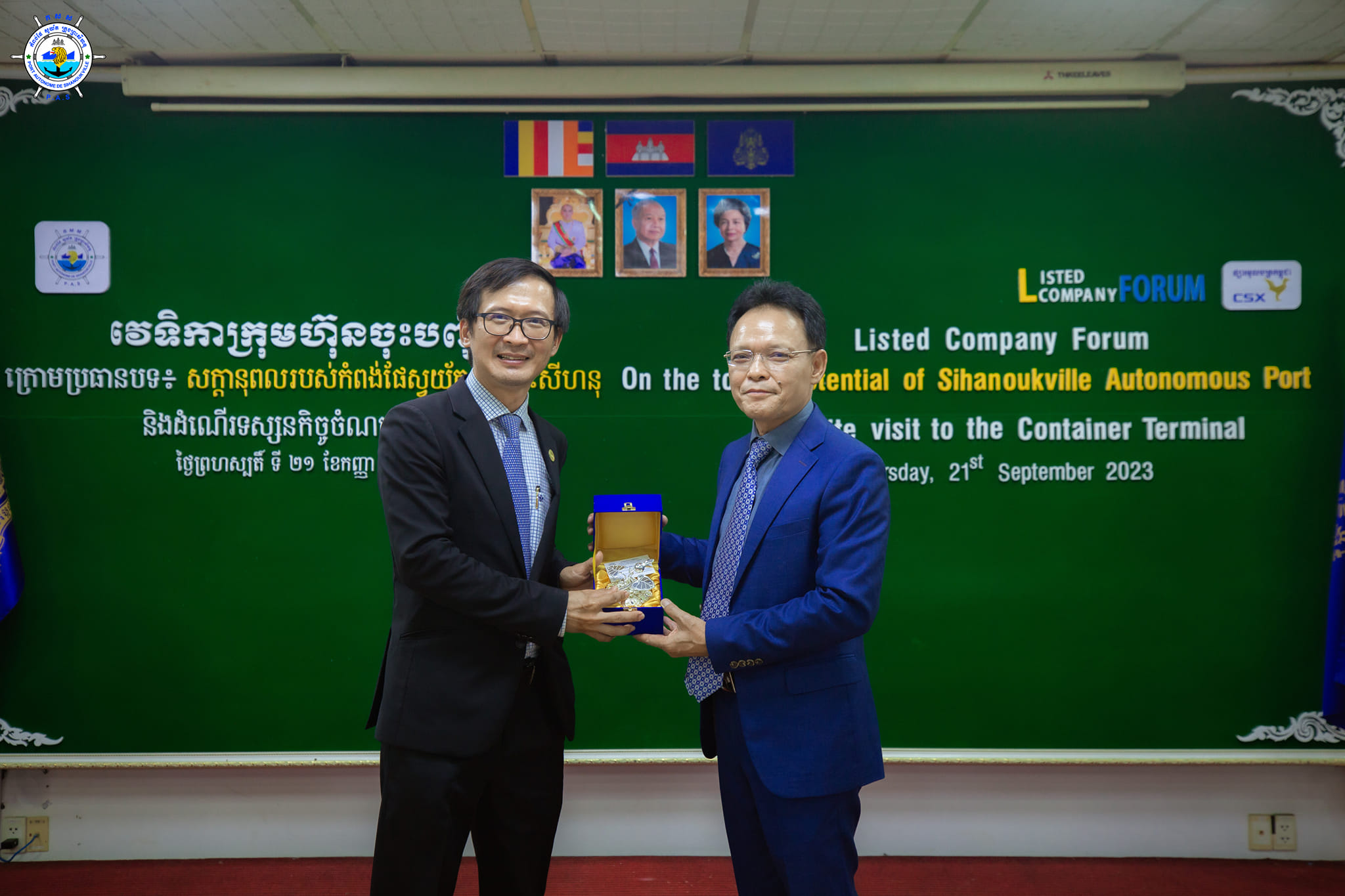 Sihanoukville Autonomous Port (PAS) At 11 AM on Thursday, 21st September 2023, Listed Company Forum on the Topic: Potential of Sihanoukville Autonomous Port and Site Visit to the Container Terminal, was held at the Sihanoukville Autonomous Port, presided over by Mr. Ty Sakun, Deputy Director-General, a representative on behalf of His Excellency Lou Kim Chhun, Delegate of the Royal Government of Cambodia in charge as Chairman and CEO of Sihanoukville Autonomous Port, and His Excellency Hong Sok Hour, Delegate of the Royal Government of Cambodia in charge as CEO of Cambodia Securities Exchange