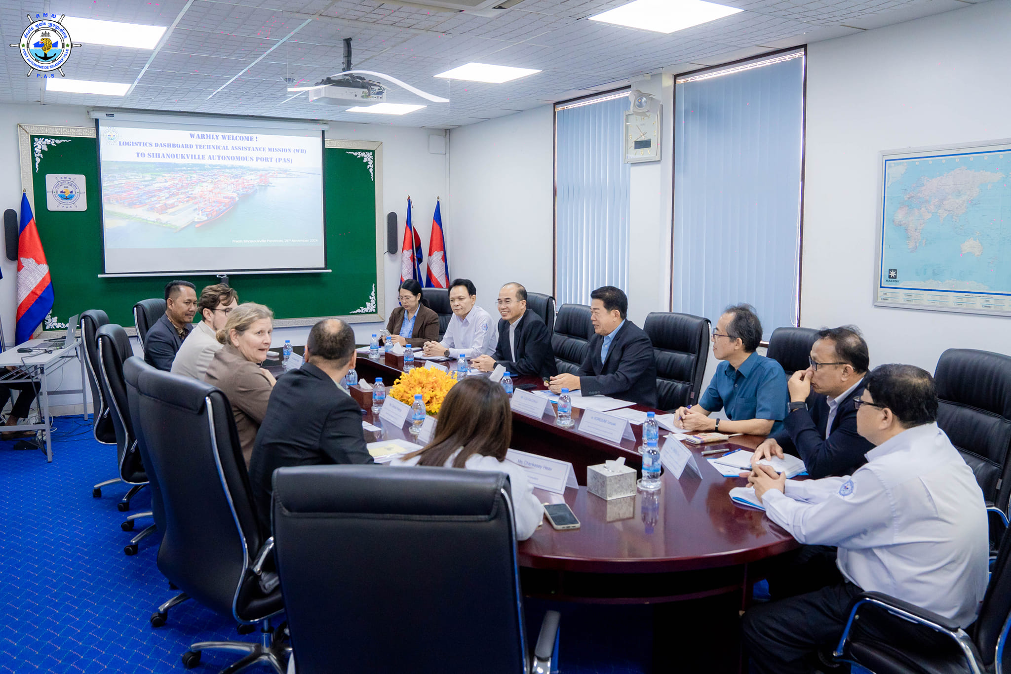 Sihanoukville Autonomous Port (PAS): At 11 AM on Tuesday, 26th November 2024, at the venue of PAS Meeting Room, His Excellency Lou Kim Chhun, Delegate of the Royal Government of Cambodia in charge as Chairman and CEO of Sihanoukville Autonomous Port, and PAS Management, held a discussion meeting with World Bank, led by Mrs. Cordula Rastogi, Senior Transport Specialist and Mr. Ly Sodeth, Senior Economist of the World Bank, regarding PAS’s business operations and developments