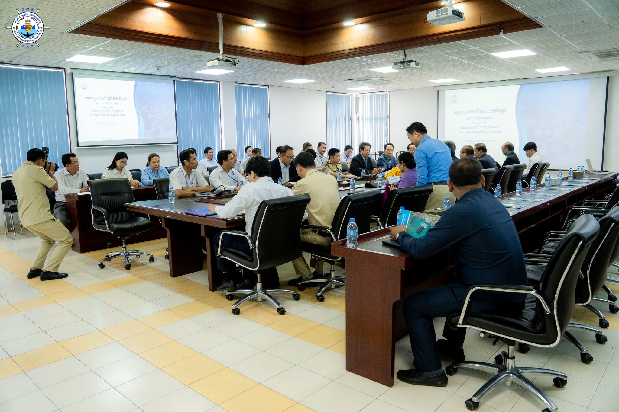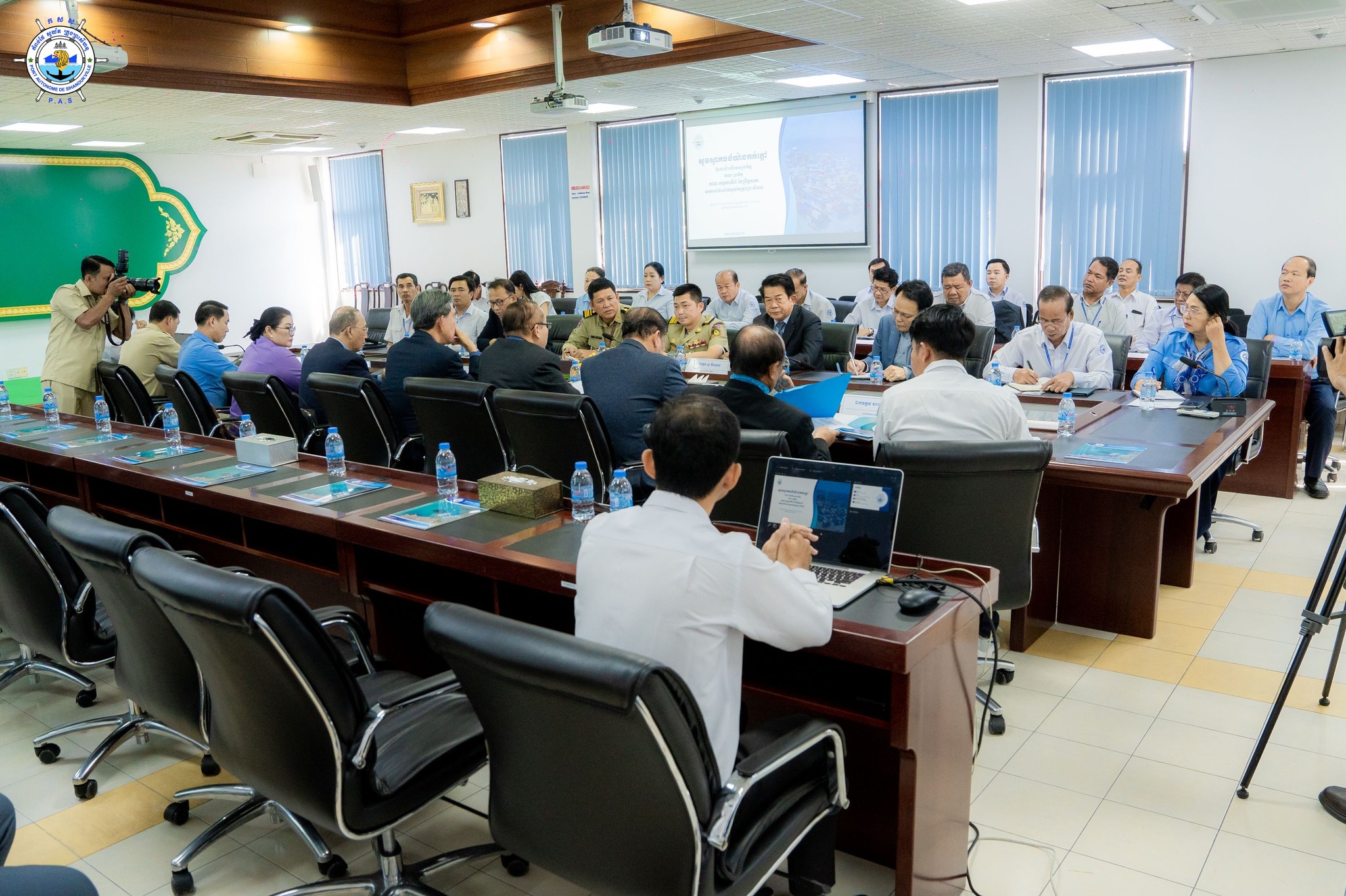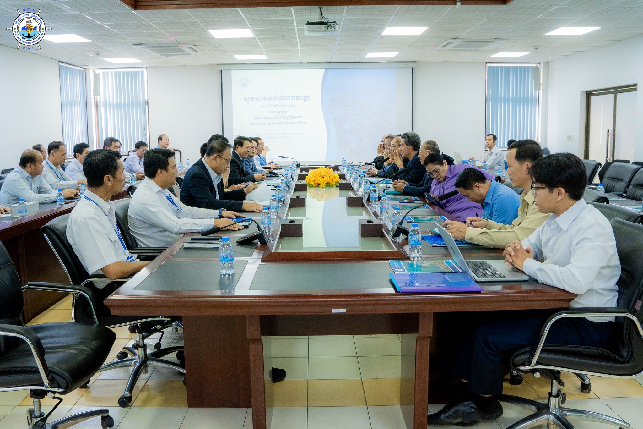 Sihanoukville Autonomous Port (PAS) : At 2:30 PM on Wednesday, 15th January 2025, at the venue of PAS Conference Room, His Excellency Lou Kim Chhun, Delegate of the Royal Government of Cambodia in charge as Chairman and CEO of Sihanoukville Autonomous Port and PAS Management, received a courtesy visit of the 5th Committee of Senate Delegation, led by His Excellency Chem Widhya, Head of the 5th Committee of Senate, in purpose to learn about developments in Sihanoukville Autonomous Port