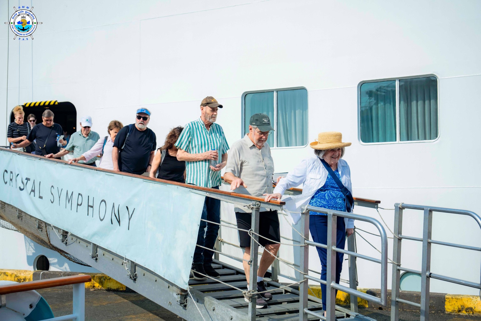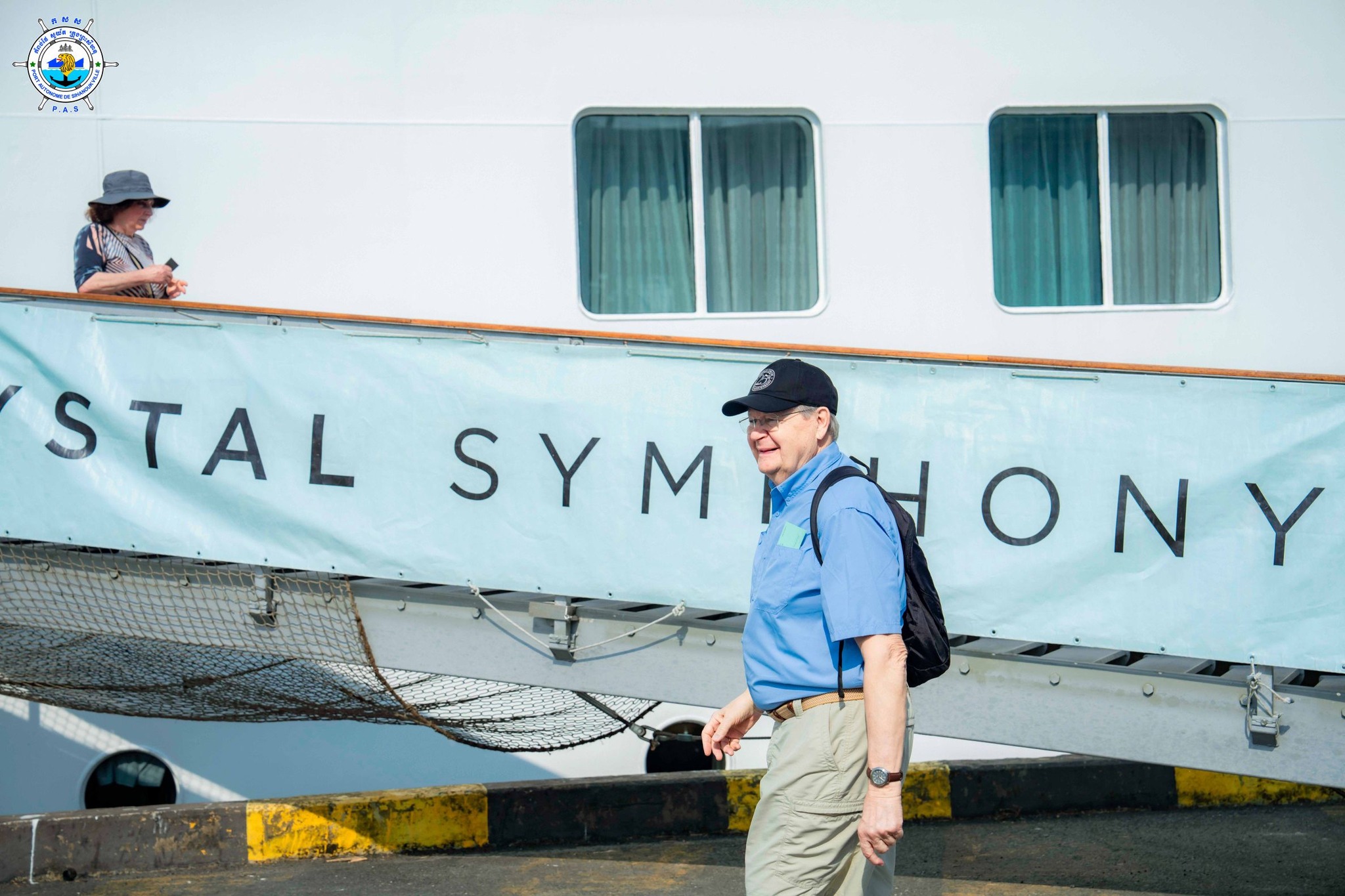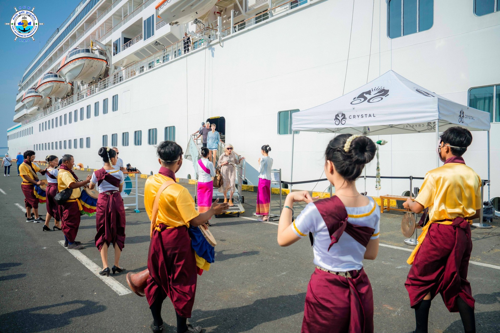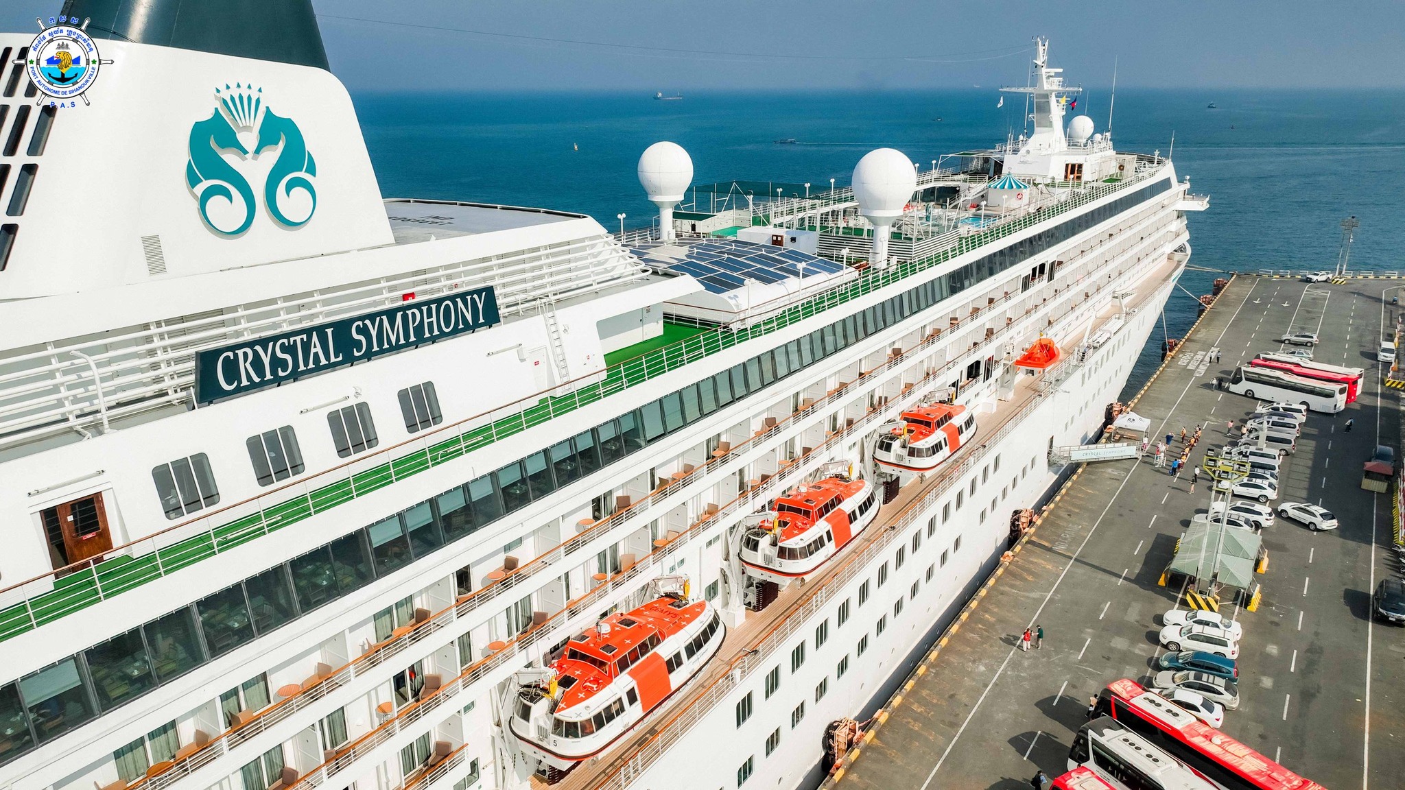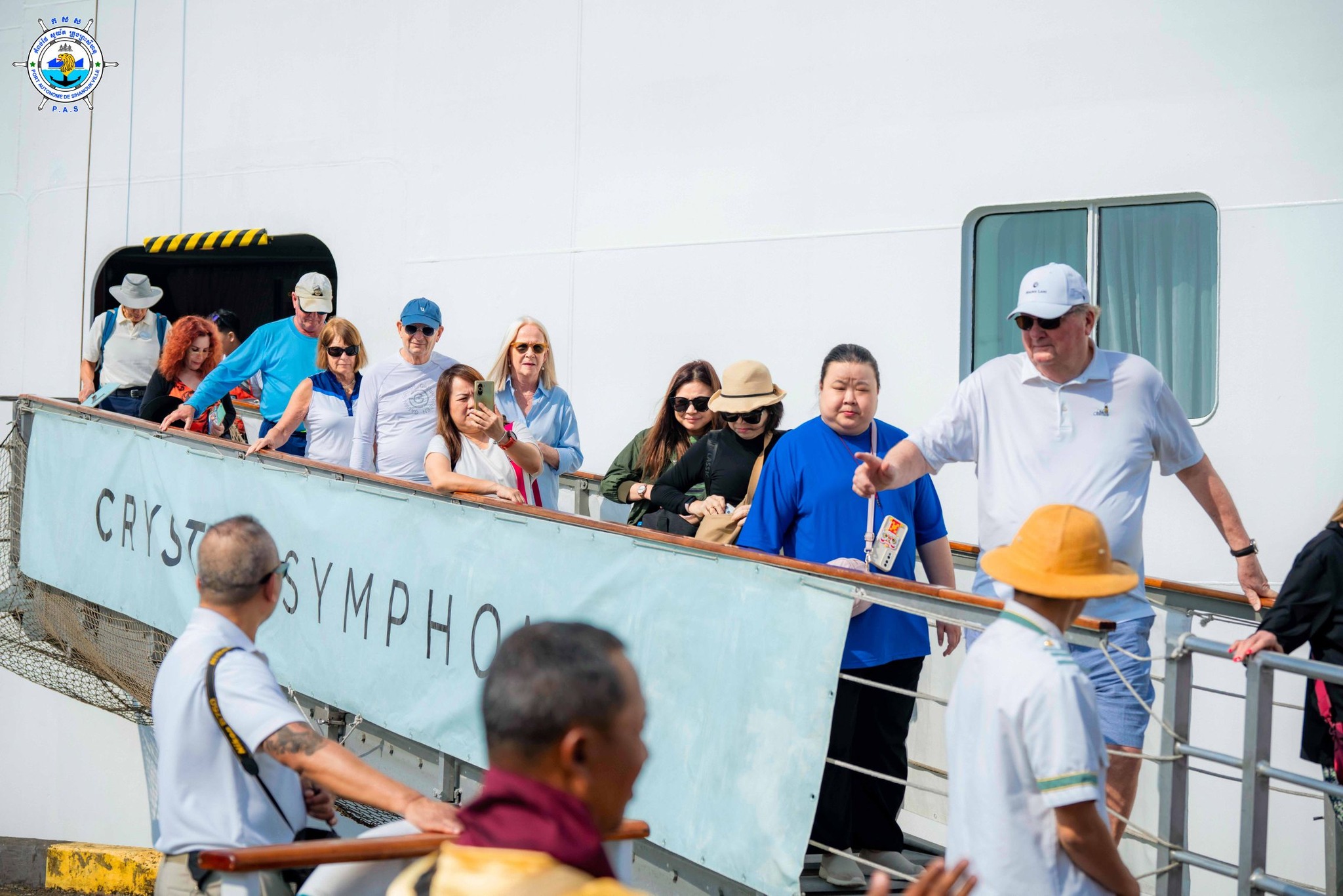 Sihanoukville Autonomous Port (PAS) At 9:00 on Friday, 24th January 2025, CRYSTAL SYMPHONY cruise ship with nationality of BAHAMAS, length of 238.01 meters, width of 30.20 meters, and depth of 7.6 meters, docked safely at PAS to visit Cambodia for one day after leaving Thailand. This cruise ship carries 487 crew members (120 females) with 48 nationalities and 427 passengers (212 females) with 28 nationalities. Most of passengers ‘nationalities are 274 USA and this cruise ship is scheduled to depart for Vietnam at 19:30 on the same date