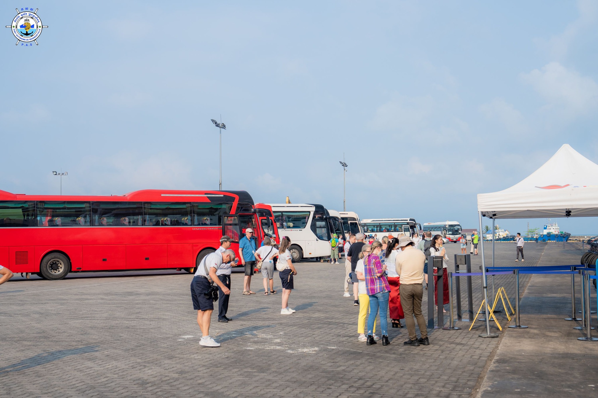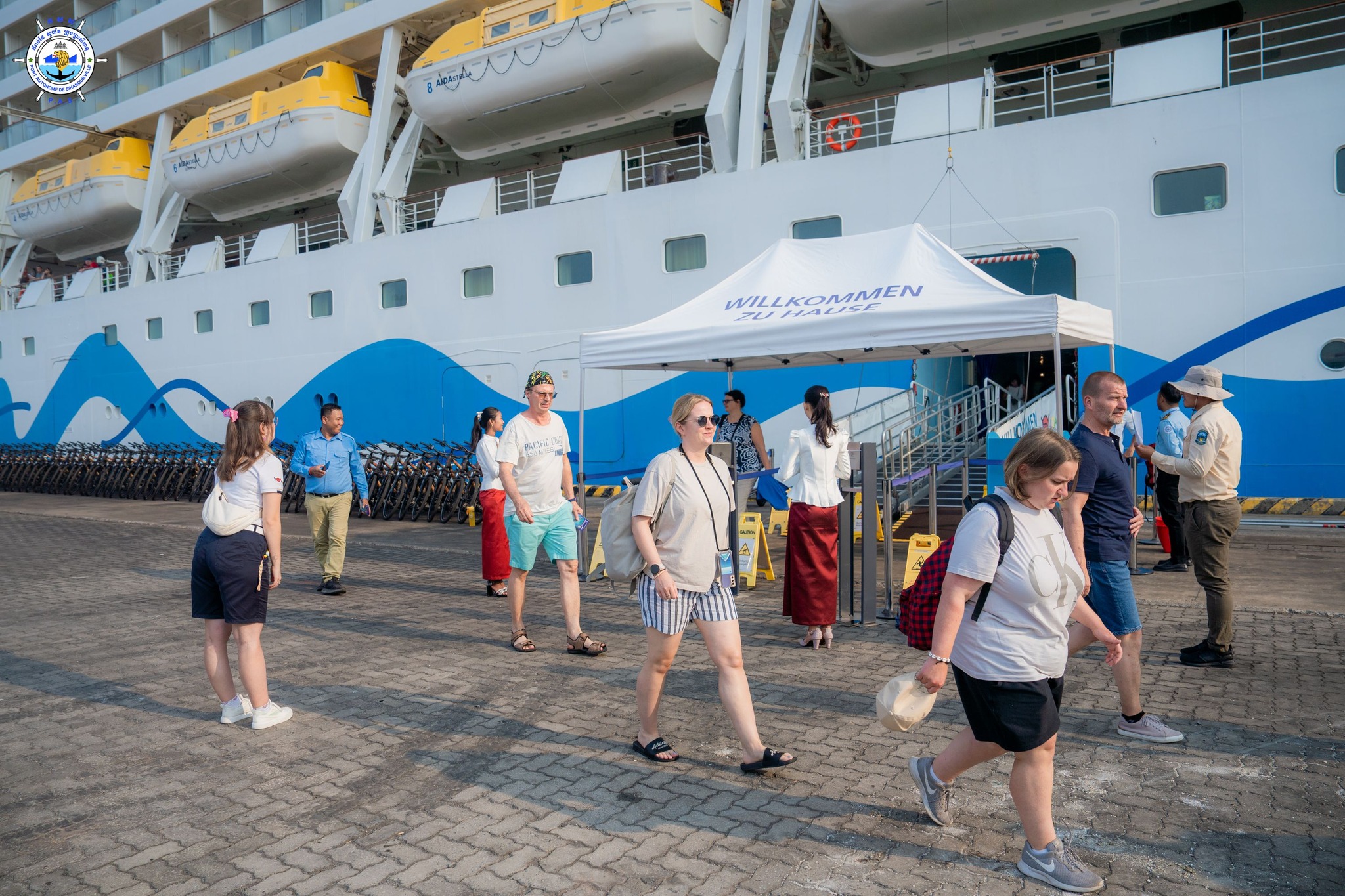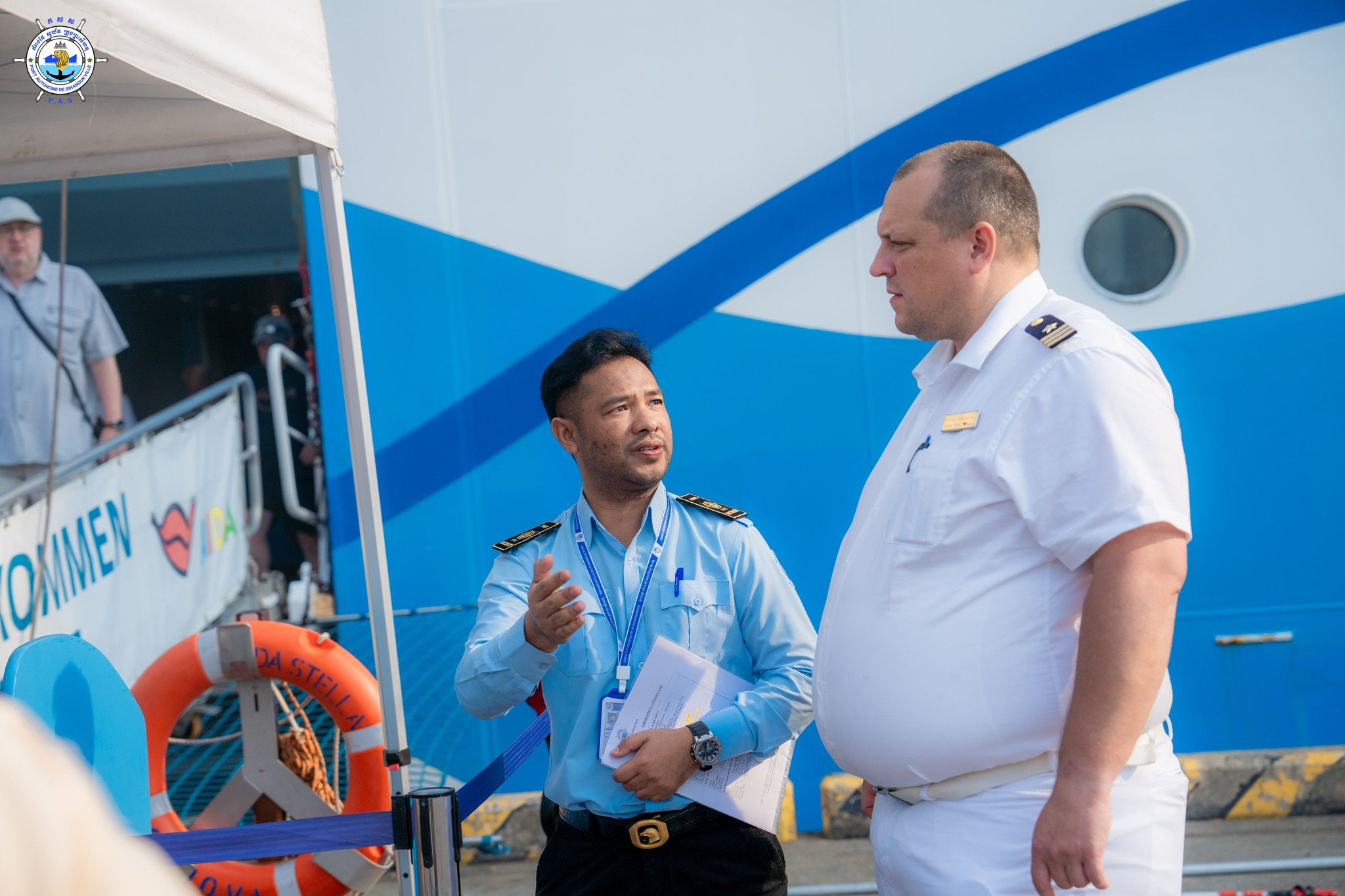 Sihanoukville Autonomous Port (PAS) At 7:30 on Saturday, 15th February 2025, AIDA STELLA cruise ship with nationality of ITALY, length of 253.3 meters, width of 32.2 meters, and depth of 7.3 meters, docked safely at PAS to visit Cambodia for one day after leaving Vietnam. This cruise ship carries 637 crew members (140 females) with 28 nationalities and 2,123 passengers (1,076 females) with 13 nationalities. Most of passengers ‘nationalities are 1,869 GERMANY and this cruise ship is scheduled to depart for Thailand at 18:00 on the same date