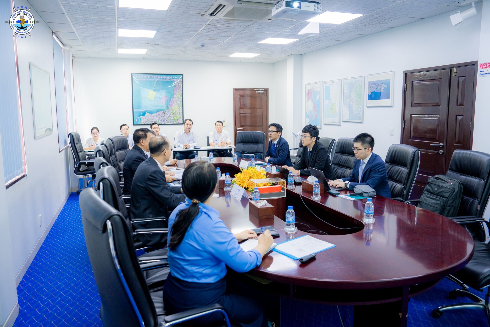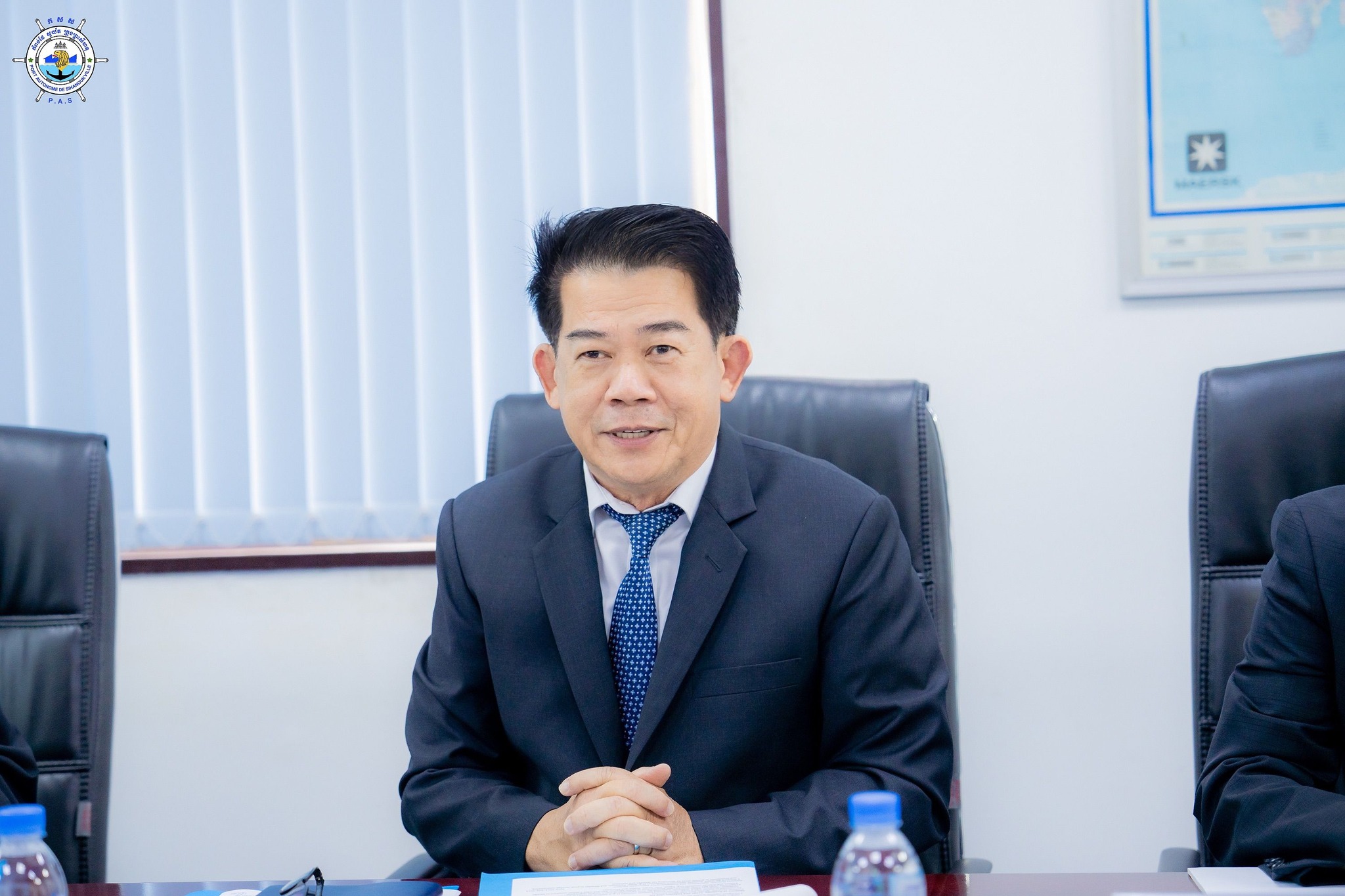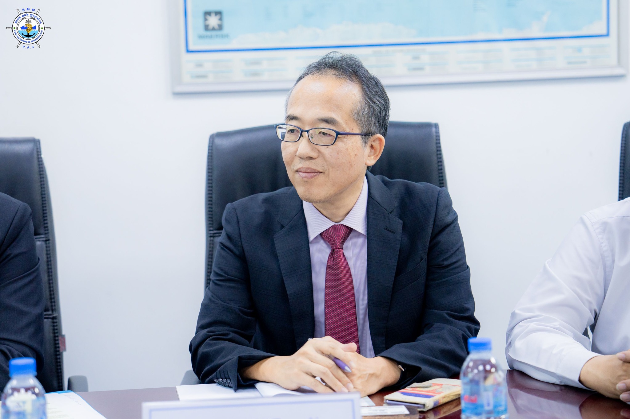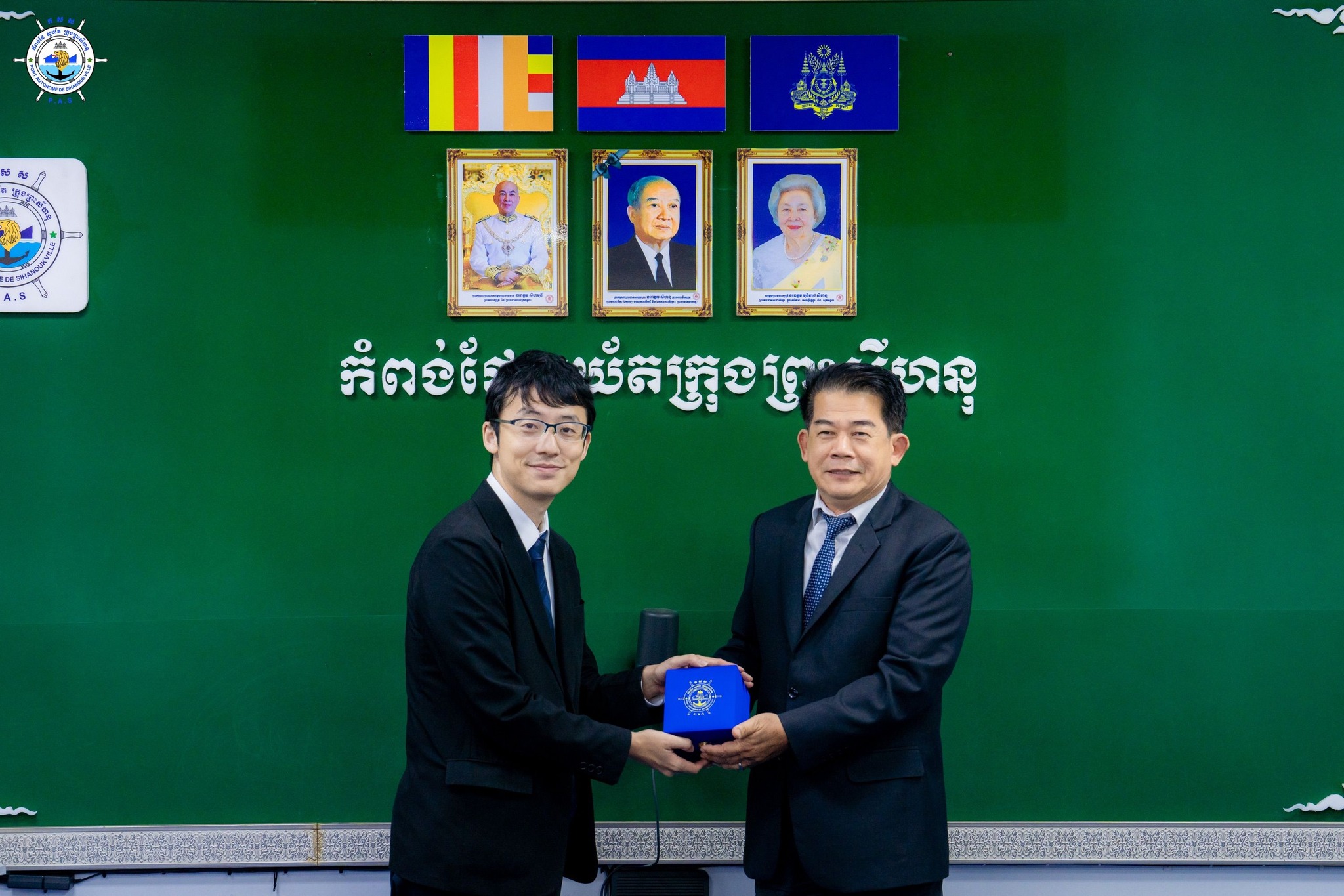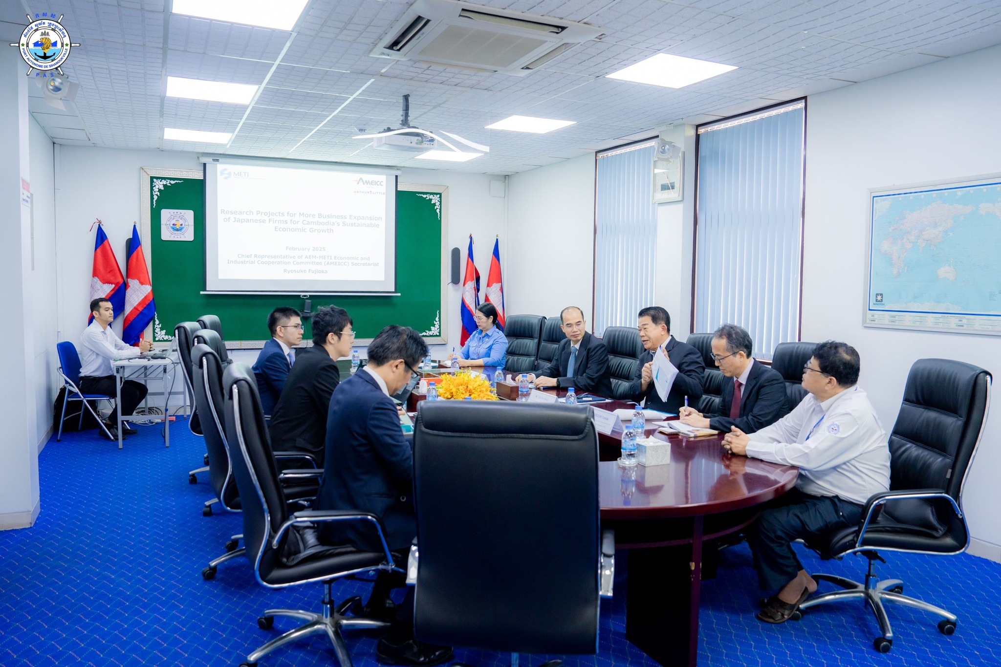 Sihanoukville Autonomous Port (PAS) : At 10:30 AM on Thursday, 20th February 2025, at the venue of PAS Meeting Room, His Excellency Lou Kim Chhun, Delegate of the Royal Government of Cambodia in charge as Chairman and CEO of Sihanoukville Autonomous Port and PAS Management, welcomed a courtesy visit of Mr. FUJIOKA Ryosuke, Chief Representative of AEM-METI Economic and Industrial Committee (AMEICC), to discuss the research projects for more business expansion of Japanese Firms for economic growth of Cambodia