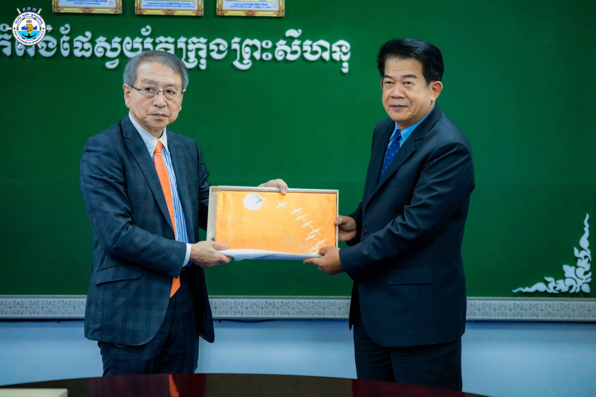 Sihanoukville Autonomous Port (PAS) : At 2 PM on Thursday, 6th March 2025, at the venue of PAS Meeting Room, His Excellency Lou Kim Chhun, Delegate of the Royal Government of Cambodia in charge as Chairman and CEO of Sihanoukville Autonomous Port and PAS Management, received a courtesy visit of and held a discussion meeting with Dr. Yutaka SUNOHARA, regarding PAS’s operations, potentials, progress and developments