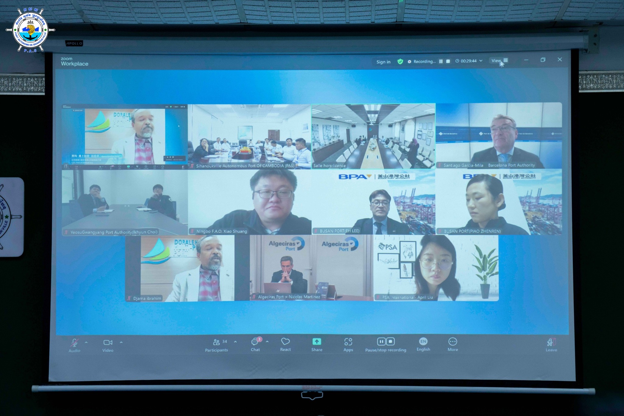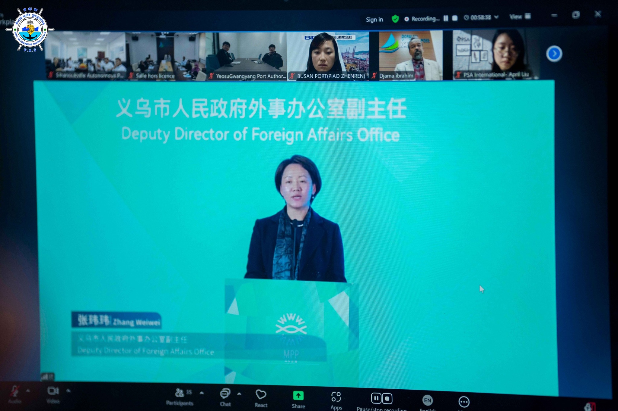 Sihanoukville Autonomous Port (PAS) : At 2PM on Thursday, 13th March 2025, at the venue of PAS Meeting Room, Mrs. Chey Sokunthea, Directress of PAS Marketing Department, and Mr. Sing Seno, Director of PAS Harbor Master and Security Department, Representatives of His Excellency Lou Kim Chhun, Delegate of the Royal Government of Cambodia in charge as Chairman and CEO of Sihanoukville Autonomous Port, along with PAS Working Group, attended a virtual meeting “Partnership Ports Salon”, organized by Zhejiang Seaport Group in Yiwu city, China