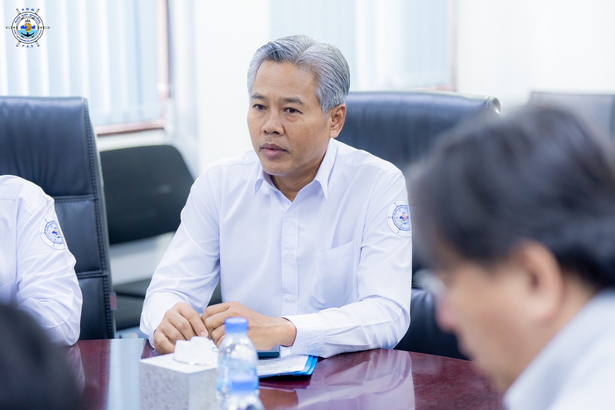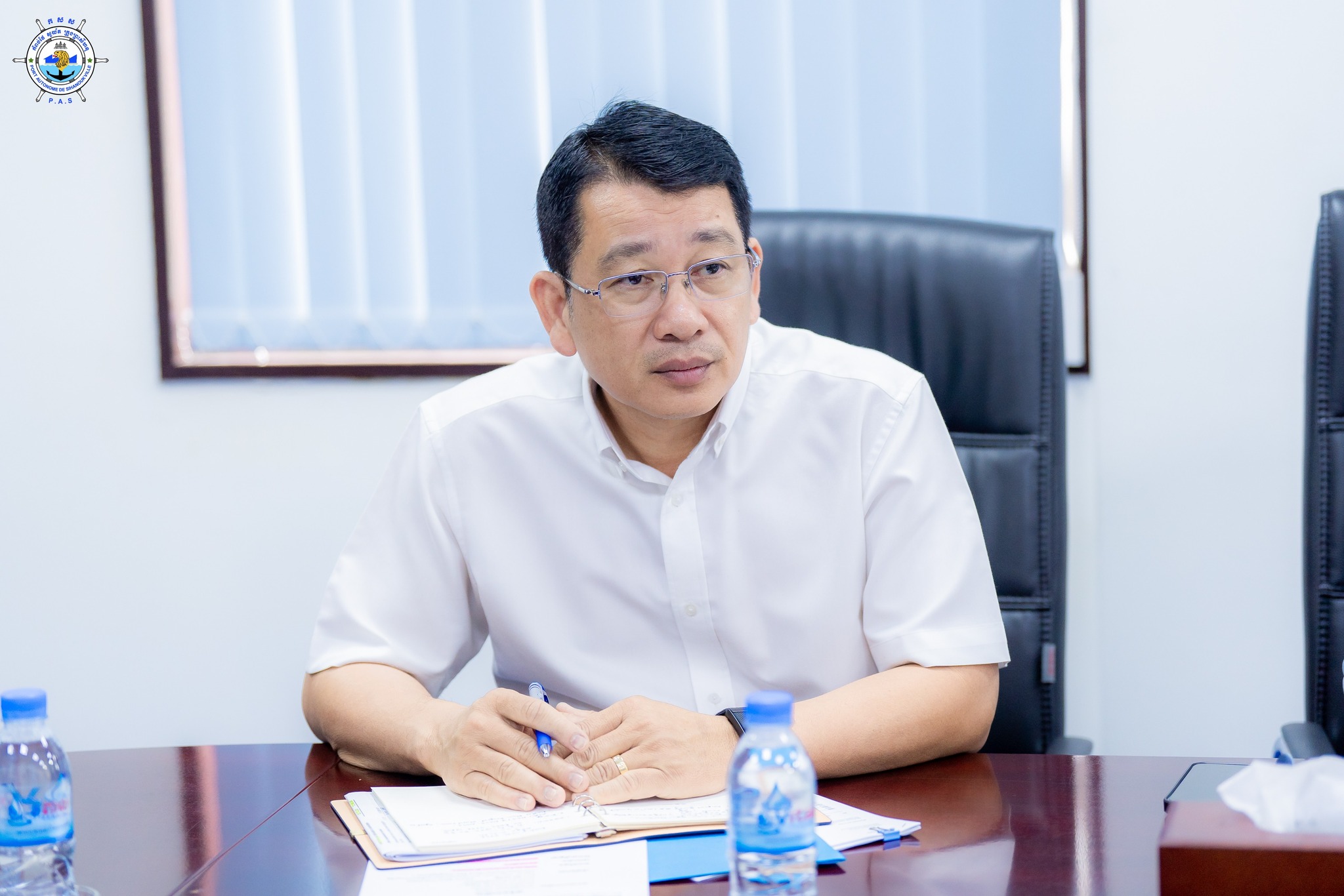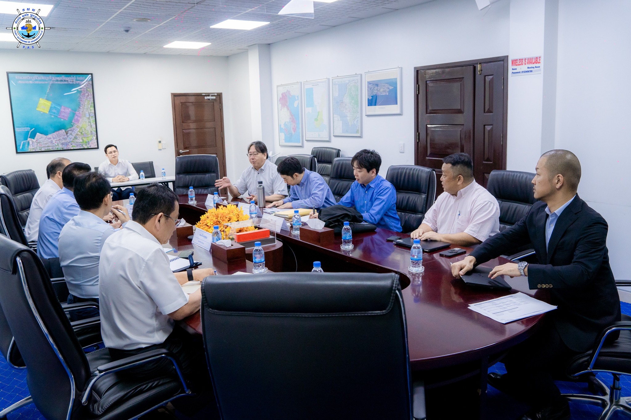 Sihanoukville Autonomous Port (PAS) : At 11 AM on Wednesday, 2nd April 2025, at the venue of PAS Meeting Room, His Excellency Lou Kim Chhun, Delegate of the Royal Government of Cambodia in charge as Chairman and CEO of Sihanoukville Autonomous Port and PAS Management, welcomed a visit of Mr. ANZO Hiroshi, JICA Cambodia Office and 02 Senior Officers from JICA Headquarter in Tokyo, in a purpose to learn project progress of the construction of New Container Terminal-Phase 1 and the developments of Sihanoukville Port Special Economic Zone (SPSEZ)