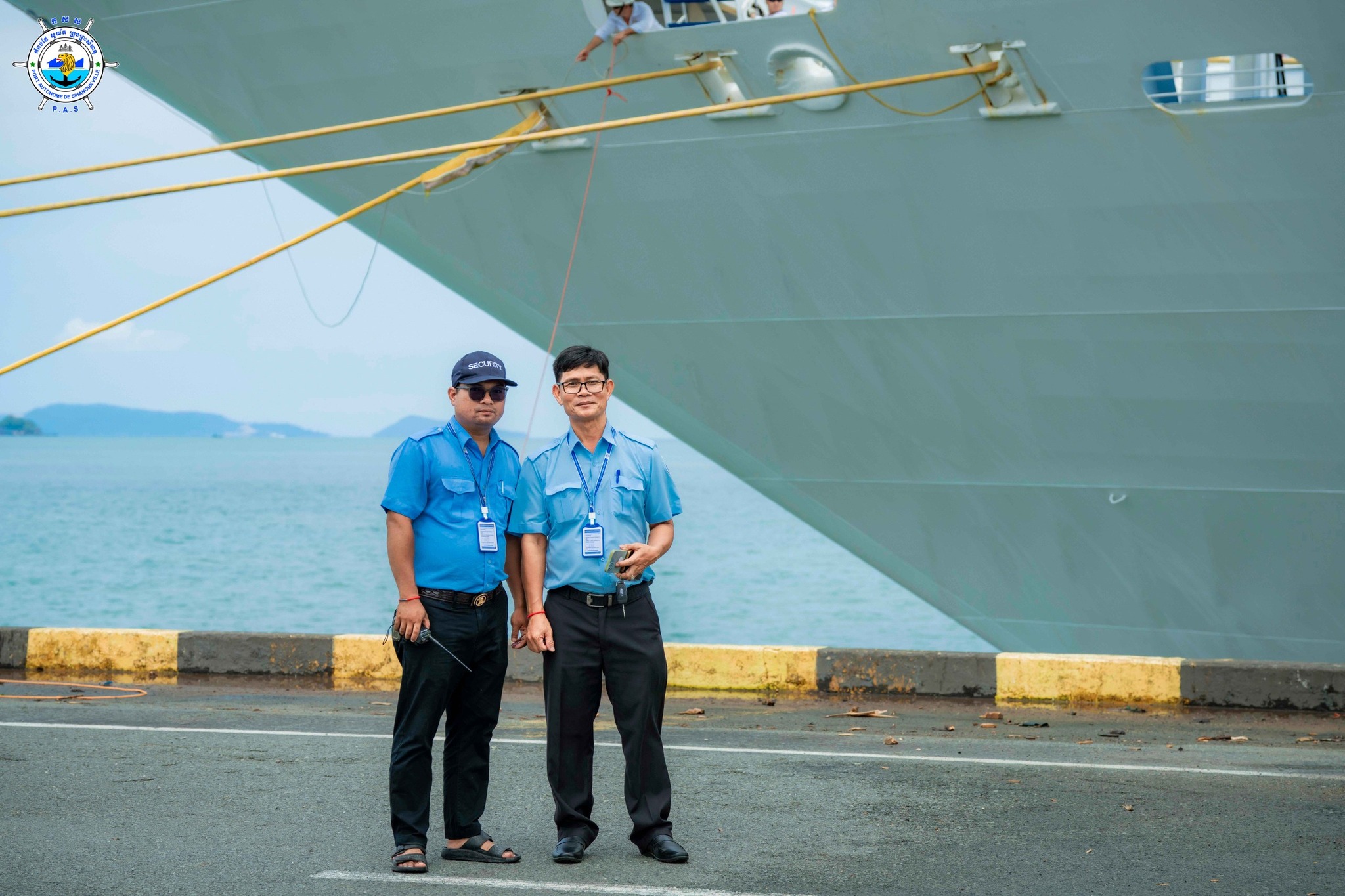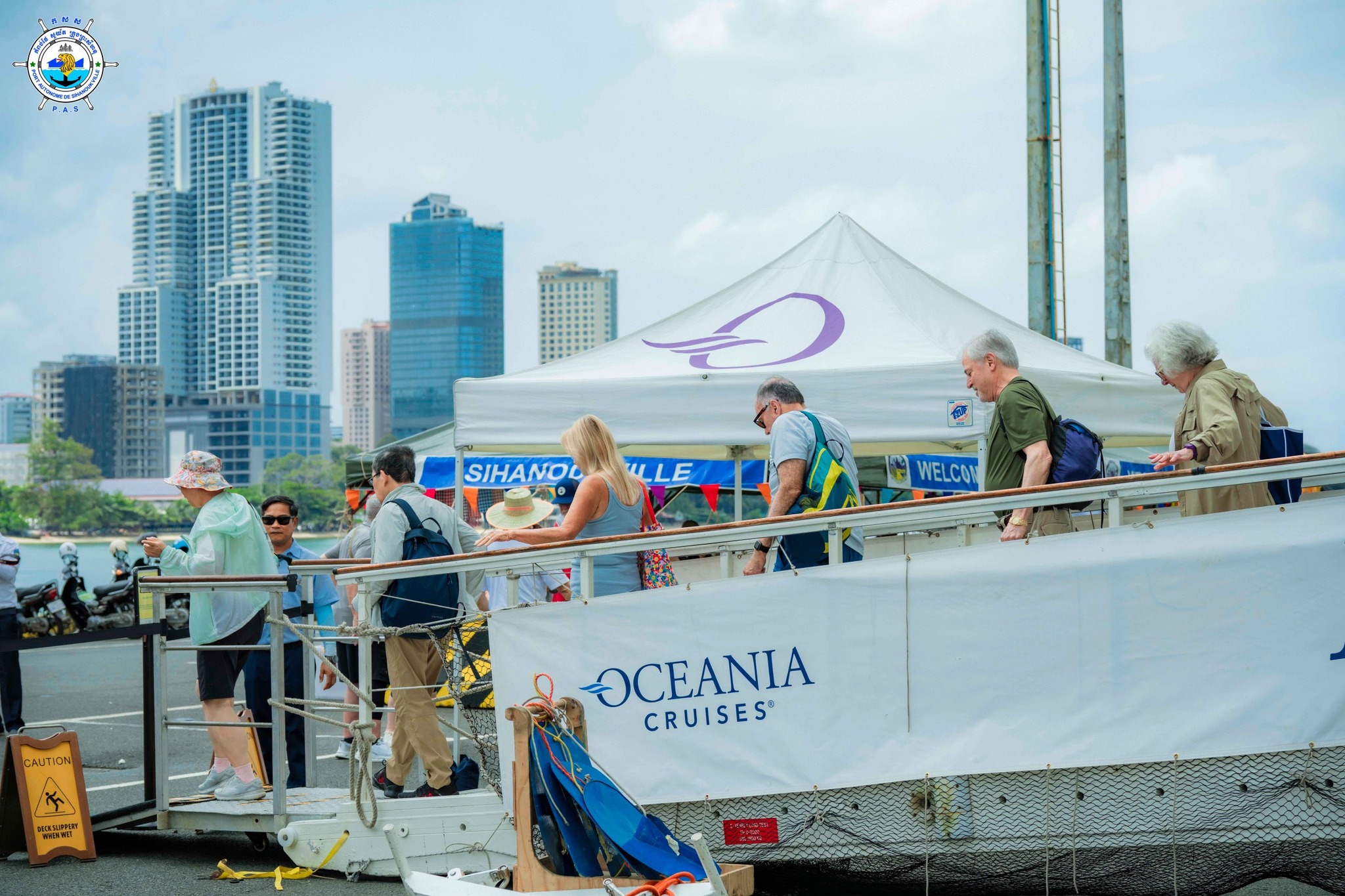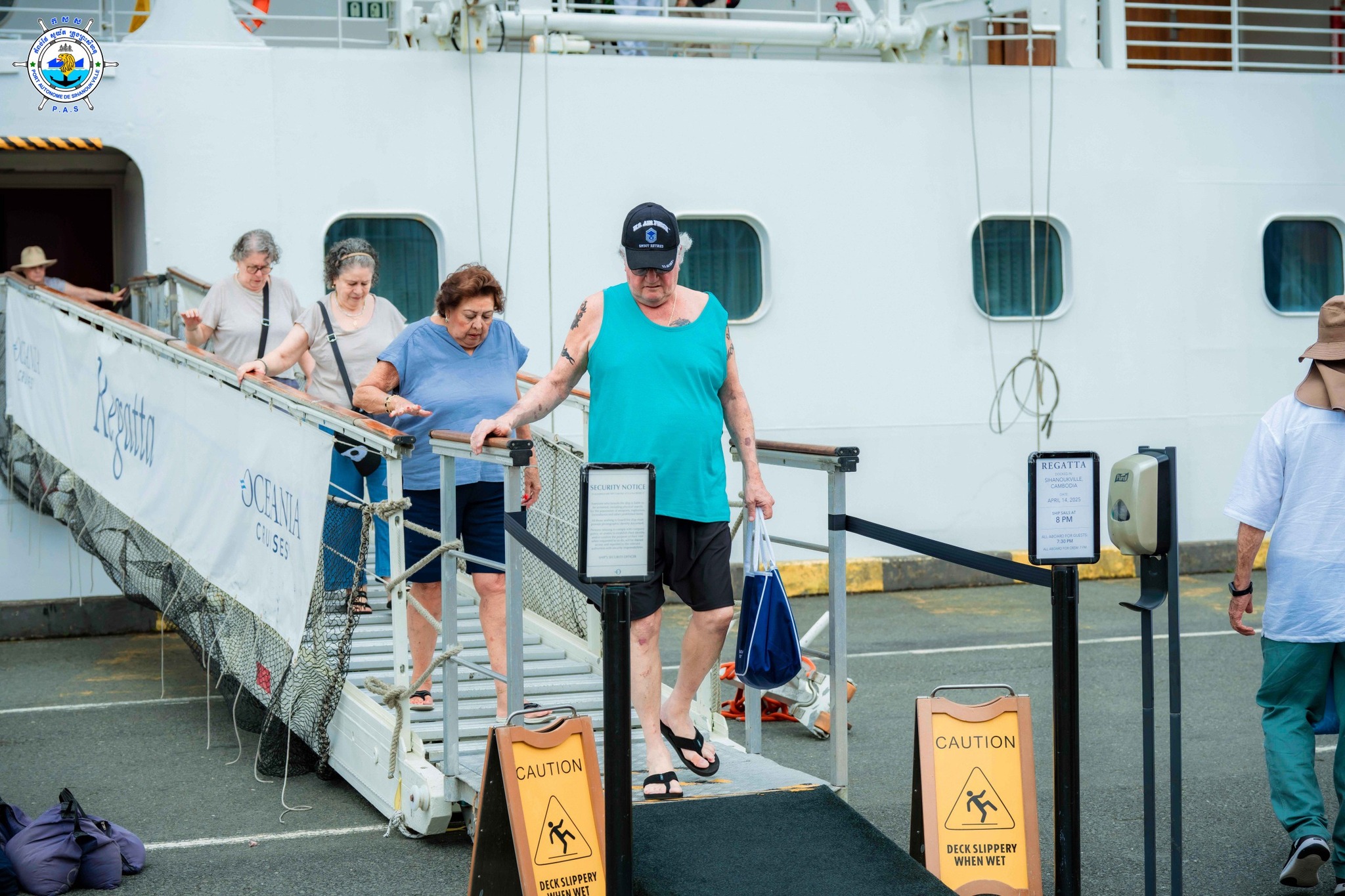 Sihanoukville Autonomous Port (PAS) At 10:35 on Monday, 14th April 2025, OCEANIA REGATTA cruise ship with nationality of MARSHALL ISLAND, length of 180.45 meters, width of 29.24 meters and depth of 6.00 meters, docked safely at PAS to visit Cambodia for One day after leaving Thailand. This cruise ship carries 400 crew members (88 females) with 35 nationalities and 614 passengers (331 females) with 25 nationalities. Most of passengers ‘nationalities are 420 USA and this cruise ship is scheduled to depart for Vietnam at 20:00 on the same date