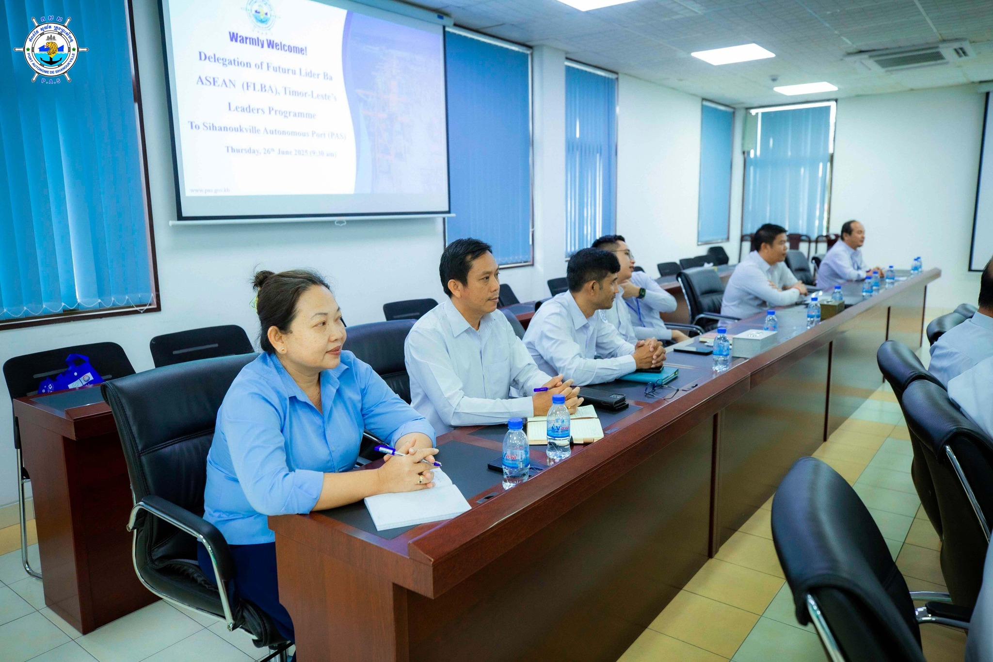 Sihanoukville Autonomous Port (PAS): At 9:30 AM on Thursday, 26th June 2025, at the venue of PAS Conference Room, His Excellency Lou Kim Chhun, Delegate of the Royal Government of Cambodia in charge as Chairman and CEO of Sihanoukville Autonomous Port, and PAS Management, welcomed a visit of 11 delegates of the Futuru Lider ba ASEAN (FLBA) Working Group of the Democratic Republic of Timor-Leste, in purpose to learn about PAS’s operations, potentials, progress, and developments.