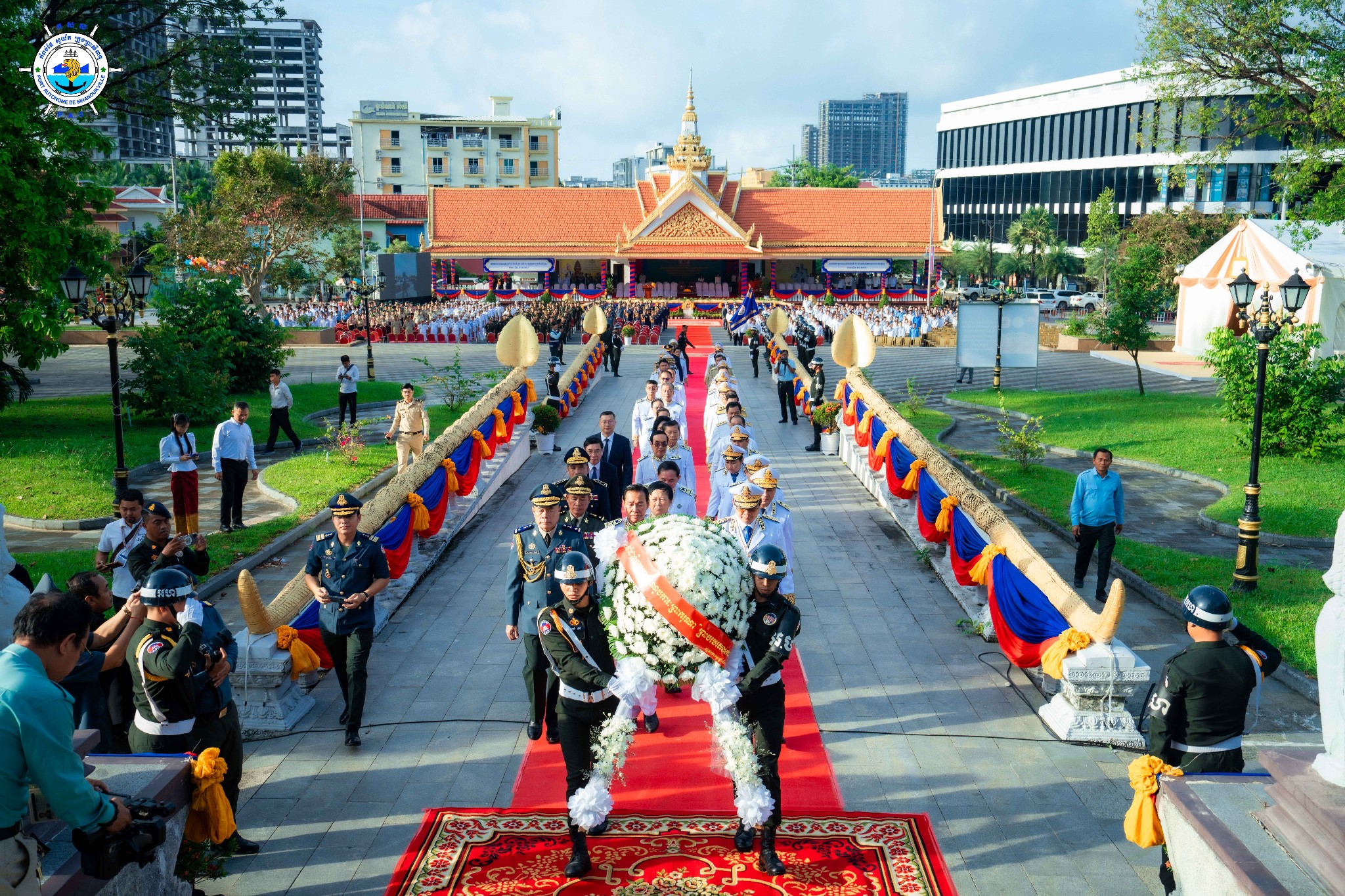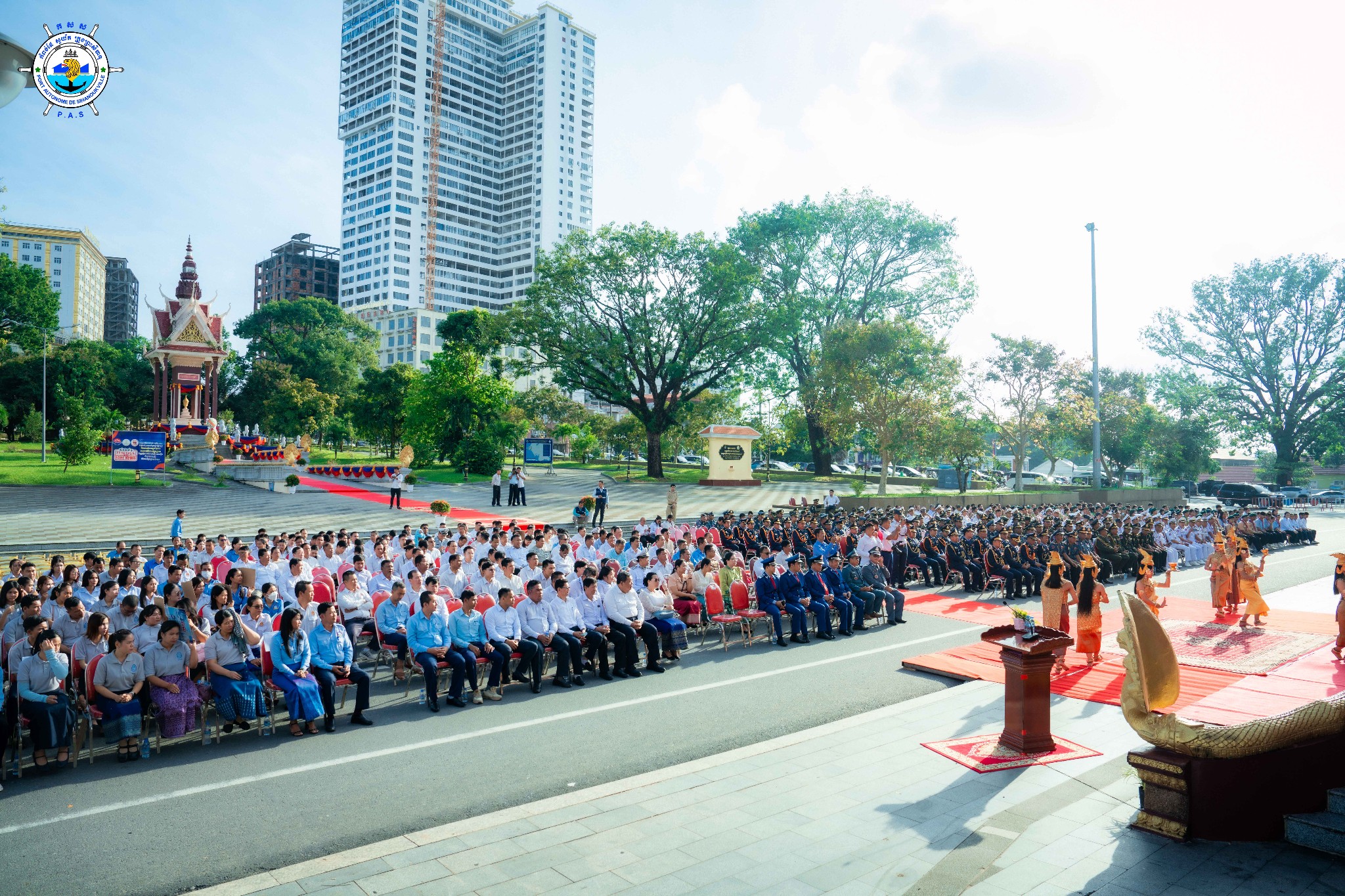 Preah Sihanouk Province : On Sunday, 9th November 2025, Mr. Thong Viro, Deputy Director-General in charge of Administration-Management, and Mr. Ty Sakun, Deputy Director-General in charge of Technical, Representatives of His Excellency Lou Kim Chhun, Delegate of Royal Government of Cambodia in charge as Chairman and CEO of Sihanoukville Autonomous Port (PAS) and PAS Working Group, attended the wreath-laying ceremony on the occasion of the 72nd Anniversary of National Independence Day 9th November and the Anniversary of Royal Cambodian Armed Forces (RCAF) Establishment of Year 2025, and this ceremony occurred at the Independence Monument in Preah Sihanouk province, presided over by His Excellency Vong Phanath, Chairman of the Preah Sihanouk Provincial Council, and His Excellency Mang Sineth, Governor of Preah Sihanouk Provincial Municipality, and attended by many departments and entities in Preah Sihanouk province as well