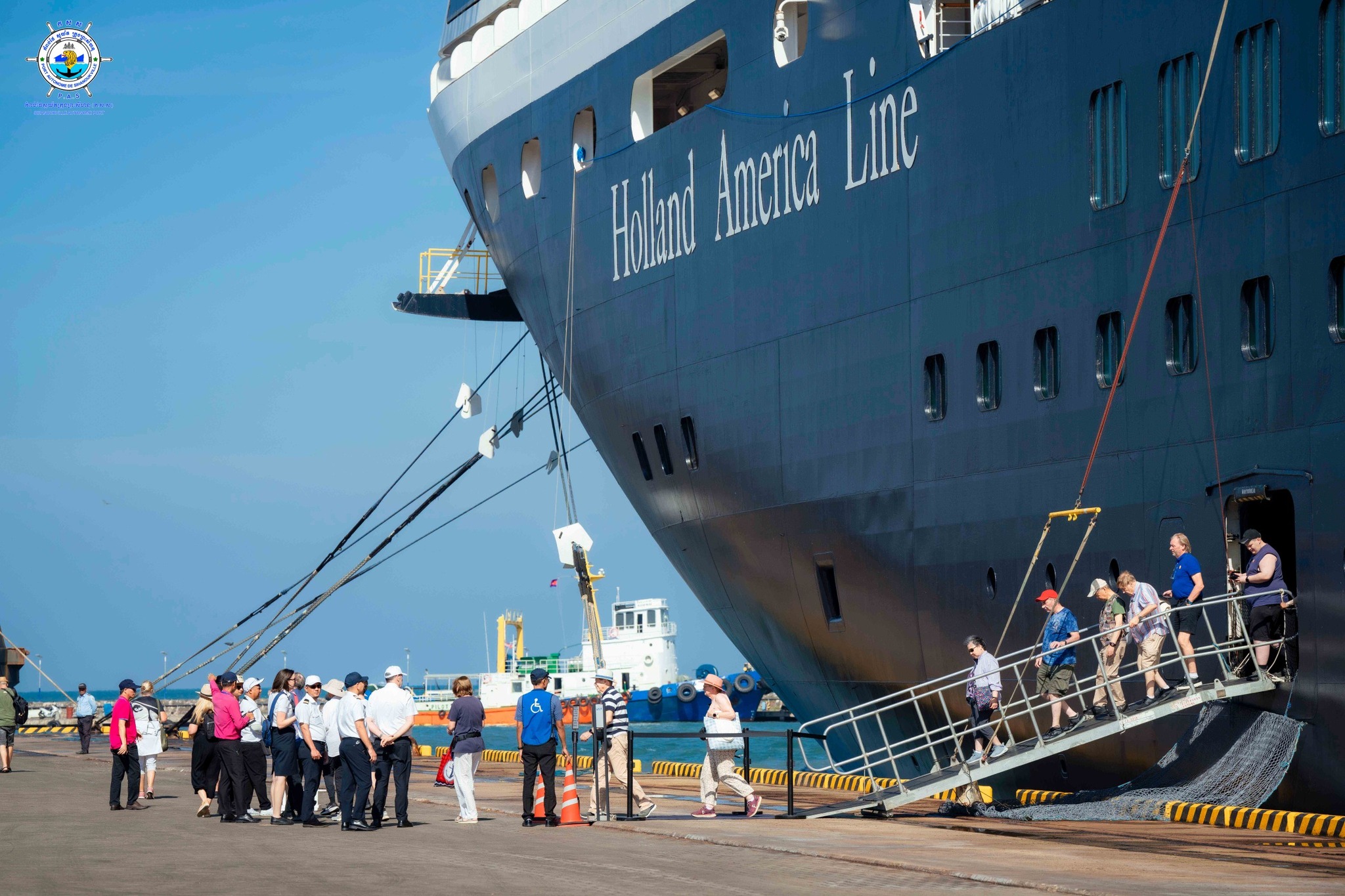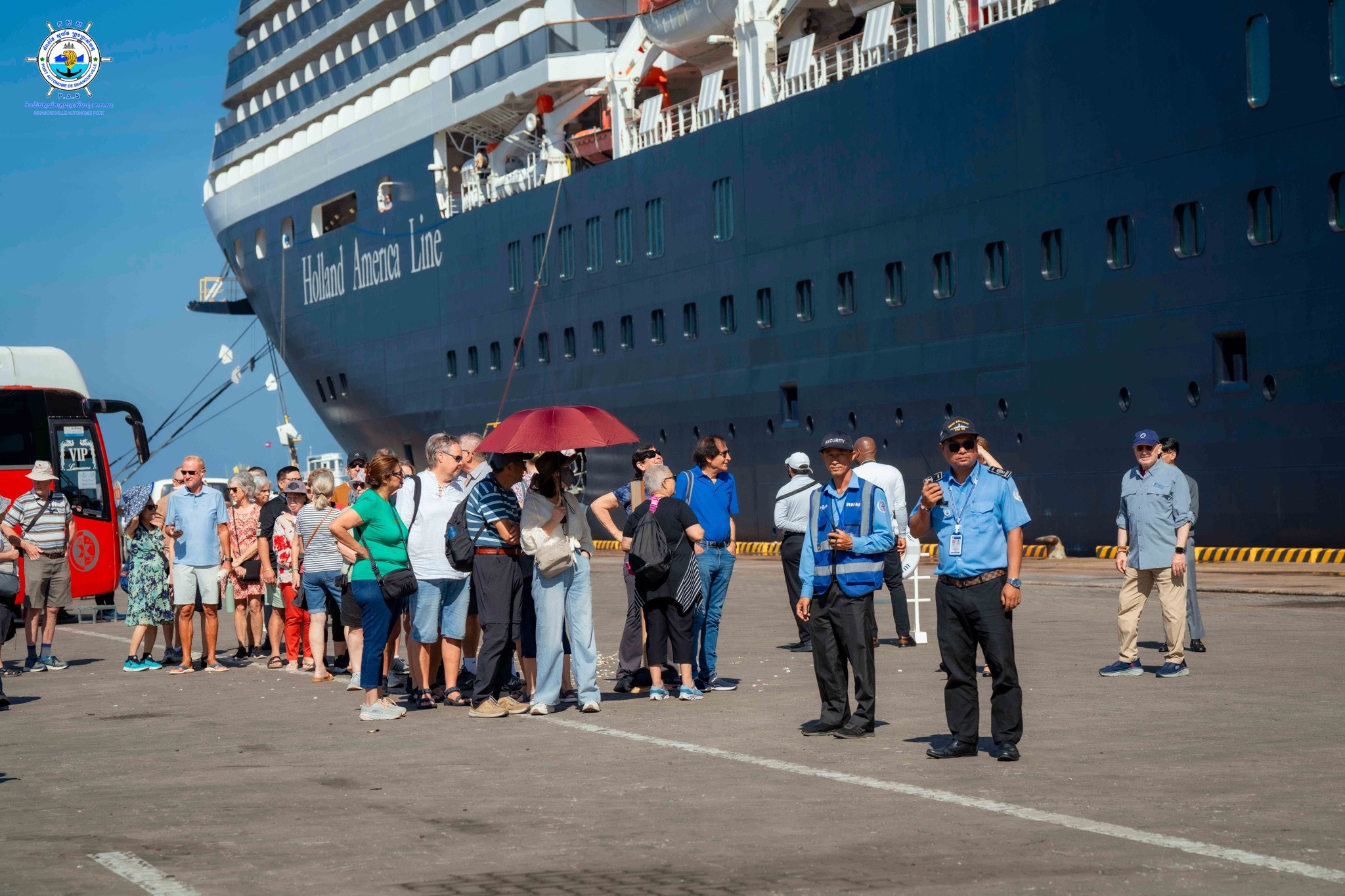 Sihanoukville Autonomous Port (PAS) At 9:05 on Thursday, 27th November 2025, WESTERDAM cruise ship with nationality of HOLLAND, length of 285.22 meters, width of 32.20 meters and depth of 8.10 meters, docked safely at PAS to visit Cambodia for one-day after leaving Thailand. This cruise ship carries 800 crew members (160 females) with 38 nationalities and 1,896 passengers (1,022 females) with 42 nationalities. Most of passengers ‘nationalities are 623 USA and 539 Australia and this cruise ship is scheduled to depart for Malaysia at 19:00 on the same date