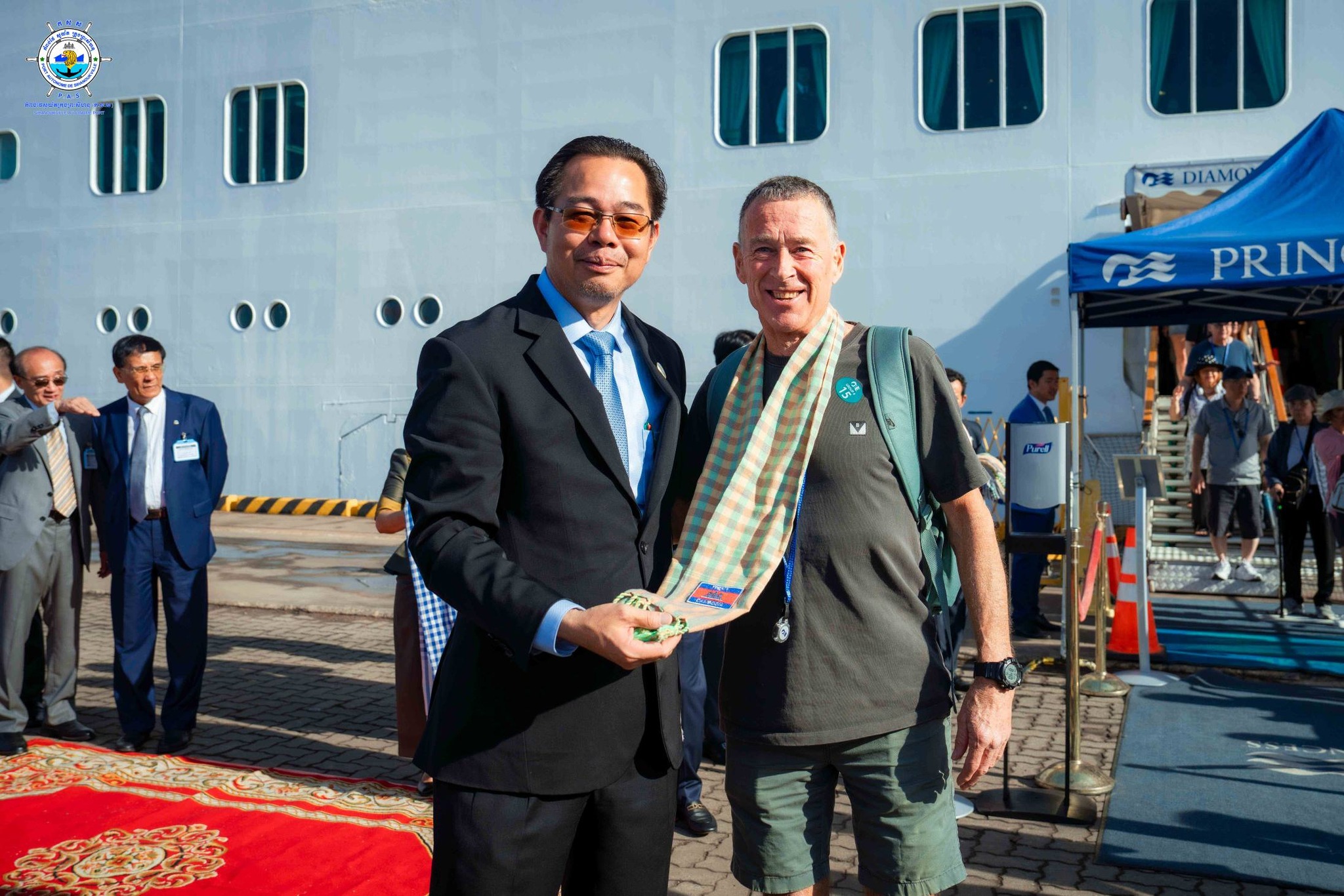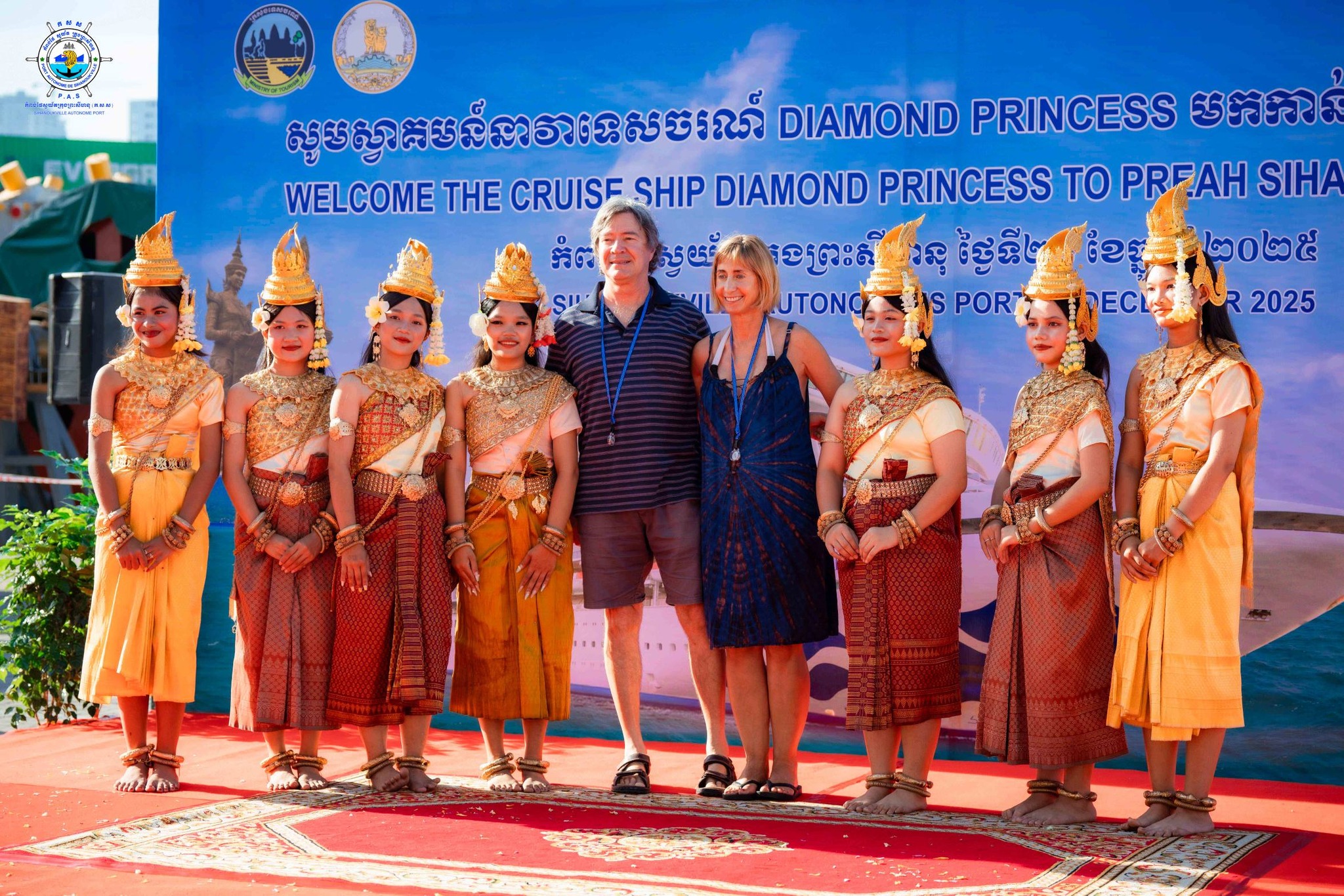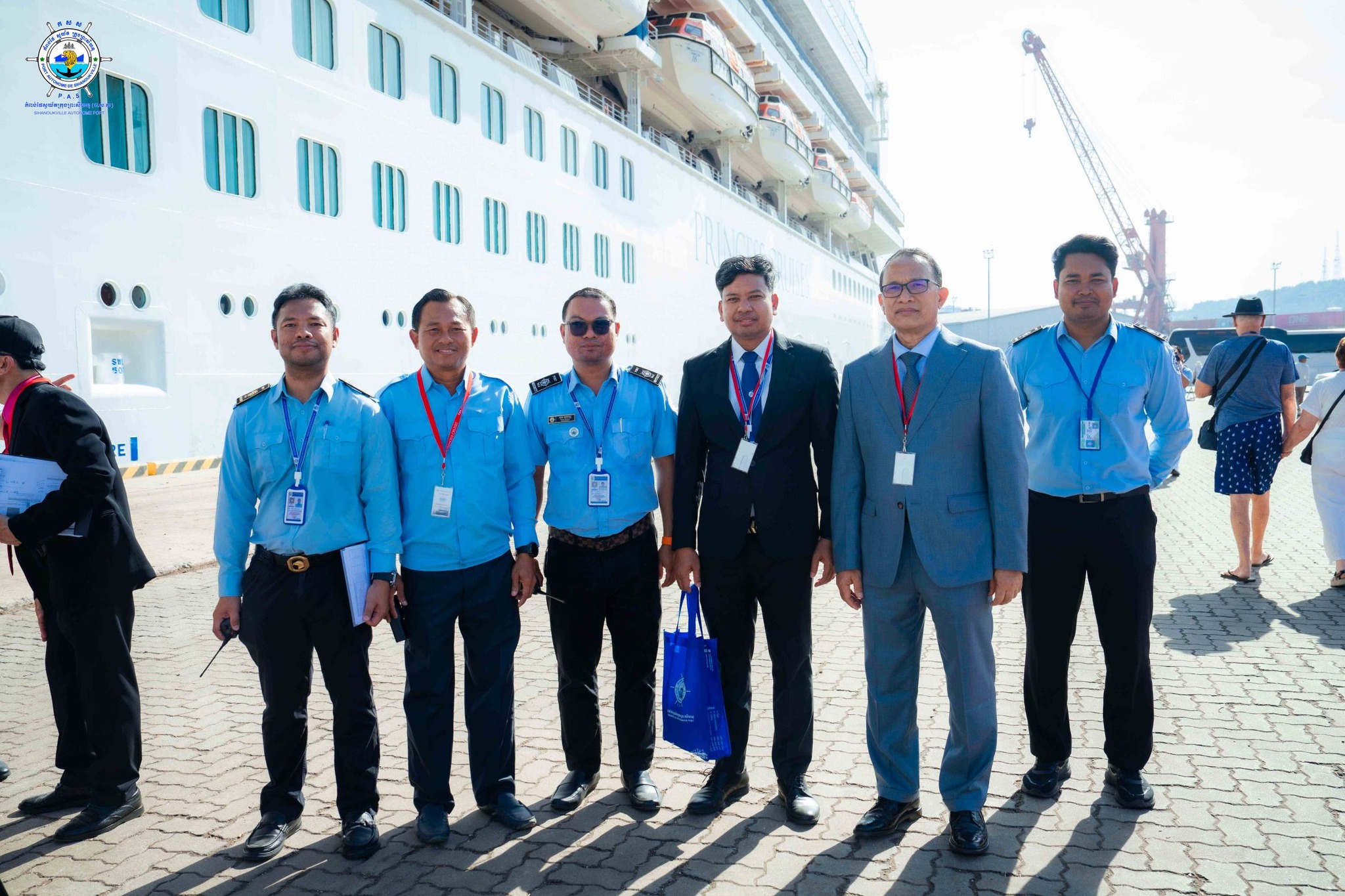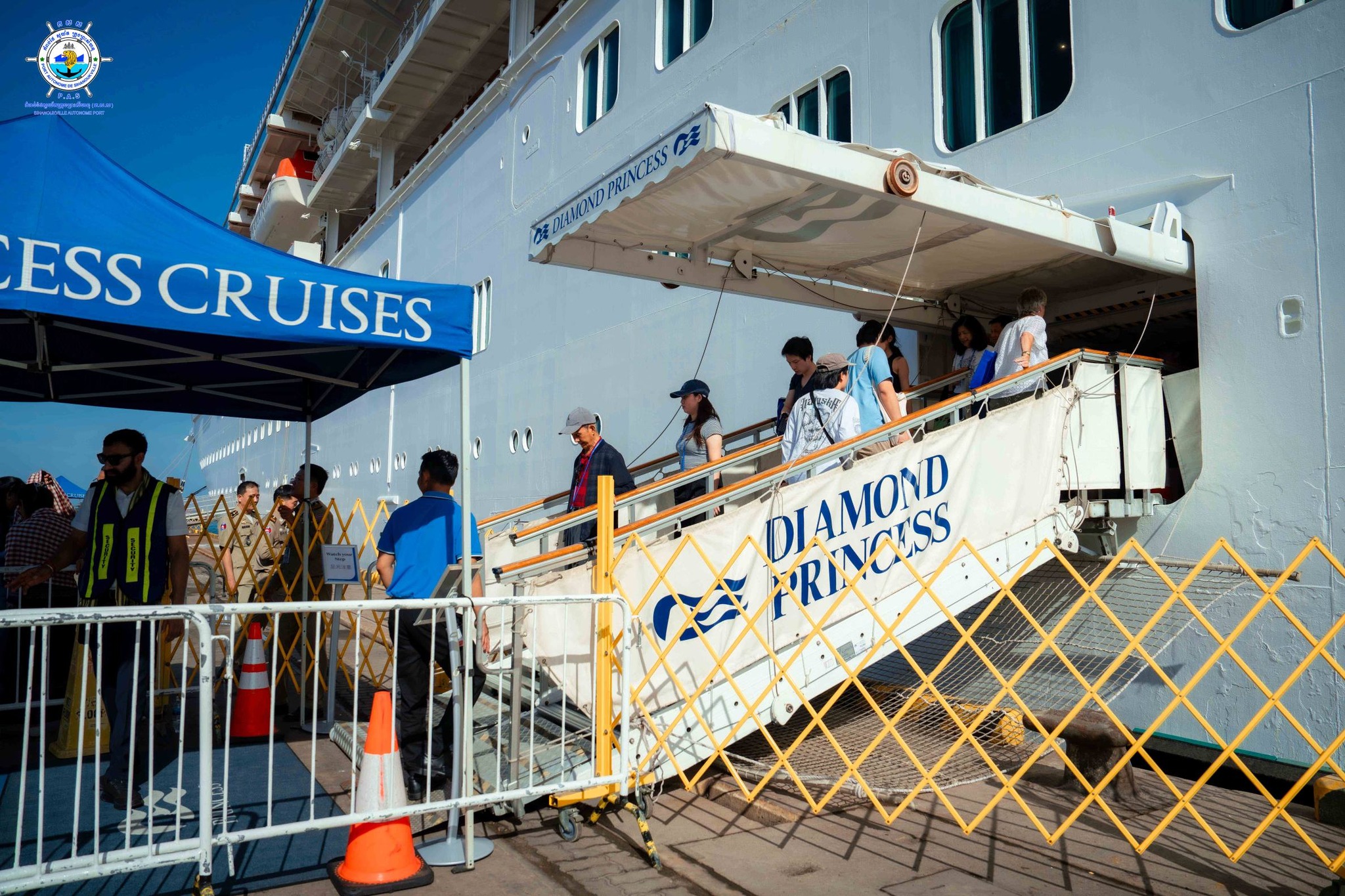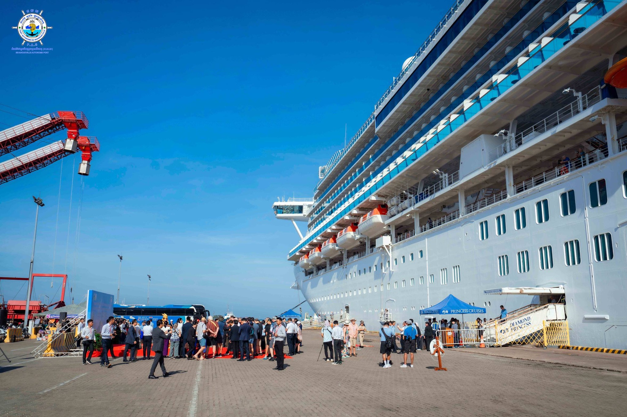 Sihanoukville Autonomous Port (PAS) At 7:00 on Monday, 29th December 2025, DIAMOND PRINCESS cruise ship with nationality of BERMUDA, length of 288.33 meters, width of 37.50 meters and depth of 8.50 meters, docked safely at PAS to visit Cambodia for one-day after leaving Vietnam. This cruise ship carries 1,059 crew members (245 females) with 59 nationalities and 2,850 passengers (1,566 females) with 52 nationalities. Most of passengers ‘nationalities are 797 USA and 824 Australia and this cruise ship is scheduled to depart for Thailand at 16:00 on the same date