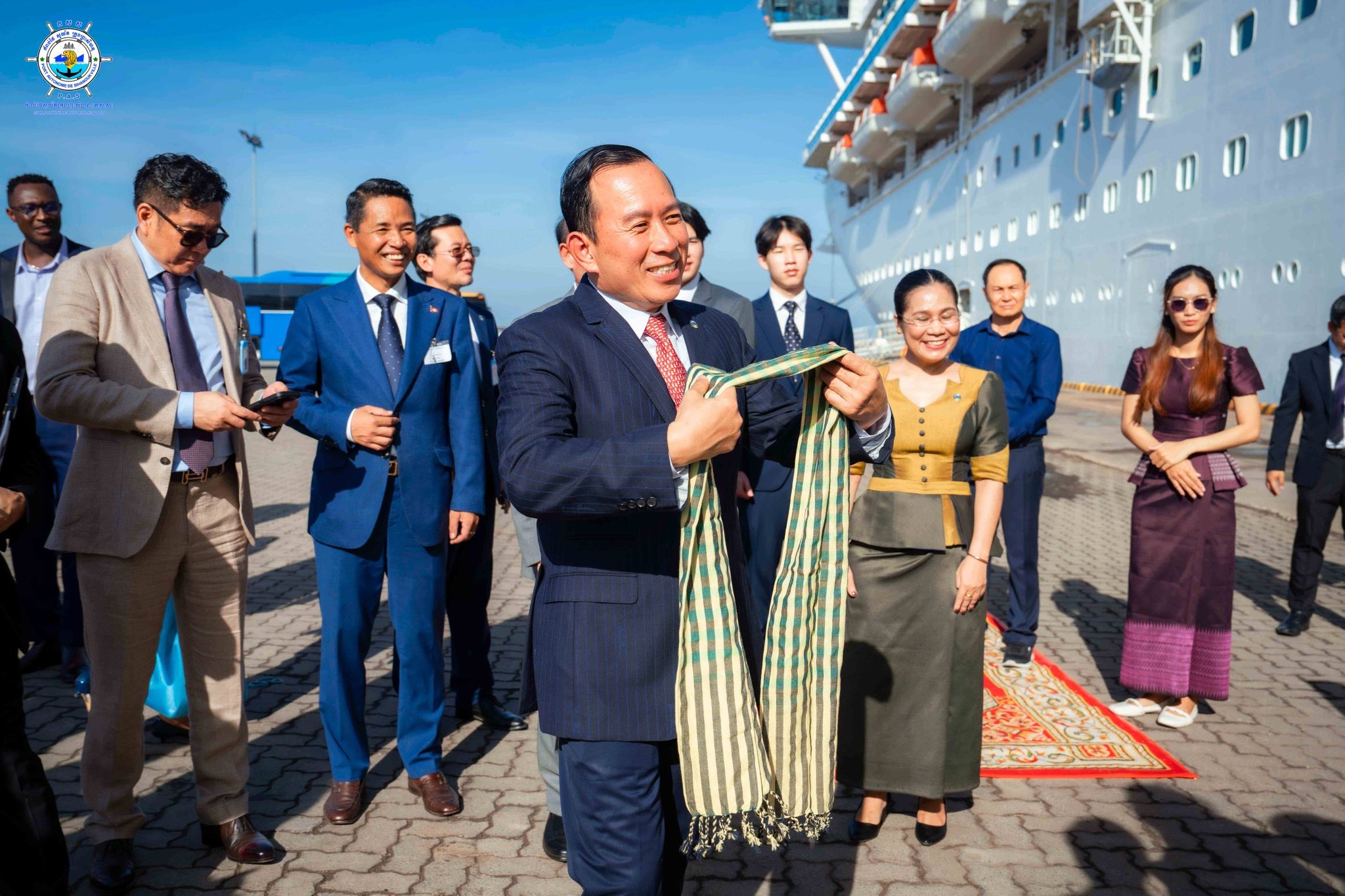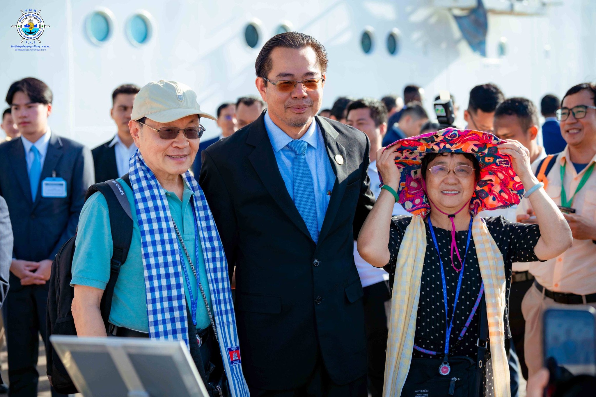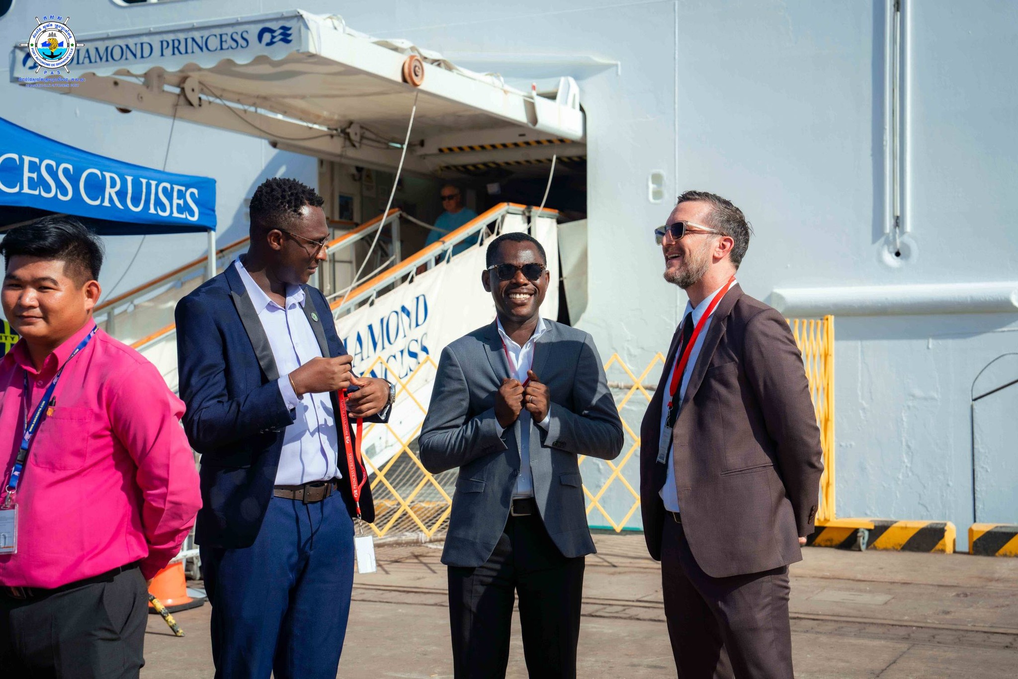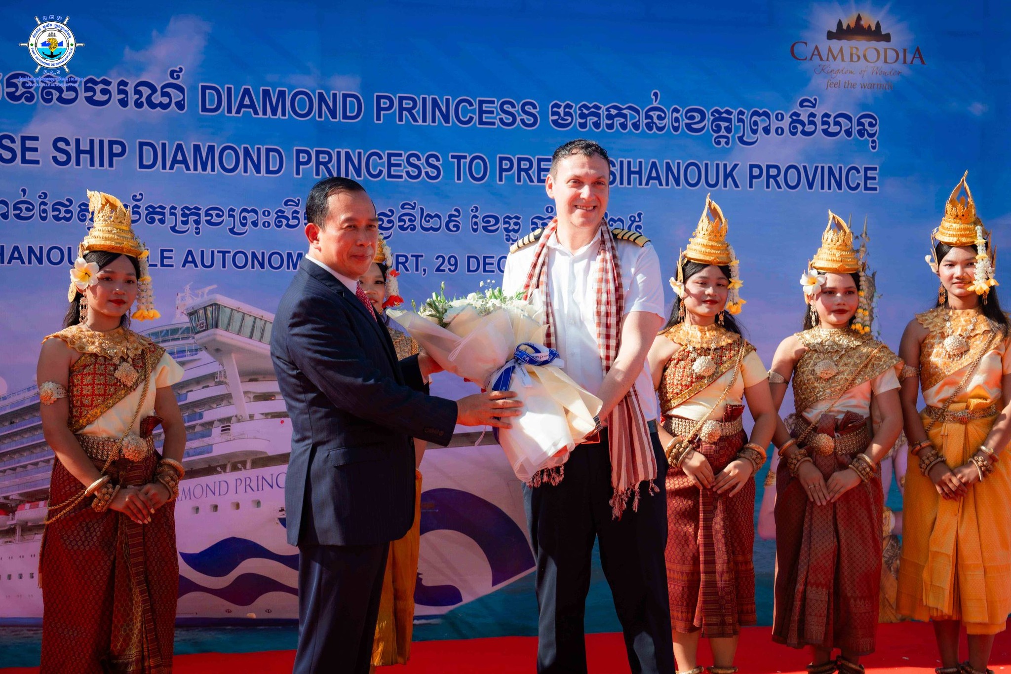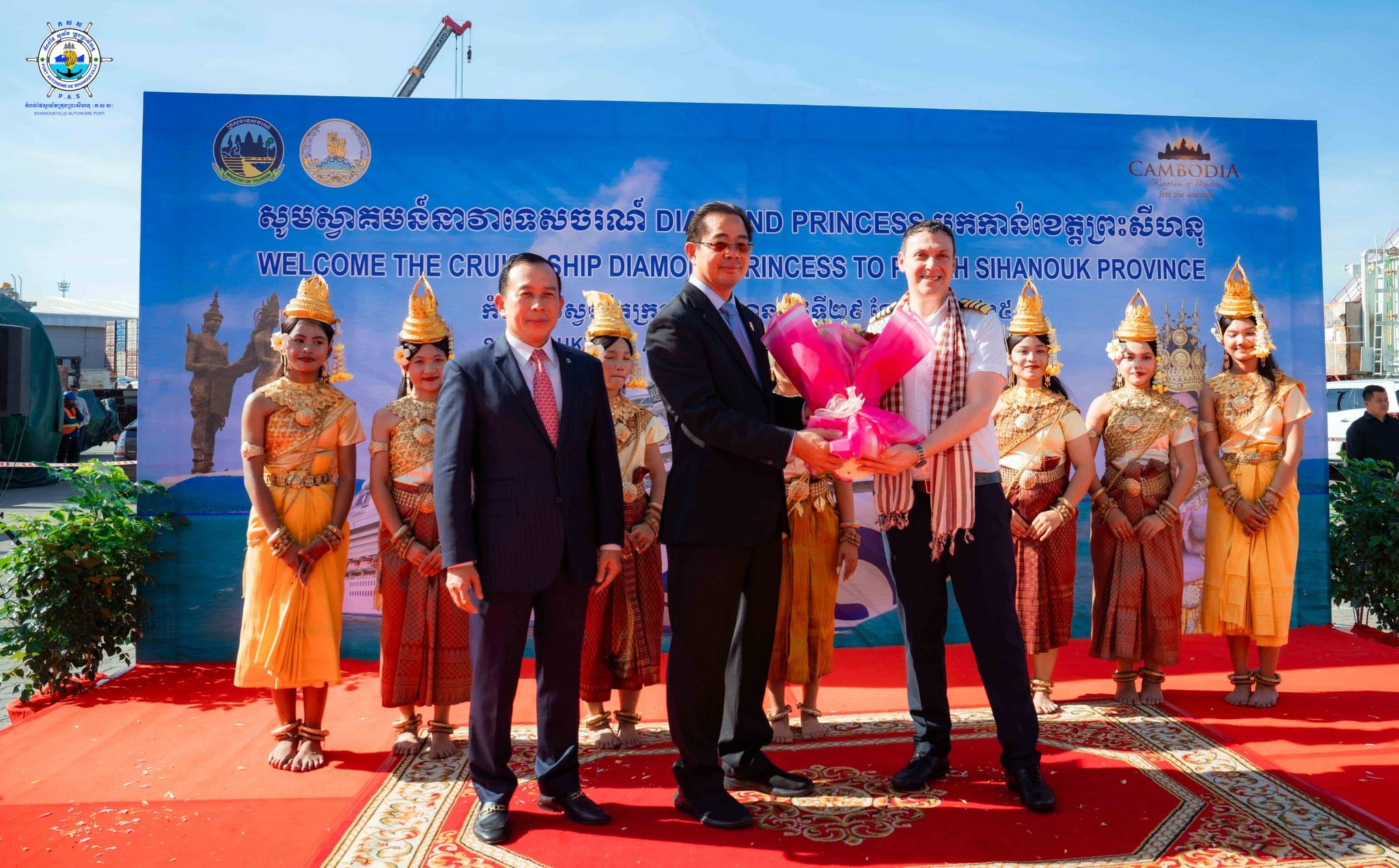 Sihanoukville Autonomous Port (PAS) At 7:00 on Monday, 29th December 2025, DIAMOND PRINCESS cruise ship with nationality of BERMUDA, length of 288.33 meters, width of 37.50 meters and depth of 8.50 meters, docked safely at PAS to visit Cambodia for one-day after leaving Vietnam. This cruise ship carries 1,059 crew members (245 females) with 59 nationalities and 2,850 passengers (1,566 females) with 52 nationalities. Most of passengers ‘nationalities are 797 USA and 824 Australia and this cruise ship is scheduled to depart for Thailand at 16:00 on the same date