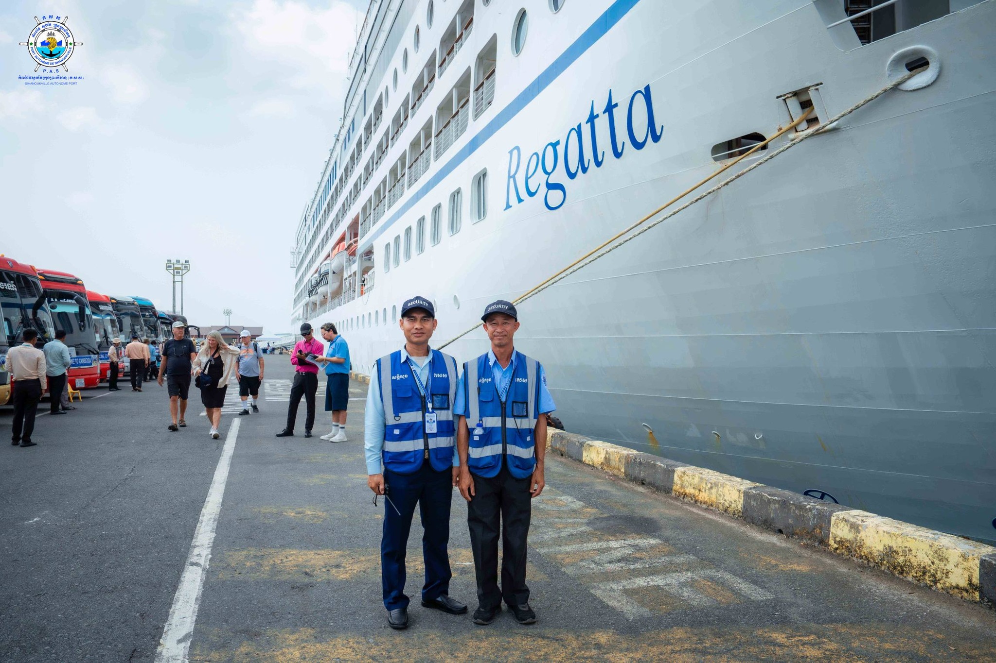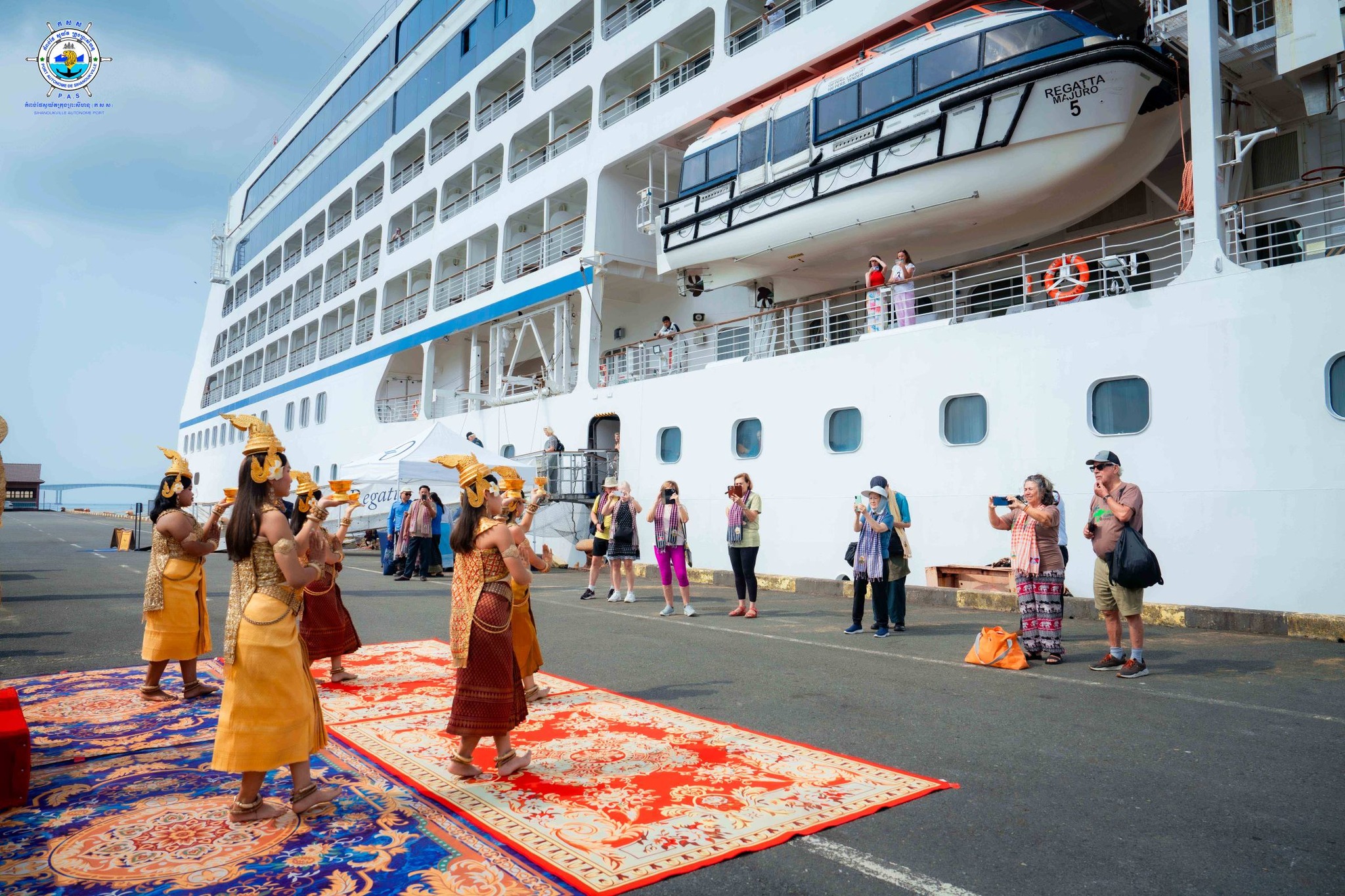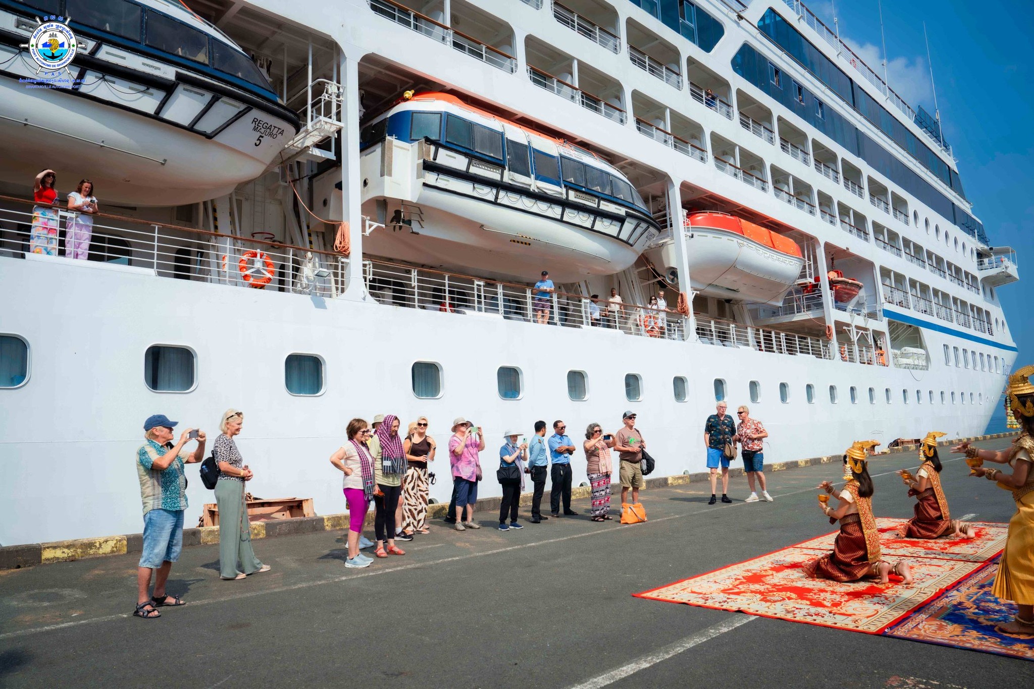 Sihanoukville Autonomous Port (PAS) At 9:40 on Saturday, 31th January 2026, REGATA cruise ship with nationality of MARSHALL ISLAND, length of 180.45 meters, width of 25.46 meters and depth of 6.00 meters, docked safely at PAS to visit Cambodia for one-day after leaving Thailand. This cruise ship carries 396 crew members (106 females) with 43 nationalities and 641 passengers (335 females) with 23 nationalities. Most of passengers ‘nationalities are 341 USA and 93 Canada and this cruise ship is scheduled to depart for Vietnam at 19:00 on the same date