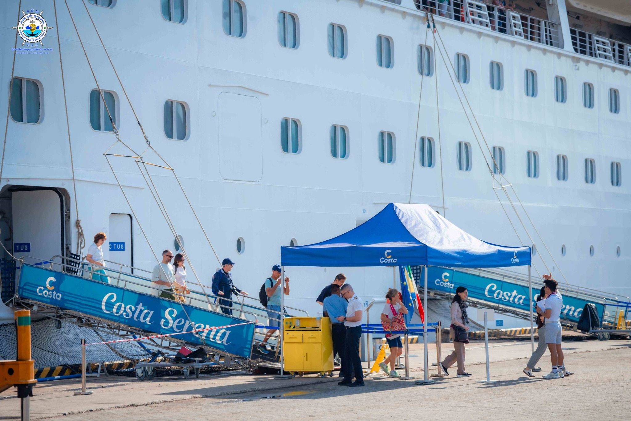 Sihanoukville Autonomous Port (PAS) At 7:00 on Wednesday, 4th February 2026, COSIA SERENA cruise ship with nationality of ITALY, length of 290.20 meters, width of 35.50 meters and depth of 8.00 meters, docked safely at PAS to visit Cambodia for one-day after leaving Vietnam. This cruise ship carries 1,030 crew members (194 females) with 35 nationalities and 2,890 passengers (1,640 females) with 59 nationalities. Most of passengers ‘nationalities are 794 Italy, 251 German and 247 French and this cruise ship is scheduled to depart for Thailand at 16:00 on the same date