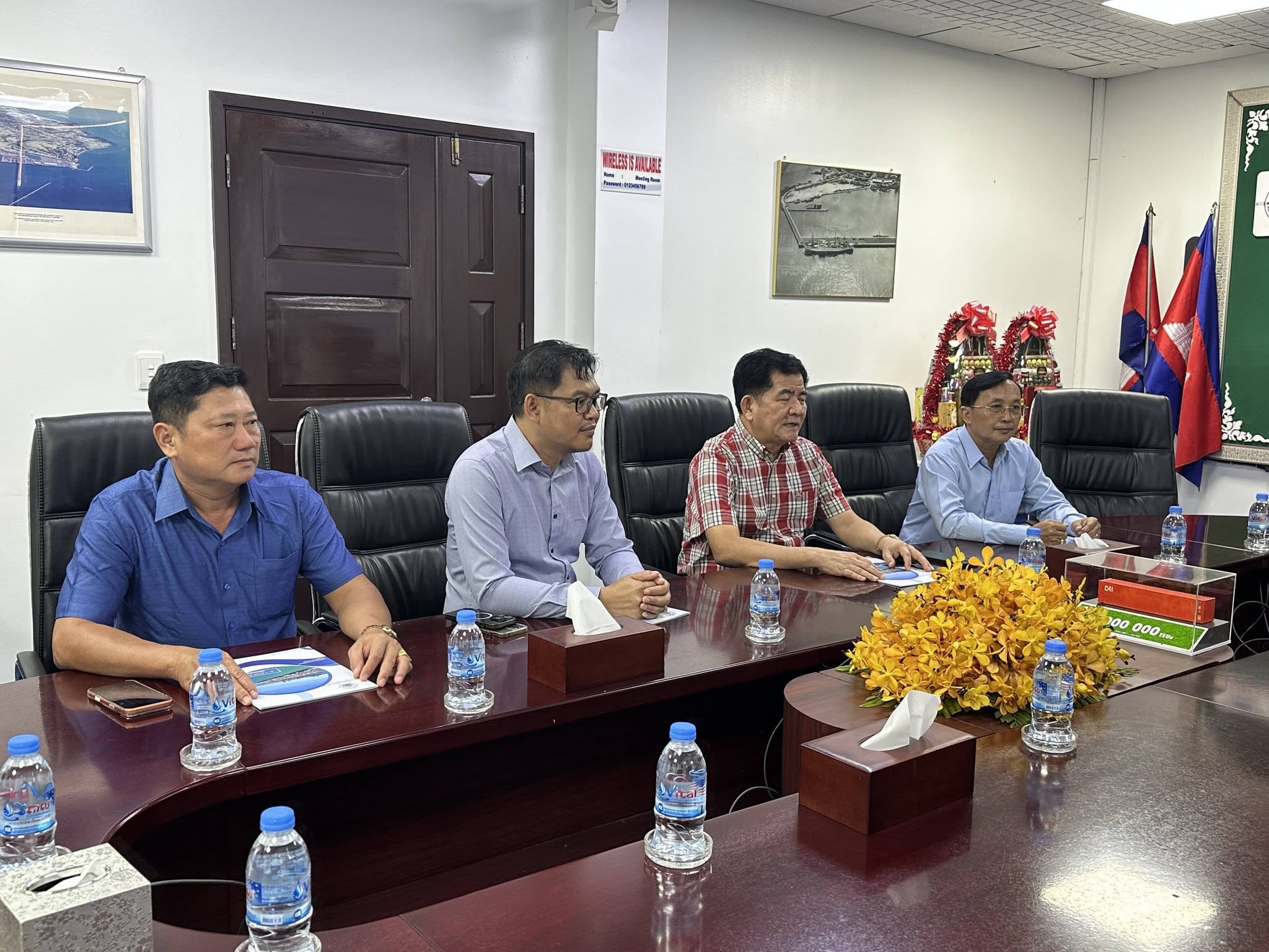 Sihanoukville Autonomous Port (PAS) : On Thursday, 12th February 2026, at the venue of PAS Meeting Room, His Excellency Lou Kim Chhun, Delegate of the Royal Government of Cambodia in charge as Chairman and CEO of Sihanoukville Autonomous Port and PAS Management, received a courtesy visit of and held a discussion meeting with Mr. Oknha. Tan Tat, President of Preah Sihanouk Chamber of Commerce, Member of Cambodian Oknha Association, and President of Teng Lay Import and Export and Transport, regarding business cooperation in the transport sector. Mr. Oknha. Tan Tat, delivered a wish to His Excellency Lou Kim Chhun, Delegate of the Royal Government of Cambodia in charge as Chairman and CEO of Sihanoukville Autonomous Port for the upcoming Chinese-Vietnamese New Year