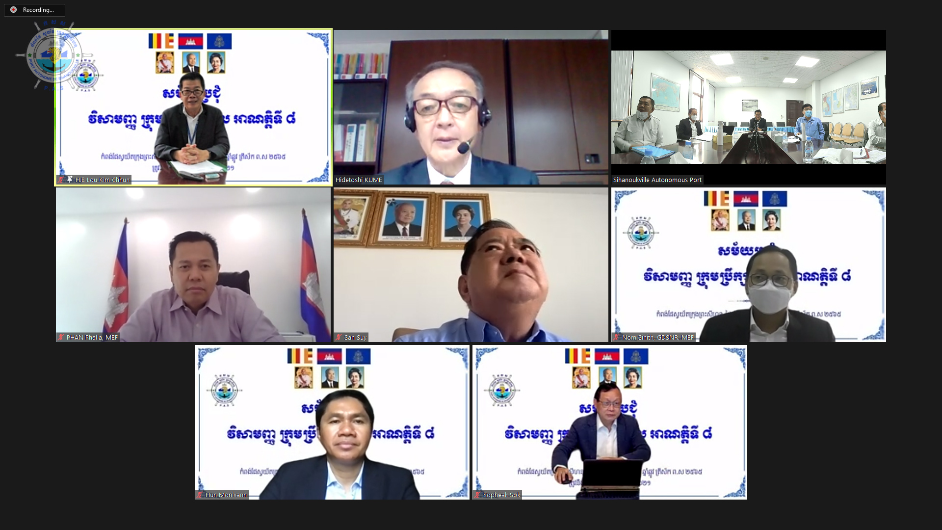ការបើកកិច្ចប្រជុំវិសាមញ្ញ ក្រុមប្រឹក្សាភិបាល អាណត្តិទី ៨ នៅសាលប្រជុំកំពង់ផែស្វយ័តក្រុងព្រះសីហនុ និងតាមប្រព័ន្ធវីដេអូពីចំងាយ (Online Meeting)