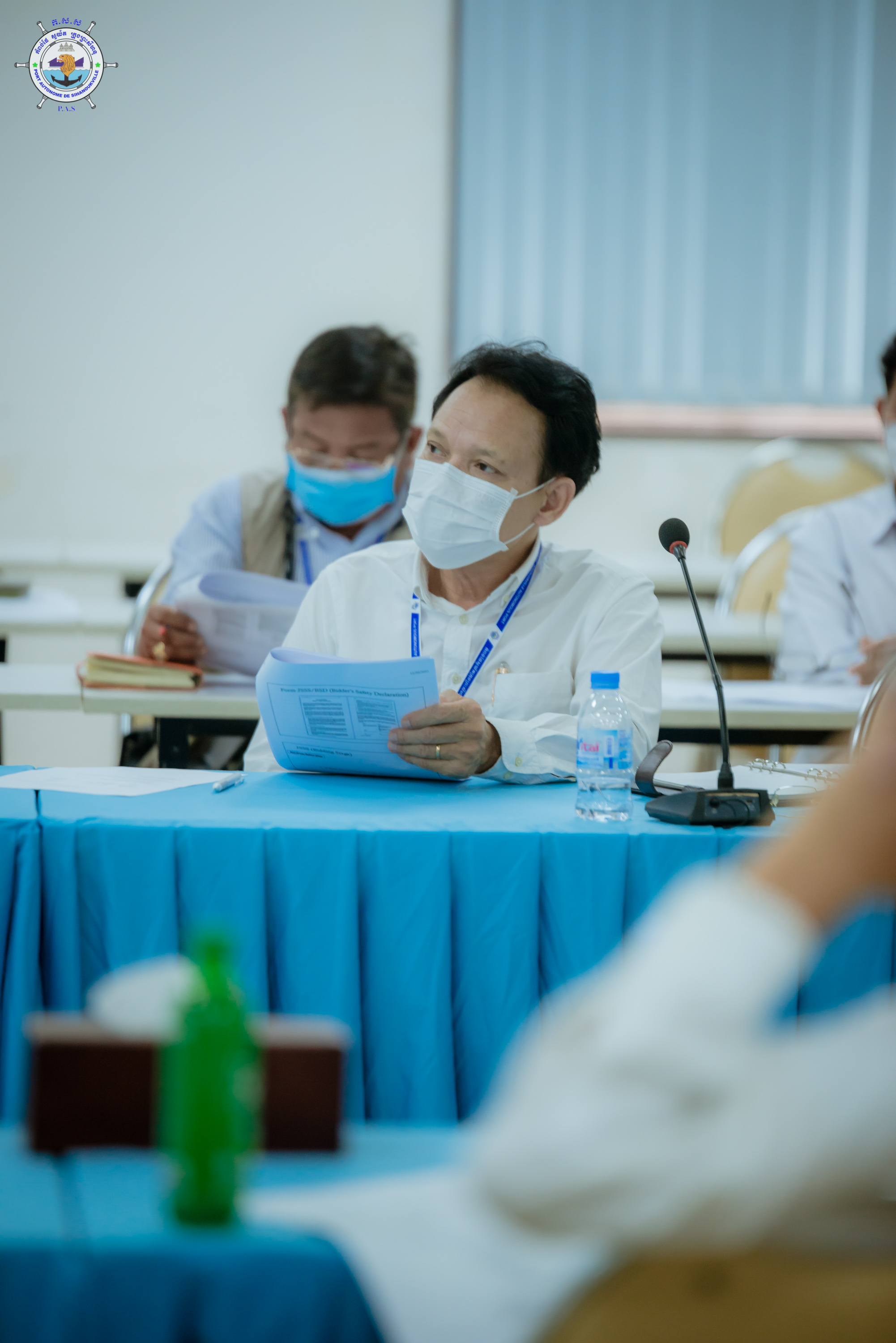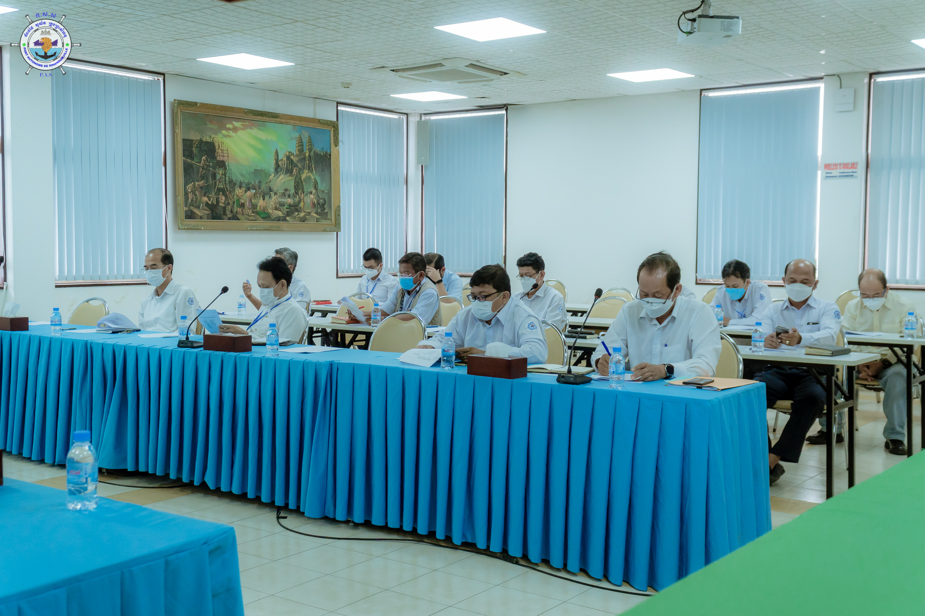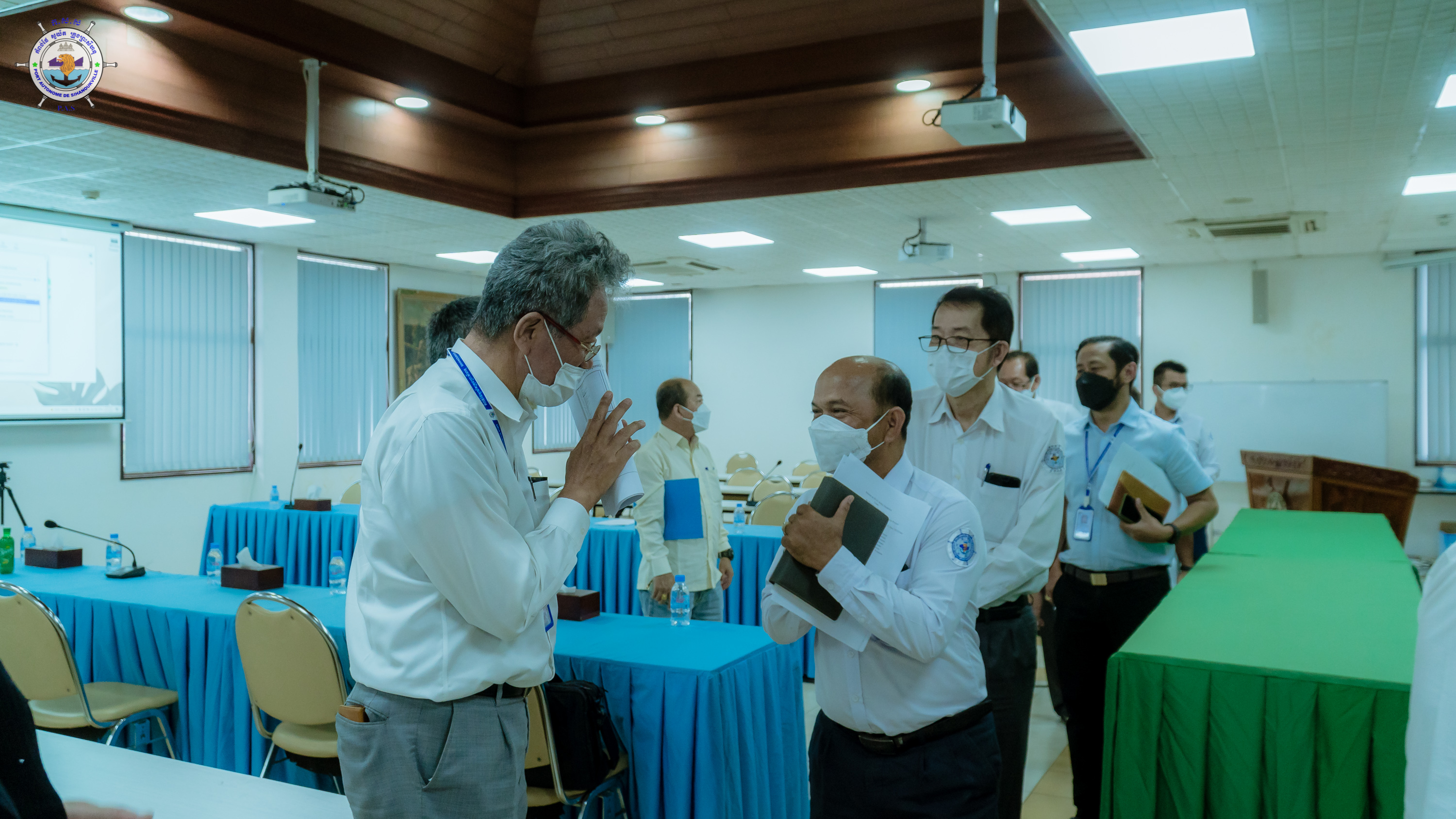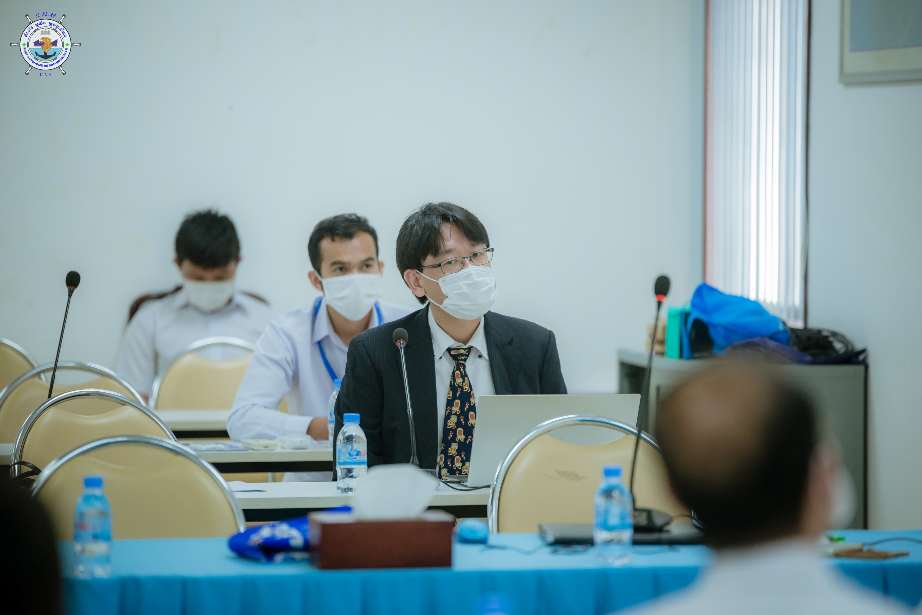 នារសៀលថ្ងៃអង្គារ ២រោច ខែមិគសិរ ឆ្នាំឆ្លូវ ត្រីស័ក ពស ២៥៦៥ ត្រូវនឹងថ្ងៃទី២១ ខែធ្នូ ឆ្នាំ២០២១ លោក ថៃ ឫទ្ធី អគ្គនាយករងទទួលបន្ទុកអាជីវកម្ម និងប្រតិបត្តិការ តំណាងដ៏ខ្ពង់ខ្ពស់ ឯកឧត្តម លូ គឹមឈន់ ប្រតិភូរាជរដ្ឋាភិបាលកម្ពុជា ទទួលបន្ទុកជាប្រធានអគ្គនាយក និងមន្ត្រីនៃនាយកដ្ឋានពាក់ព័ន្ធ បានជួបពិភាក្សាការងារ ជាមួយ លោក Koichi Miyake ប្រធានក្រុមសិក្សា JICA Survey Team ស្តីពីគោលការណ៍ណែនាំសុវត្ថិភាពរបស់ JICA (JICA's Safety Guidelines) នៅសាលប្រជុំកំពង់ផែស្វយ័តក្រុងព្រះសីហនុ។
