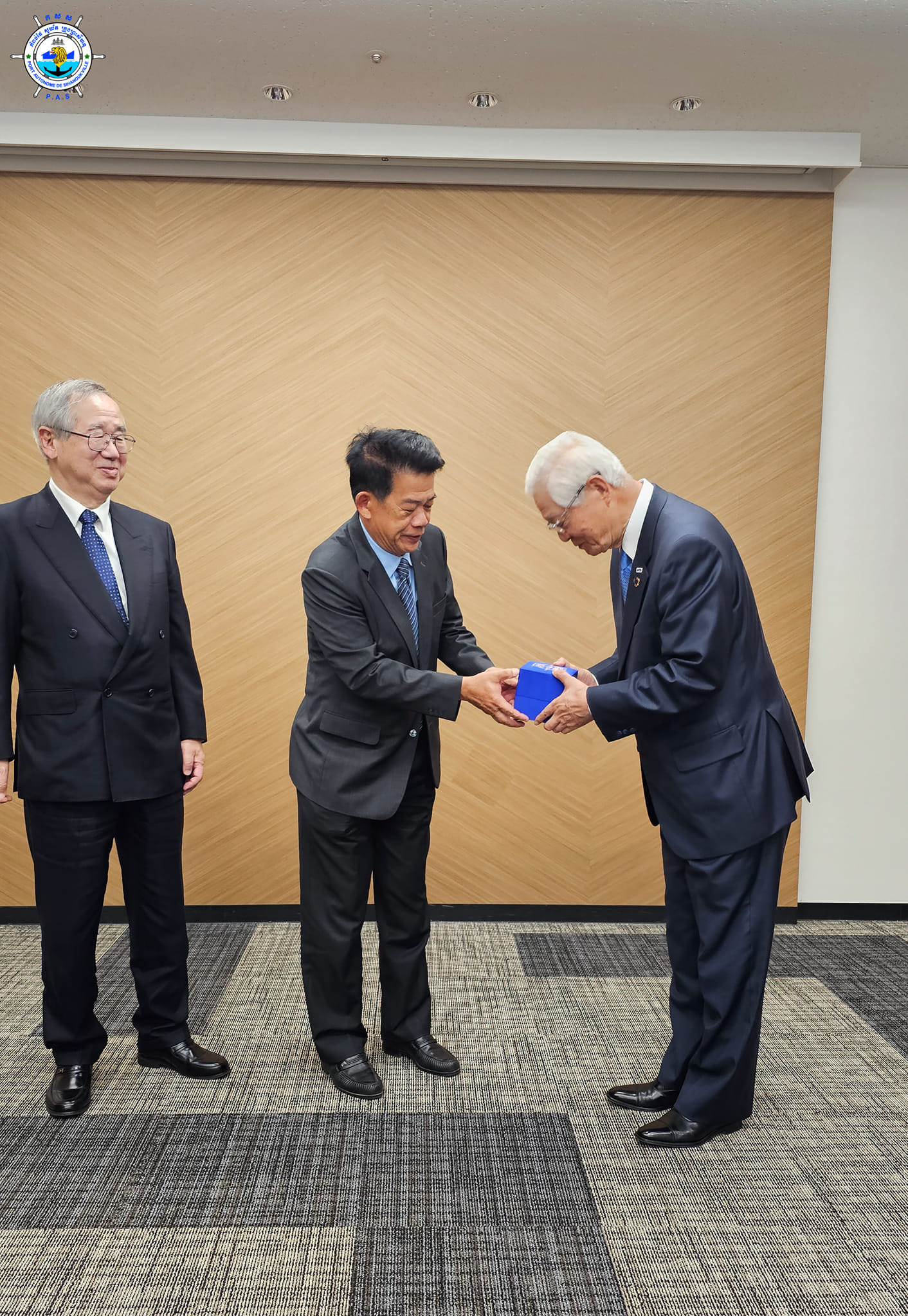 ថ្នាក់ដឹកនាំ កសស ចូលសម្តែងការគួរសម និងពិភាក្សាការងារជាមួយ លោក Masami KUBO, ប្រធានក្រុមប្រឹក្សាភិបាល និងជាប្រធានអគ្គនាយក ក្រុមហ៊ុន KAMIGUMI Co., Ltd និងលោក Kenji HOKAZONO ប្រធានក្រុមហ៊ុន Kobe-Osaka International Port Corporation (HANSHIN Port)