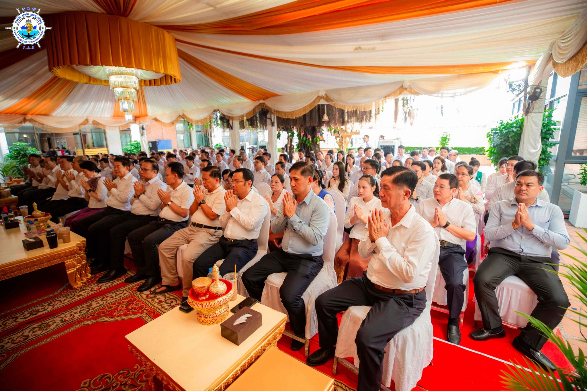 កំពង់ផែស្វយ័តក្រុងព្រះសីហនុ (កសស) ៖ នៅវេលាម៉ោង ២ រសៀល ថ្ងៃអង្គារ ១១ កើត ខែចេត្រ ឆ្នាំរោង ឆស័ក ពុទ្ធសករាជ ២៥៦៨ ត្រូវនឹងថ្ងៃទី៨ ខែមេសា ឆ្នាំ២០២៥ កំពង់ផែស្វយ័តក្រុងព្រះសីហនុ បានរៀបចំពិធីសូត្រមន្ទចម្រើន ព្រះបរិត្តប្រសិទ្ធិពរជ័យសិរីមង្គល និង សម្តែងព្រះធម៍ទេសនា ដោយ សម្តេចព្រះព្រហ្មរតមុនី ពិន សែម ជូនដល់ថ្នាក់ដឹកនាំ និងបុគ្គលិក និយោជិត កសស ក្នុងឱកាសបុណ្យចូលឆ្នាំថ្មី ប្រពៃណីជាតិ ឆ្នាំម្សាញ់ សប្តស័ក ព.ស ២៥៦៨ គ.ស ២០២៥ នៅអគាររដ្ឋបាល កសស ក្រោមអធិបតីភាព ឯកឧត្តម លូ គឹមឈន់ ប្រតិភូរាជរដ្ឋាភិបាលកម្ពុជា ទទួលបន្ទុកជាប្រធានអគ្គនាយក កំពង់ផែស្វយ័តក្រុងព្រះសីហនុ