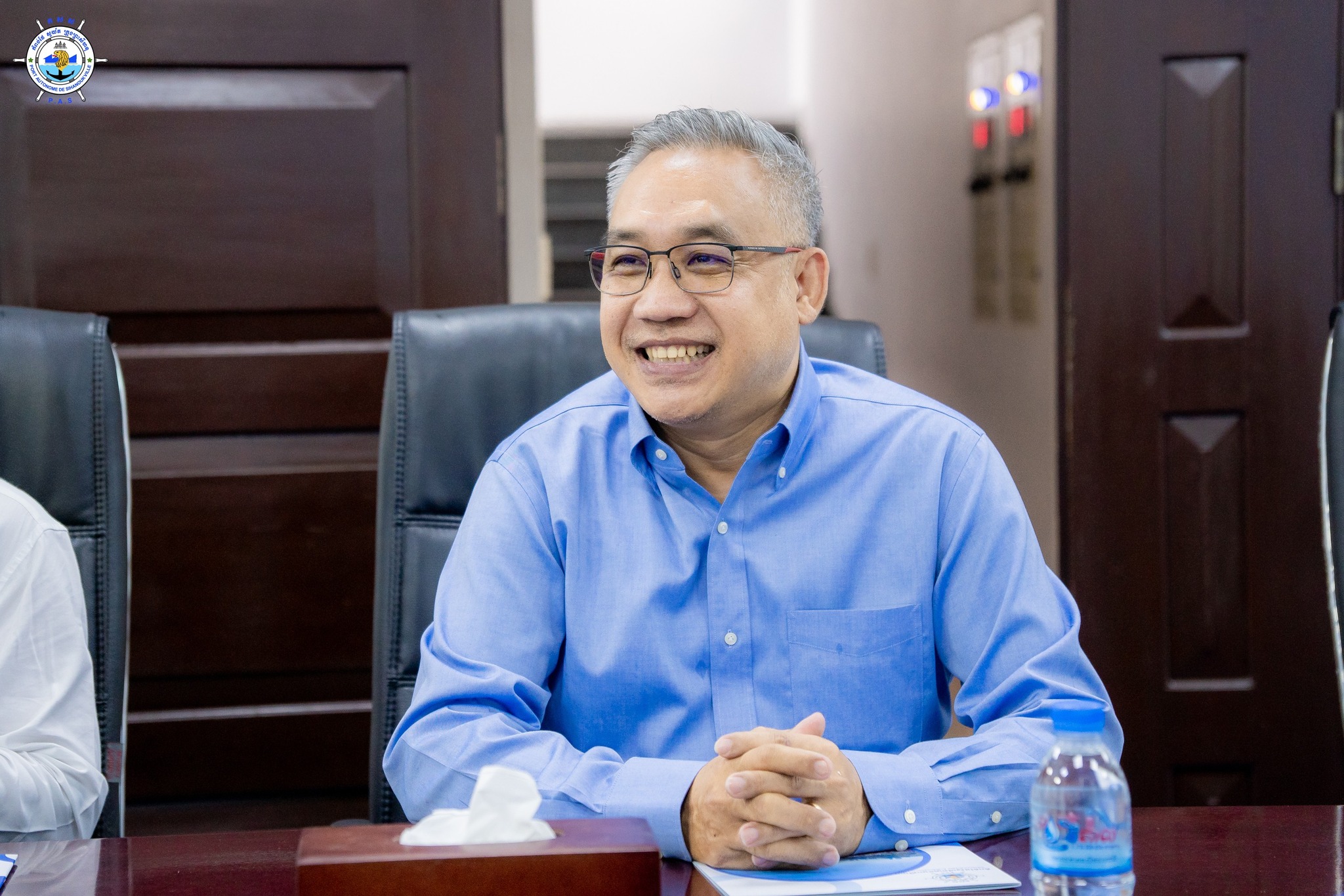 កំពង់ផែស្វយ័តក្រុងព្រះសីហនុ (កសស)៖ នាវេលាម៉ោង ២:៣០ នាទីរសៀល ថ្ងៃព្រហស្បតិ៍ ៣ កើត ខែជេស្ឋ ឆ្នាំម្សាញ់ សប្តស័ក ពុទ្ធសករាជ ២៥៦៩ ត្រូវនឹងថ្ងៃទី២៩ ខែឧសភា ឆ្នាំ២០២៥ នៅសាលប្រជុំតូច កសស លោកស្រី ជ័យ សុគន្ធា នាយិកា នៃនាយកដ្ឋានទីផ្សារ កសស និងលោក ថៃ ម៉េងលី នាយក នៃនាយកដ្ឋានប្រតិបត្តិការទីលានកុងតឺន័រ តំណាង ឯកឧត្តម លូ គឹមឈន់ ប្រតិភូរាជរដ្ឋាភិបាលកម្ពុជា ទទួលបន្ទុកជាប្រធានអគ្គនាយក កំពង់ផែស្វយ័តក្រុងព្រះសីហនុ និងក្រុមការងារ កសស បានទទួលស្វាគមន៍ ដំណើរទស្សនកិច្ច ក្រុមហ៊ុន Trancy Logistics (Cambodia) Co.,Ltd. ដឹកនាំដោយ លោក Honda Marmoru អភិបាល ក្រុមហ៊ុន និងលោក Nobuhiro Nakamura អភិបាល ក្រុមហ៊ុន ដើម្បីស្វែងយល់ពីវឌ្ឍនភាព សក្តានុពល ប្រតិបត្តិការ និងការអភិវឌ្ឍរបស់ កសស