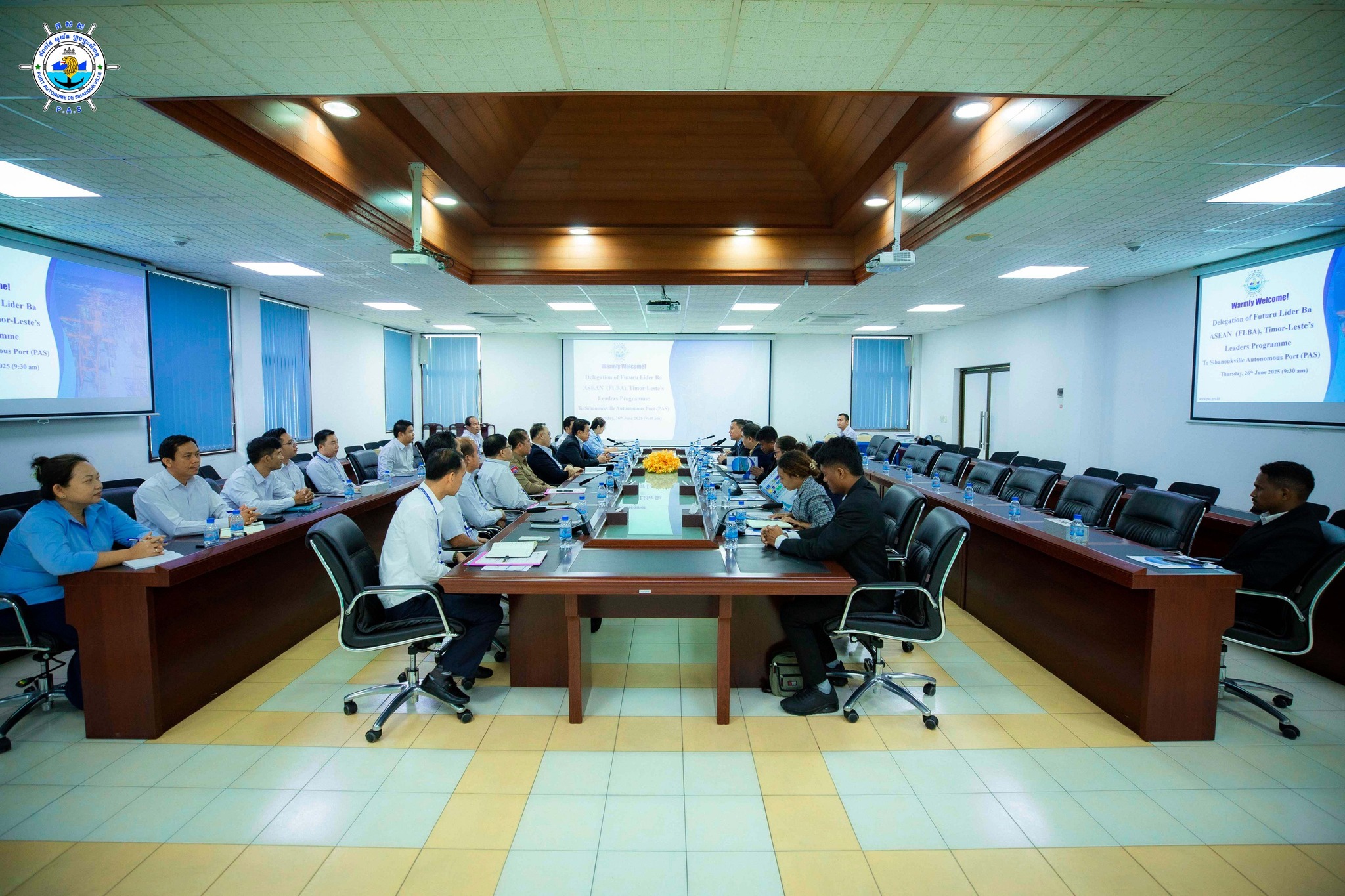 Sihanoukville Autonomous Port (PAS): At 9:30 AM on Thursday, 26th June 2025, at the venue of PAS Conference Room, His Excellency Lou Kim Chhun, Delegate of the Royal Government of Cambodia in charge as Chairman and CEO of Sihanoukville Autonomous Port, and PAS Management, welcomed a visit of 11 delegates of the Futuru Lider ba ASEAN (FLBA) Working Group of the Democratic Republic of Timor-Leste, in purpose to learn about PAS’s operations, potentials, progress, and developments.