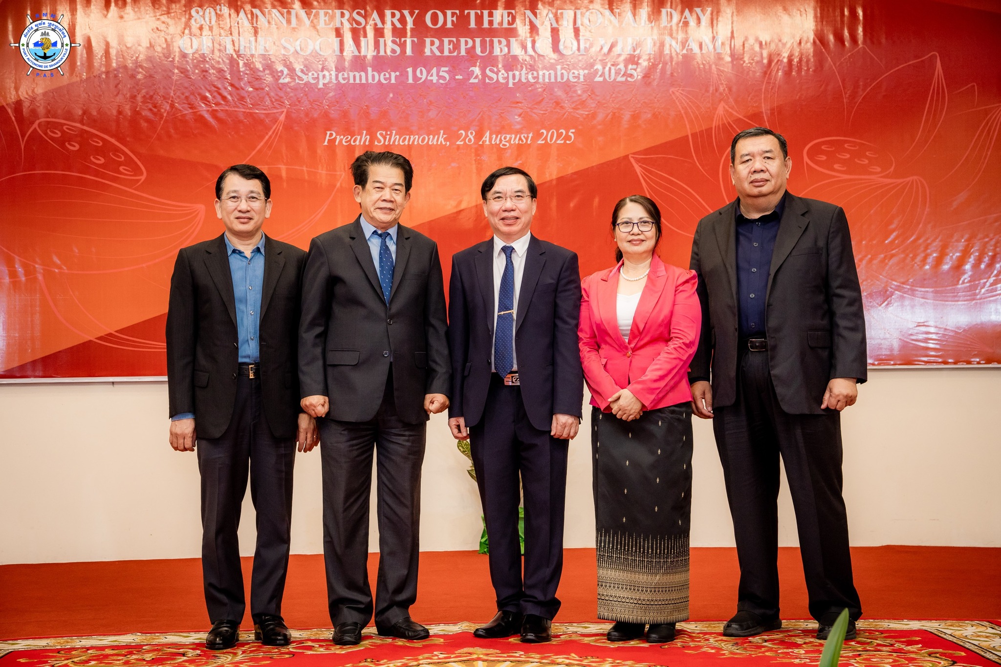 សណ្ឋាគារឯករាជ្យ ក្រុងព្រះសីហនុ ៖ នាវេលាល្ងាច ថ្ងៃព្រហស្បតិ៍ ៥ កើត ខែភទ្របទ ឆ្នាំម្សាញ់ សប្តស័ក ព.ស ២៥៦៩ ត្រូវនឹងថ្ងៃទី២៨ ខែសីហា ឆ្នាំ២០២៥ ឯកឧត្តម លូ គឹមឈន់ ប្រតិភូរាជរដ្ឋាភិបាលកម្ពុជា ទទួលបន្ទុកជាប្រធានអគ្គនាយក កំពង់ផែស្វយ័តក្រុងព្រះសីហនុ និងថ្នាក់ដឹកនាំ កសស បានអញ្ជើញចូលរួម ពិធីអបអរសាទររំលឹកខួបលើកទី៨០ នៃទិវាបុណ្យឯករាជ្យជាតិ នៃសាធារណរដ្ឋសង្គមនិយមវៀតណាម ក្រោមអធិបតីភាព ឯកឧត្តម វង្ស ផាណាត ប្រធានក្រុមប្រឹក្សាខេត្តព្រះសីហនុ ឯកឧត្តម ម៉ាង ស៊ីណេត អភិបាល នៃគណៈអភិបាលខេត្តព្រះសីហនុ និងឯកឧត្តម Lai Xuan Chien ឯកអគ្គកុងស៊ុល នៃសាធារណរដ្ឋសង្គមនិយមវៀតណាម ប្រចាំខេត្តព្រះសីហនុ។