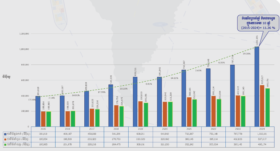 បរិមាណទំនិញឆ្លងកាត់ កសស-តោន (២០១៥-២០២៤)
