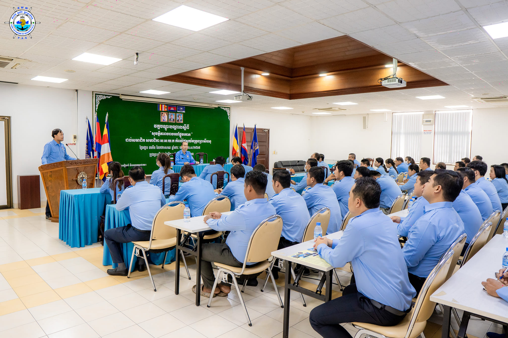 Sihanoukville Autonomous Port (PAS) At 8 AM on Tuesday, 20th June 2023, at the venue of PAS Conference Room, Mr. Thay Rithy, Deputy Director-General in charge of Business and Head of U.Y.F.C Section of Sihanoukville Autonomous Port, a representative on behalf of His Excellency Lou Kim Chhun, Delegate of the Royal Government of Cambodia in charge as Chairman and CEO of Sihanoukville Autonomous Port and Mr. Prum Vantha, Director of Road Safety Department, a representative on behalf of His Excellency Chhoun Vorn, General-Director of Road Transportation General Department, held a training course regarding Road Safety for members of Union of Youth Federations of Cambodia (U.Y.F.C) Section of Sihanoukville Autonomous Port