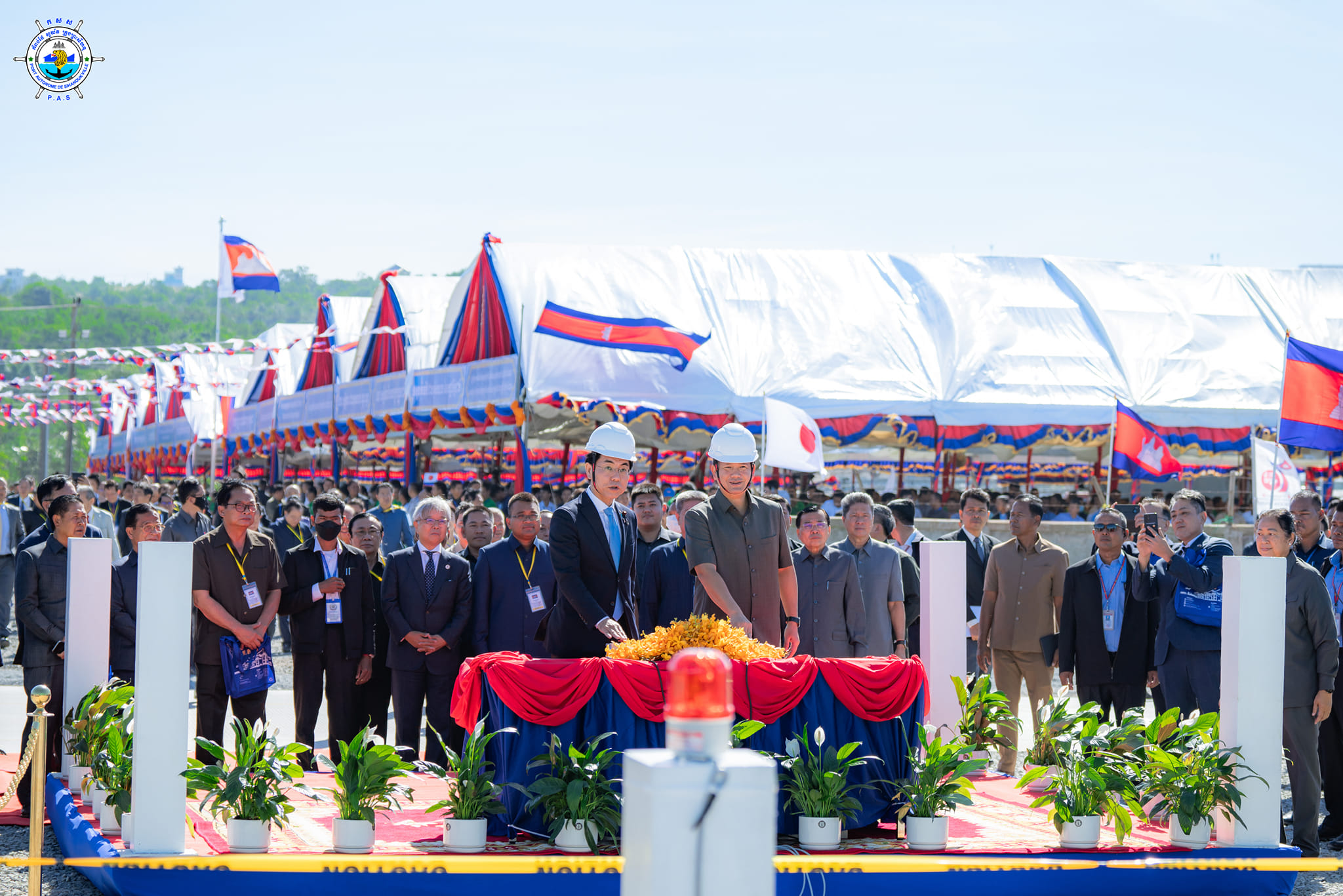 Sihanoukville Autonomous Port (PAS) At 8 AM on Friday, 22th December 2023, At the venue of Special Economic Zone of PAS, Samdech Moha Borvor Thipadei HUN MANET Prime Minister of the Kingdom of Cambodia, highly presided the Ground Breaking Ceremony for Sihanoukville Port New Container Terminal-Phase 1 and the inauguration for the official use of 2 units of Mobile Harbor Cranes,under ODA Loans and Grants Aid from the Government of Japan, with the presence of His Excellency Deputy Prime Minister, Senior Ministers, His Excellency Peng Ponea, Minister of Public Works and Transport, Excellencies Ministers, Excellencies Secretaries of State and Under Secretaries of State, His Excellency Mr. Kuoch Chamroeun, Governor of Preah Sihanouk Province, His Excellency Lou Kim Chhun, Delegate of the Royal Government of Cambodia in charge as Chairman and CEO of Sihanoukville Autonomous Port, His Excellency Mr. ISHIBASHI Rintaro, Parliamentary Vice-Minister of Land, Infrastructure, Transport and Tourism, Japan, His Excellency UENO Atsushi, Ambassador Extraordinary and Plenipotentiary of Japan to the Kingdom of Cambodia, the Relevant Ministerial Management, Relevant Authorities, Preah Sihanouk Provincial Authority, PAS Board of Directors, JICA Chief Representatives, Excellencies, Oknha, Managements, Government Officials, Employees, Workers