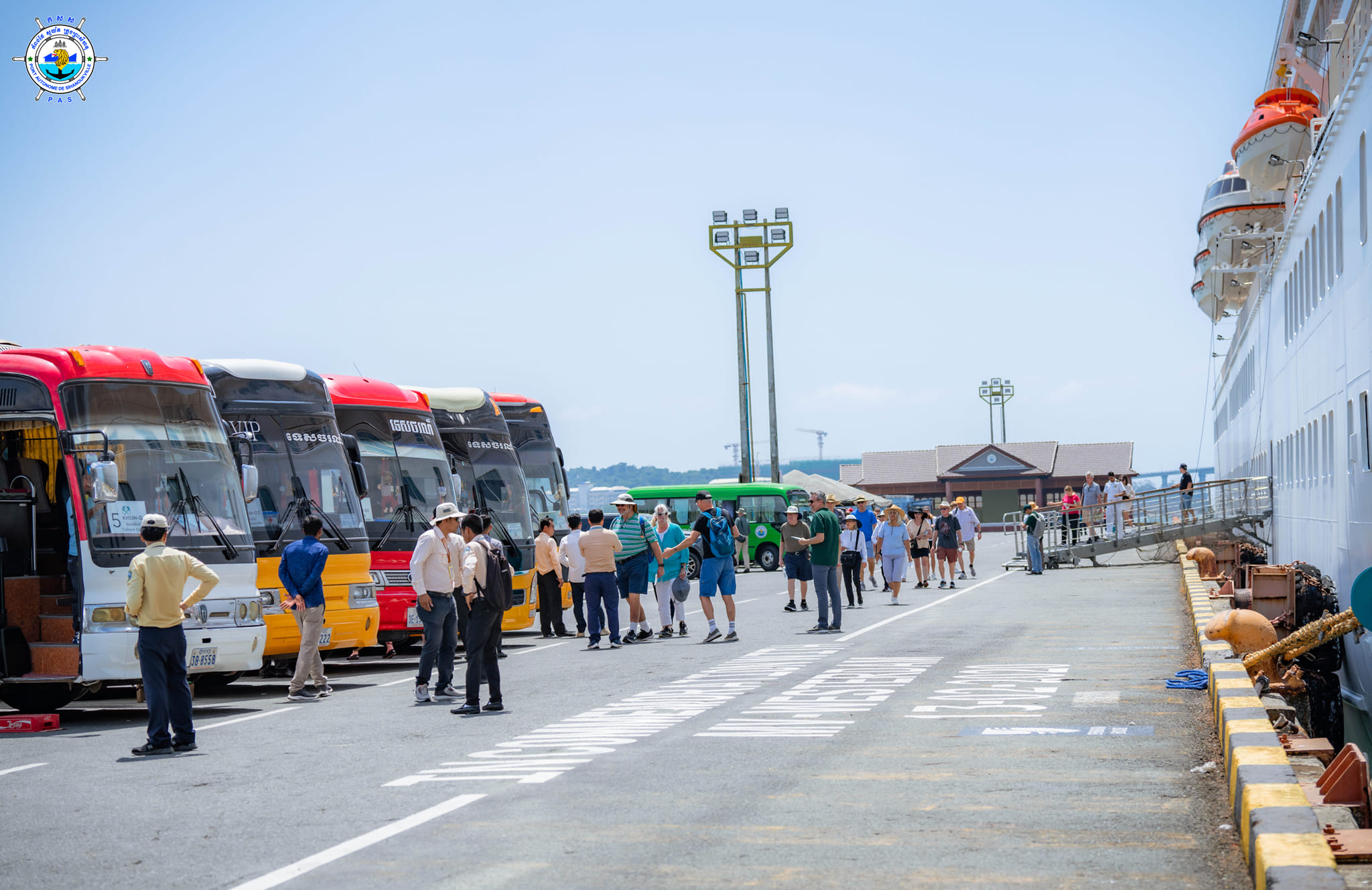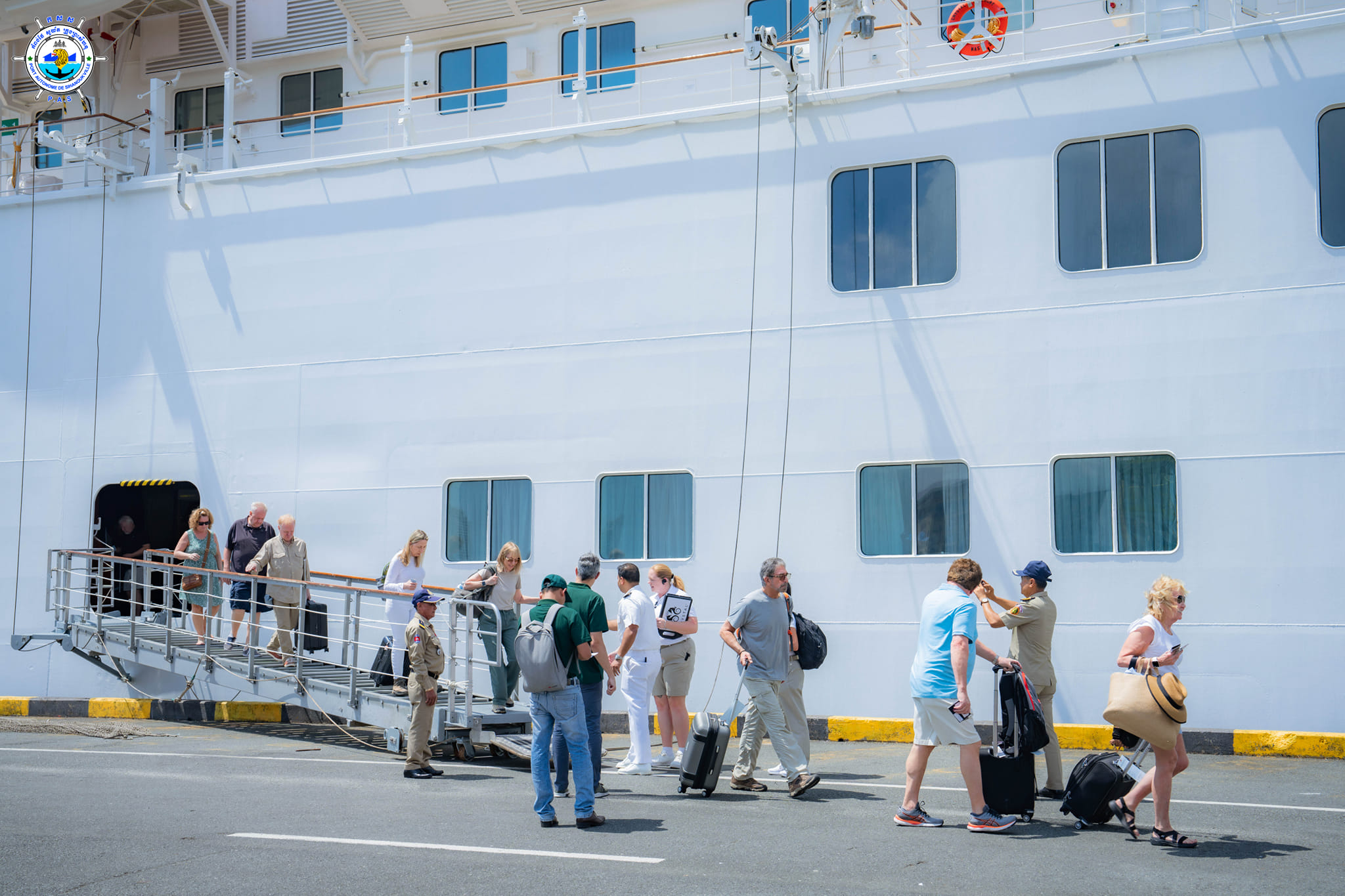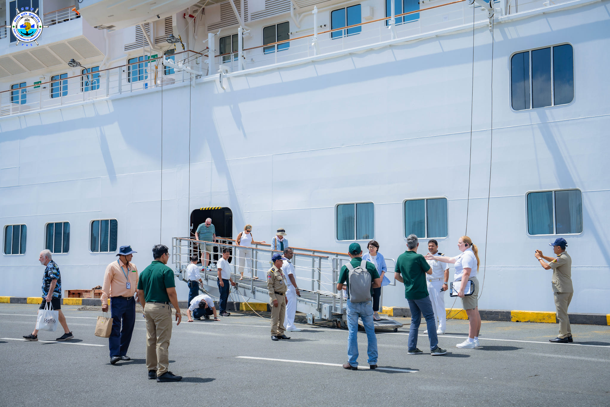 Sihanoukville Autonomous Port (PAS) On Sunday, 18th February 2024, CRYSTAL SYMPHONY cruise ship with nationality of Bahamas, length of 238.01 meters and width of 30.20 meters, docked safely at PAS to visit Cambodia for one day after leaving Thailand. This cruise ship carries 443 crew members (96 females) with 49 nationalities and 313 passengers (154 females) with 25 nationalities. Most of passengers`nationalities are 193 Americans, and 24 Britons and this cruise ship is scheduled to depart for Vietnam at 8 PM on the same date