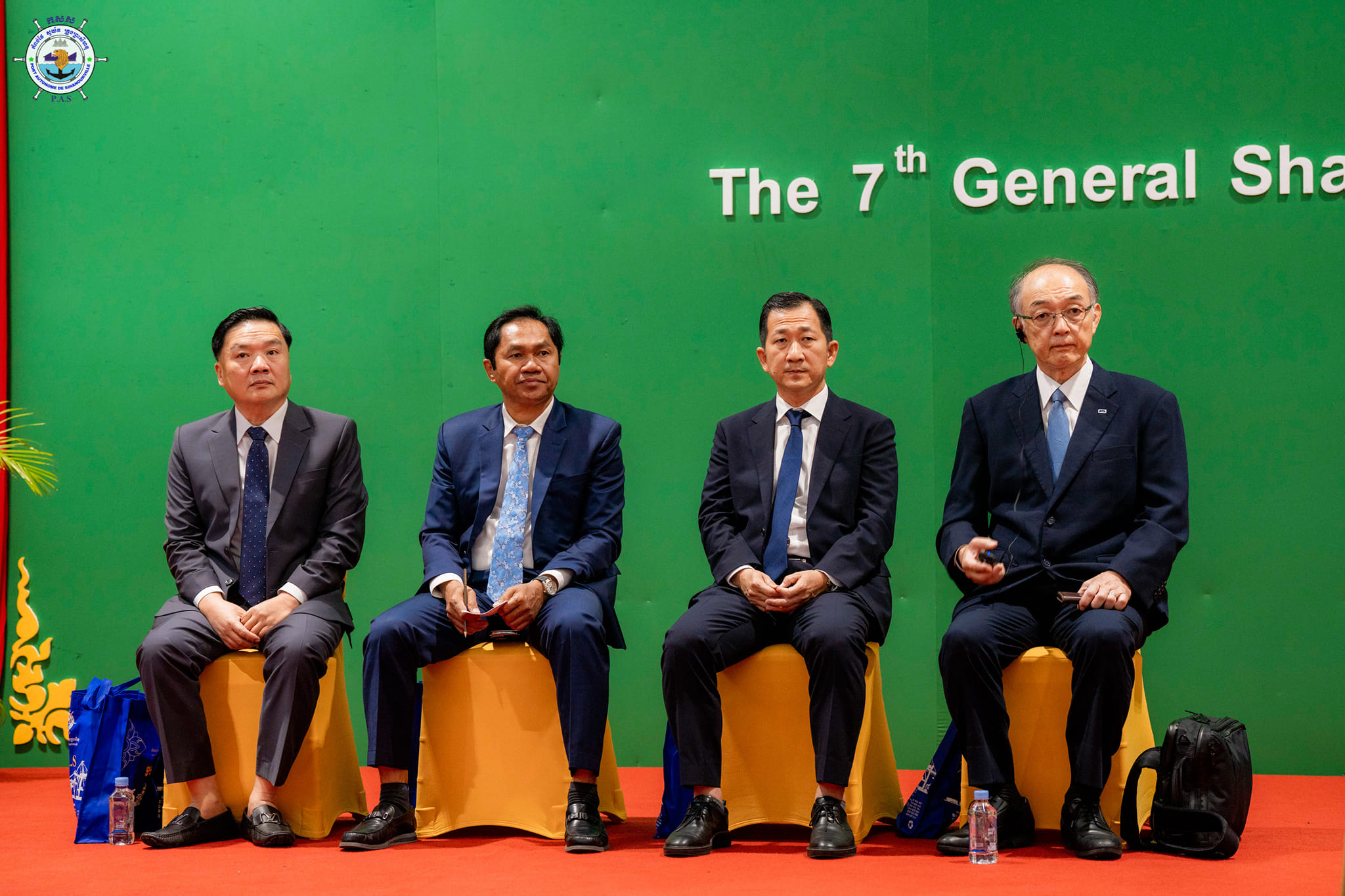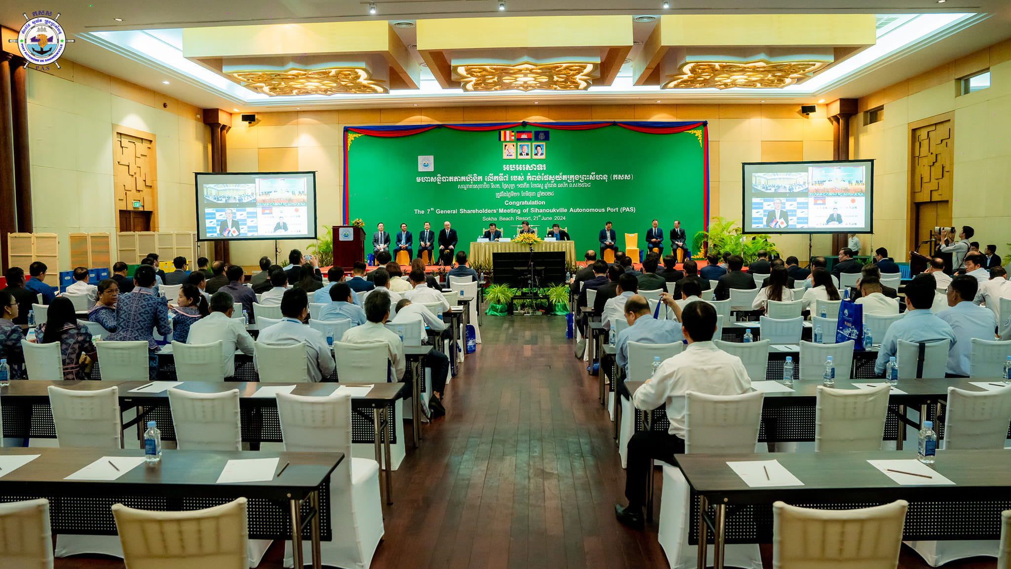 At 7 AM on Friday 21st June 2024 at Sokha Beach Resort, Preah Sihanouk Province, Sihanoukville Autonomous Port (PAS) held the 7th General Shareholder Meeting of Sihanoukville Autonomous Port under the high presidency of His Excellency Phan Phalla, Secretary of State, Representative of His Excellency Aun Pornmoniroth, Deputy Prime Minister, Minister of Economy and Finance, His Excellency Choun Ven, Secretary of State, Representative of His Excellency Peng Ponea, Minister of Public Works and Transport and His Excellency Lou Kim Chhun, Delegate of the Royal Government of Cambodia in charge as Chairman & CEO of PAS and Chairman of the 7th General Shareholder Meeting and participated by His Excellencies and Misters of all members of PAS's Board of Directors, and State Controller, Representative of the Securities and Exchange Regulator of Cambodia (SERC), Representative of Cambodia Securities Exchange (CSX), the potential shareholders (KAMIGUMI Co., Ltd. and Kobe-Osaka International Port Corporation), the national and international guests, and PAS's shareholders. This 7th General Shareholder Meeting of PAS reported the operation performance in 2023 and business plan for 2024 and has voted for selecting Mr. Hun Monivann, as Independent Director, and Mr. KUME Hidetoshi, as Non-Executive Director representing of private shareholders, as a member of the 9th Mandate of Board Directors, and adopting the dividend distribution to the private shareholders for the 7th time with 504 Riels per share (10% of IPO's Price) for the fiscal year 2023 and remuneration for PAS's Board of Directors for fiscal year 2024
