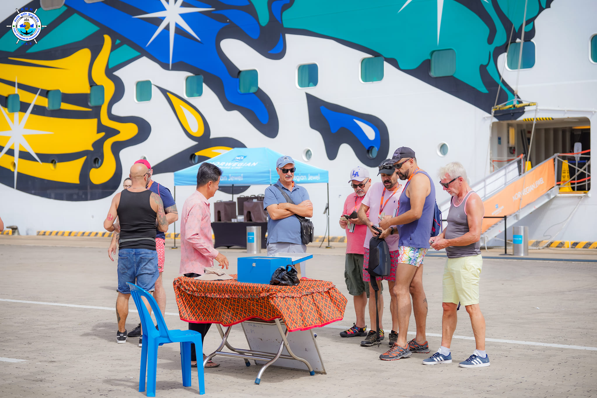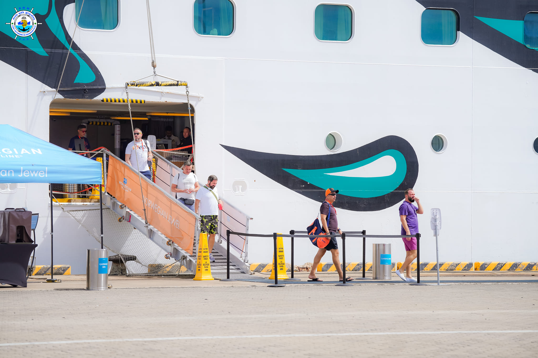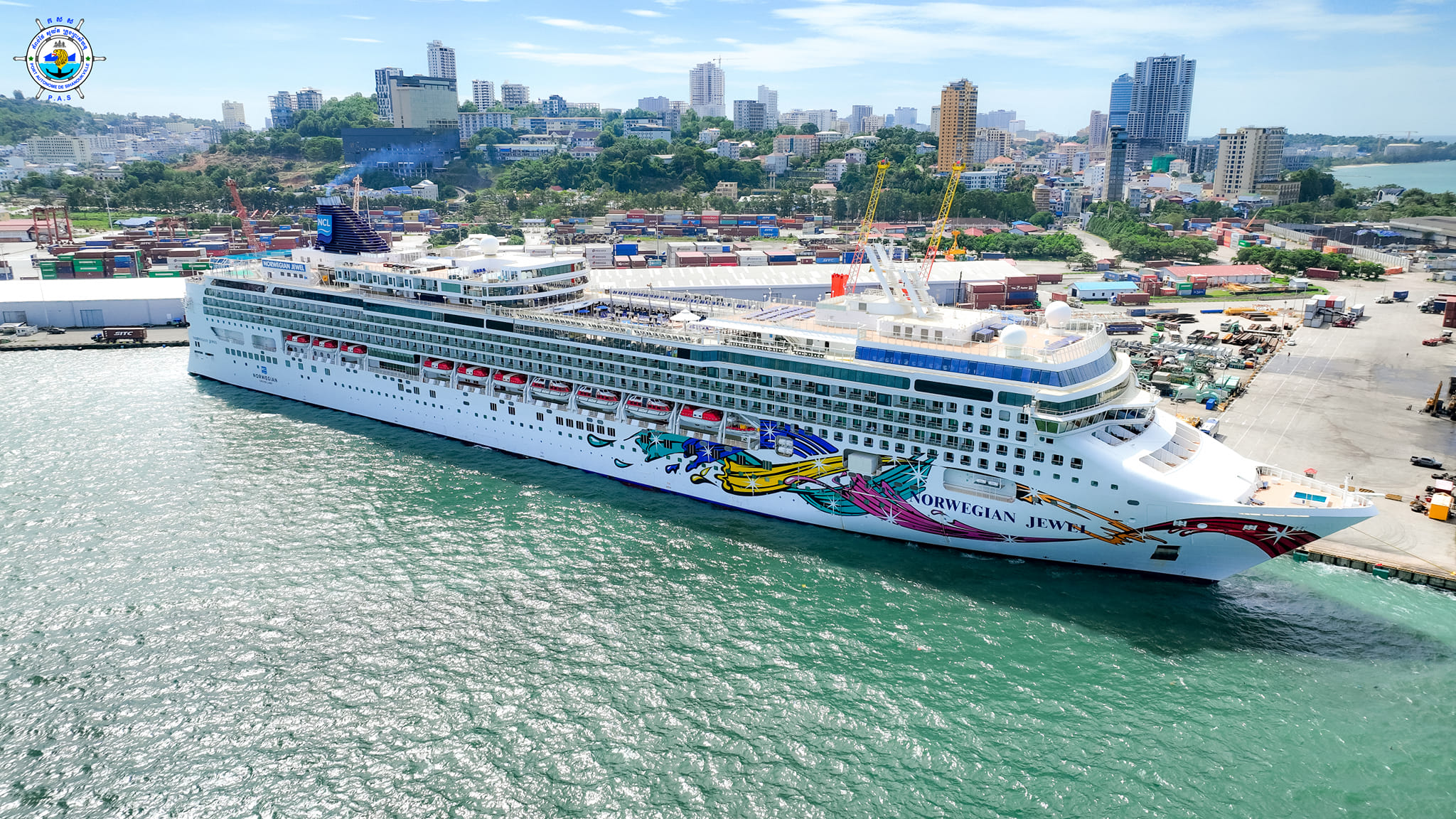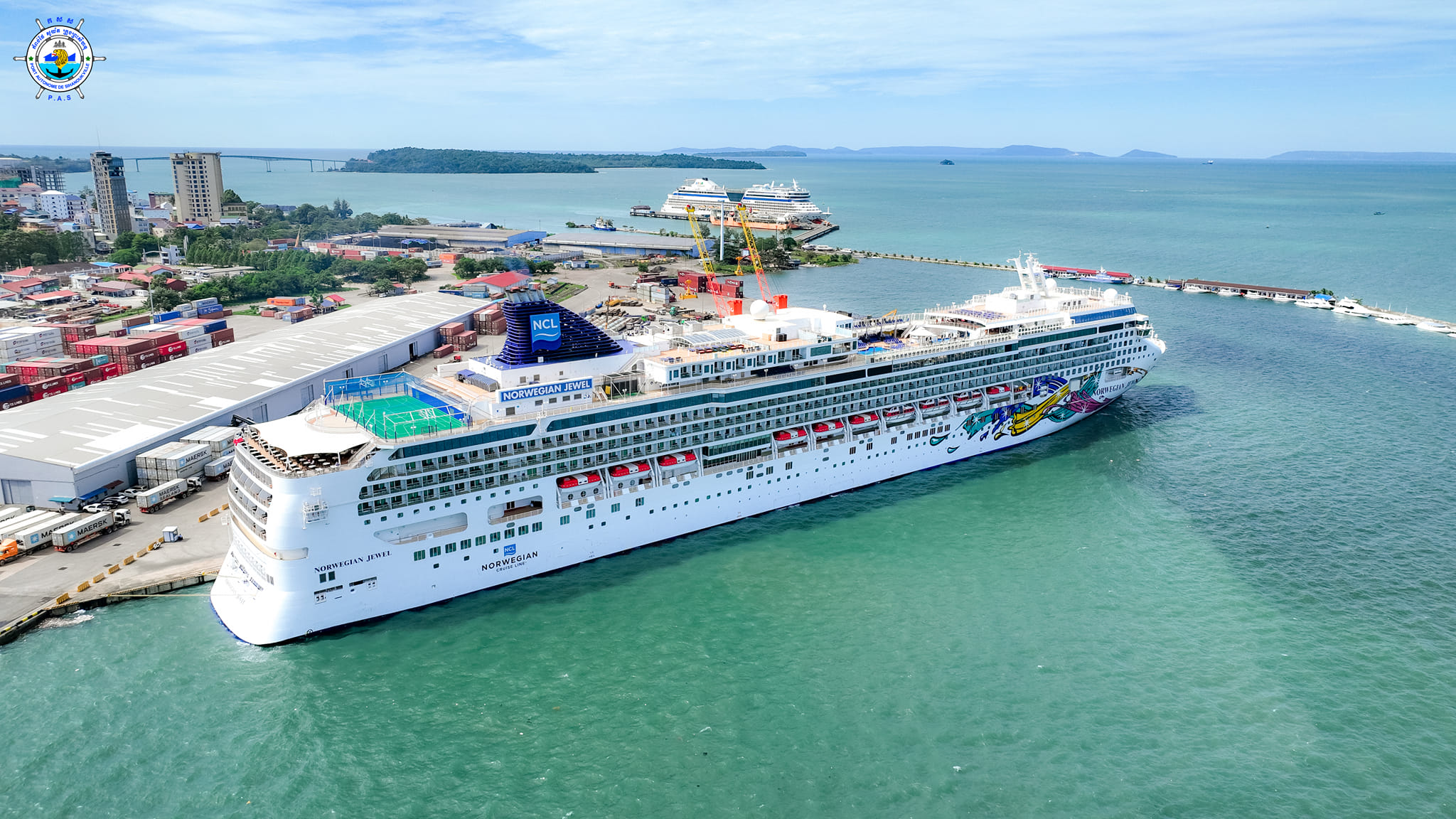Sihanoukville Autonomous Port (PAS) At 6 AM on Saturday, 18th November 2023, NORWEGIAN JEWEL cruise ship with nationality of BAHAMAS, length of 394.13 meters, width of 32.20 meters, docked safely at PAS to visit Cambodia for one day after leaving Vietnam. This cruise ship carries 1040 crew members (230 females) with 54 nationalities and 1803 passengers (30 females) with 57 nationalities. Most of passengers`nationalities are 1137 Americans, 106 Canadian and this cruise ship is scheduled to depart for Thailand at 17:00 PM on 18th November 2023
