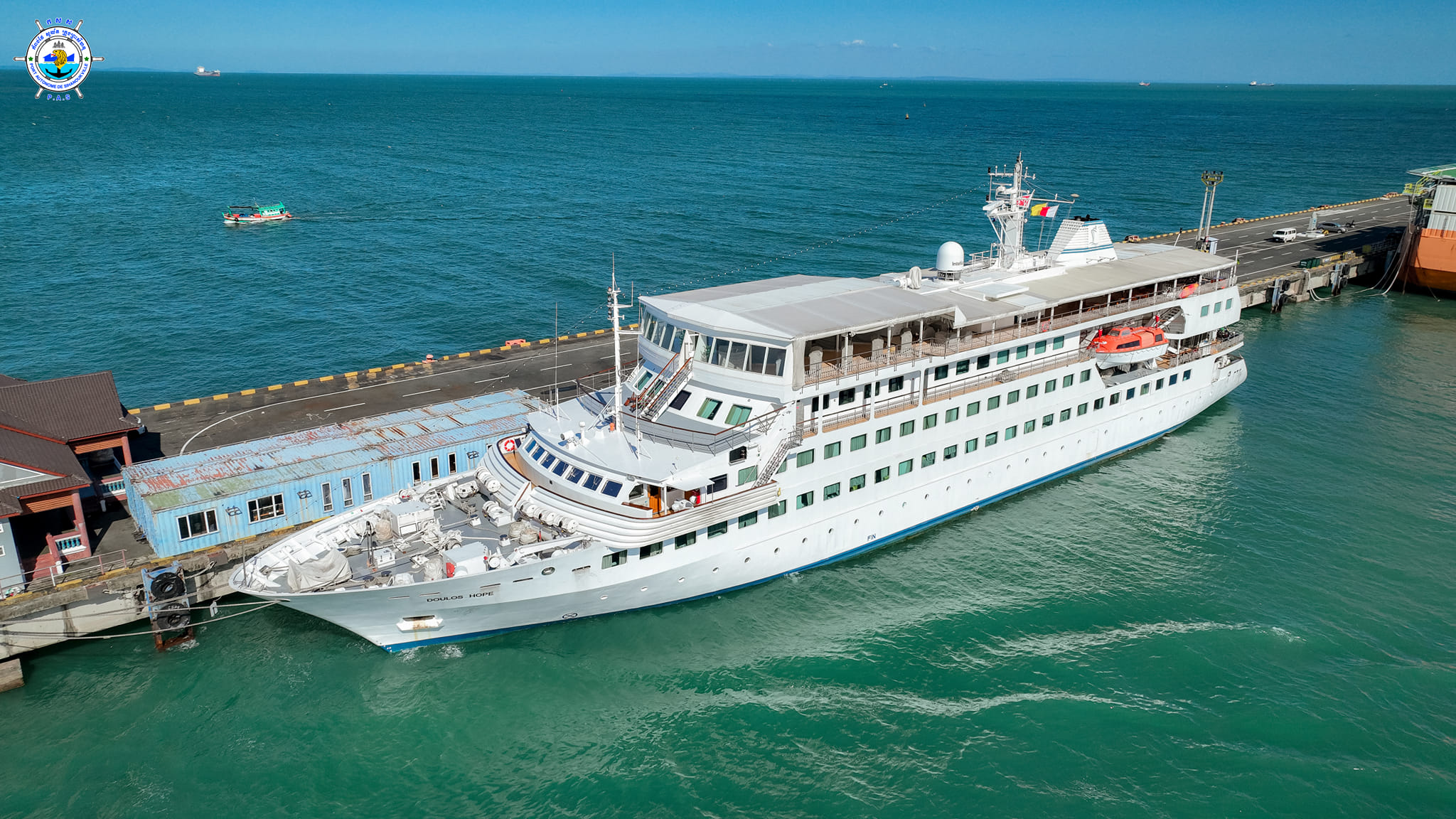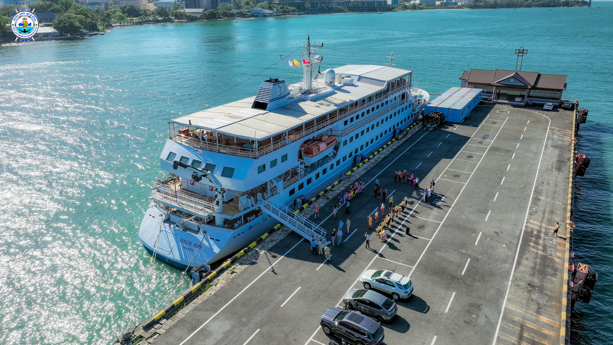 Sihanoukville Autonomous Port (PAS) At 8 AM on Monday, 18th December 2023, His Excellency Mang Sineth, Deputy Governor of Preah Sihanouk Province, welcomed the arrival of Doulos Hope cruise ship (owned by GBA SHIPS), docked safely at PAS to visit Cambodia for 25 days after leaving Thailand, in purpose for sharing new knowledge, providing charitable assistance to the needy, promoting the values of peace and prosperity. A culture of volunteering to help people in the community. This cruise ship carries 91 crew members (39 females) with 30 nationalities, this cruise ship is scheduled to depart for Vietnam on 12th January 2024