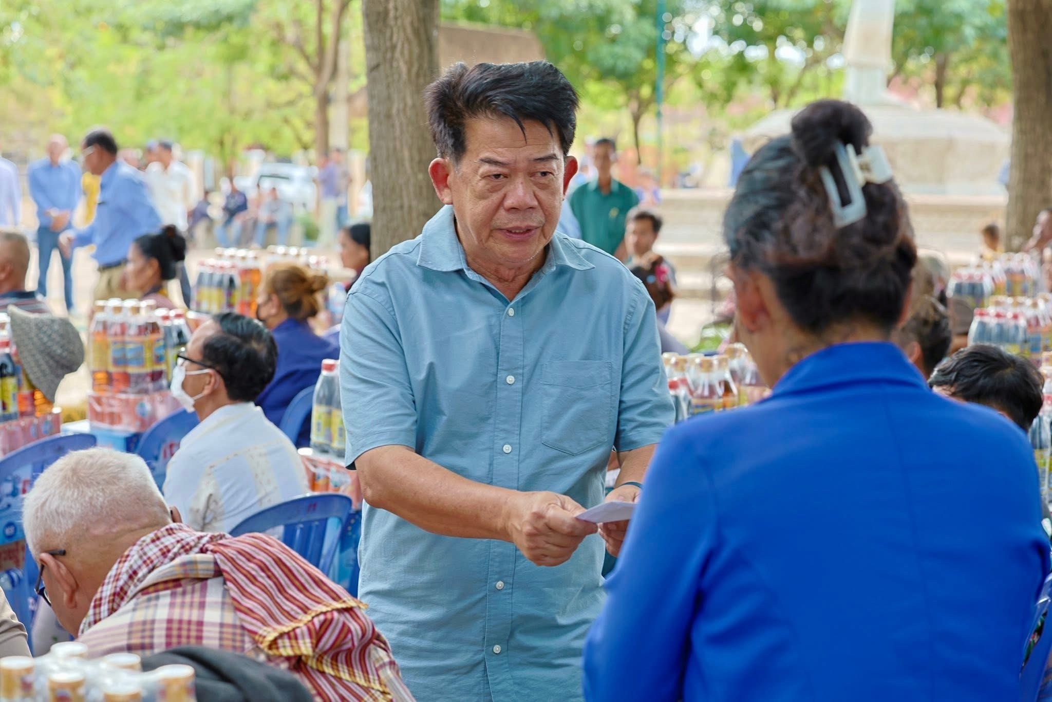 ខេត្តកំពង់ចាម ៖ នារសៀល ថ្ងៃចន្ទ ១០រោច ខែមិគសិរ ឆ្នាំម្សាញ់ សប្តស័ក ពុទ្ធសករាជ ២៥៦៩ ត្រូវនឹងថ្ងៃទី១៥ ខែធ្នូ ឆ្នាំ២០២៥ ឯកឧត្តម លូ គឹមឈន់ ប្រតិភូរាជរដ្ឋាភិបាលកម្ពុជា ទទួលបន្ទុកជាប្រធានអគ្គនាយក កំពង់ផែស្វយ័តក្រុងព្រះសីហនុ និងជាប្រធានក្រុមការងារចុះជួយស្រុកស្រីសន្ធរ រួមជាមួយ ឯកឧត្តមអនុប្រធានក្រុមការងារចុះជួយស្រុកស្រីសន្ធរ ព្រមទាំងប្រតិភូកំពង់ផែស្វយ័តក្រុងព្រះសីហនុ អមដំណេីរ ឯកឧត្តម ប៉េង ពោធិ៍នា រដ្ឋមន្រ្តីក្រសួងសាធារណការ និងដឹកជញ្ជូន បានធ្វើការសំណេះសំណាល និងចែកអំណោយជូន ជនភៀសសឹក ពលករ និងគ្រួសារកងទ័ព ចំនួន ៣១៩ គ្រួសារ ក្នុងស្រុកស្រីសន្ធរ ខេត្តកំពង់ចាម